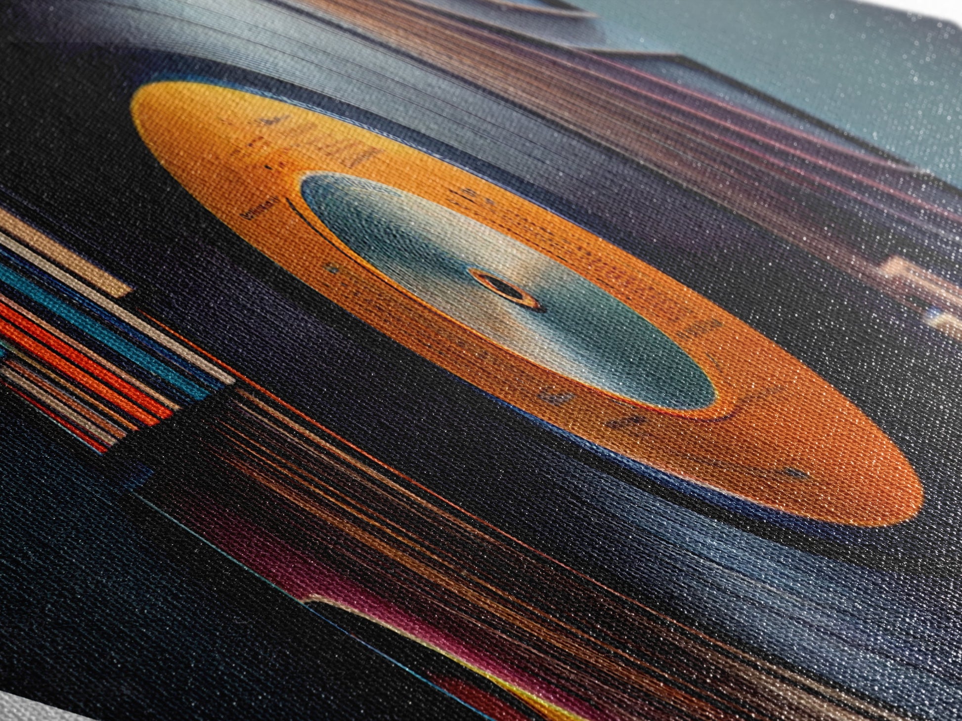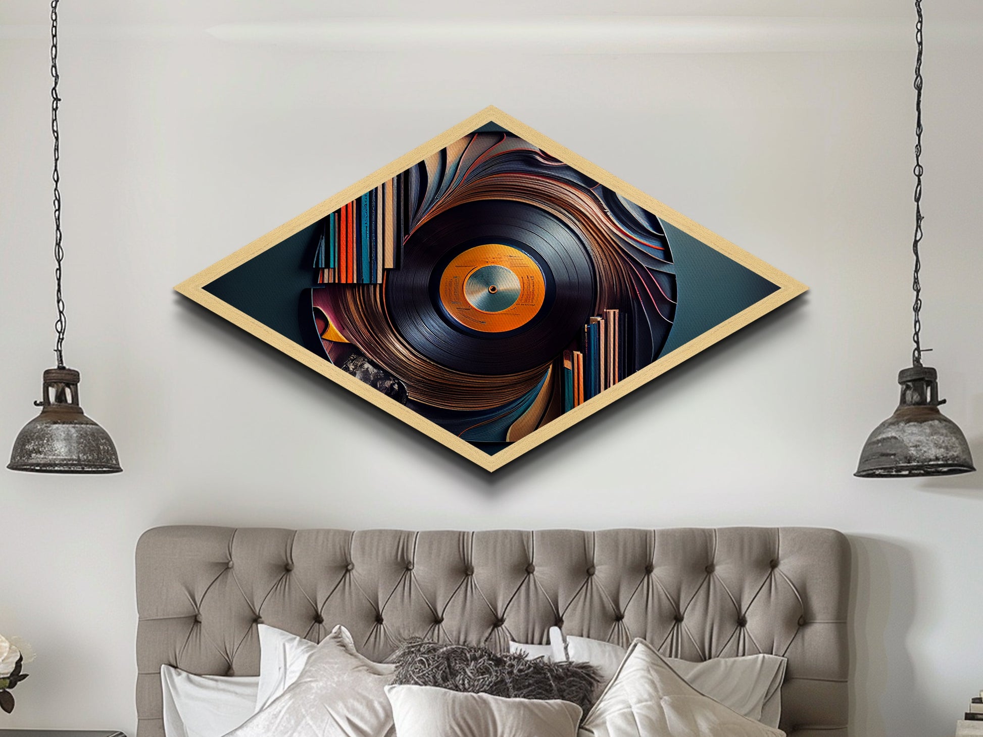 Vinyl Whirl Swirl – Diamond Shaped Retro Record Canvas Art Print, Music Room Decor with Bookshelf Turntable Vibe