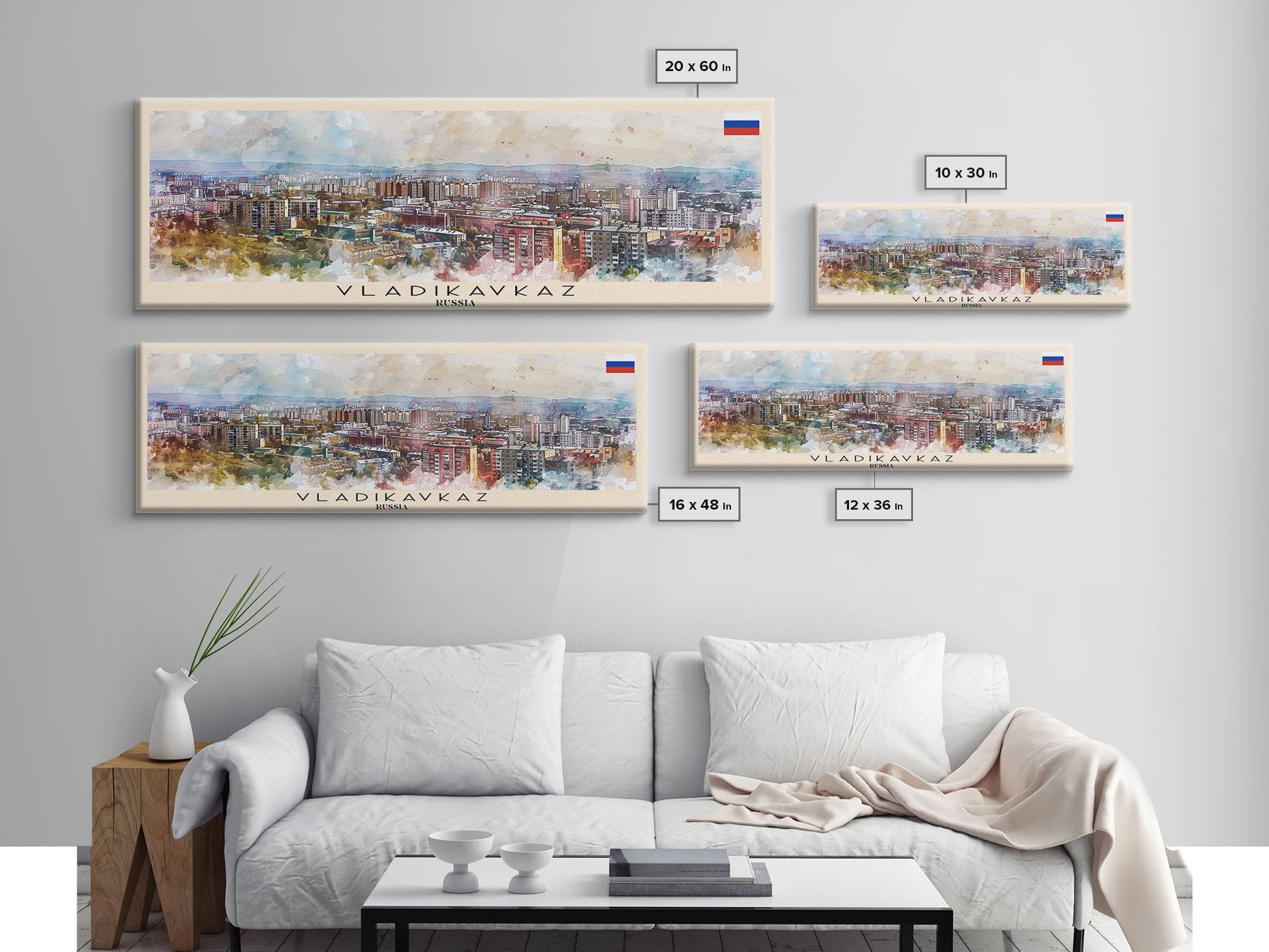 Vladikavkaz Russia Panoramic Travel Poster, Framed Canvas Print or Metal Wall Art, Travel Art, Home Decor, Panoramic Painting, Midcentury Art