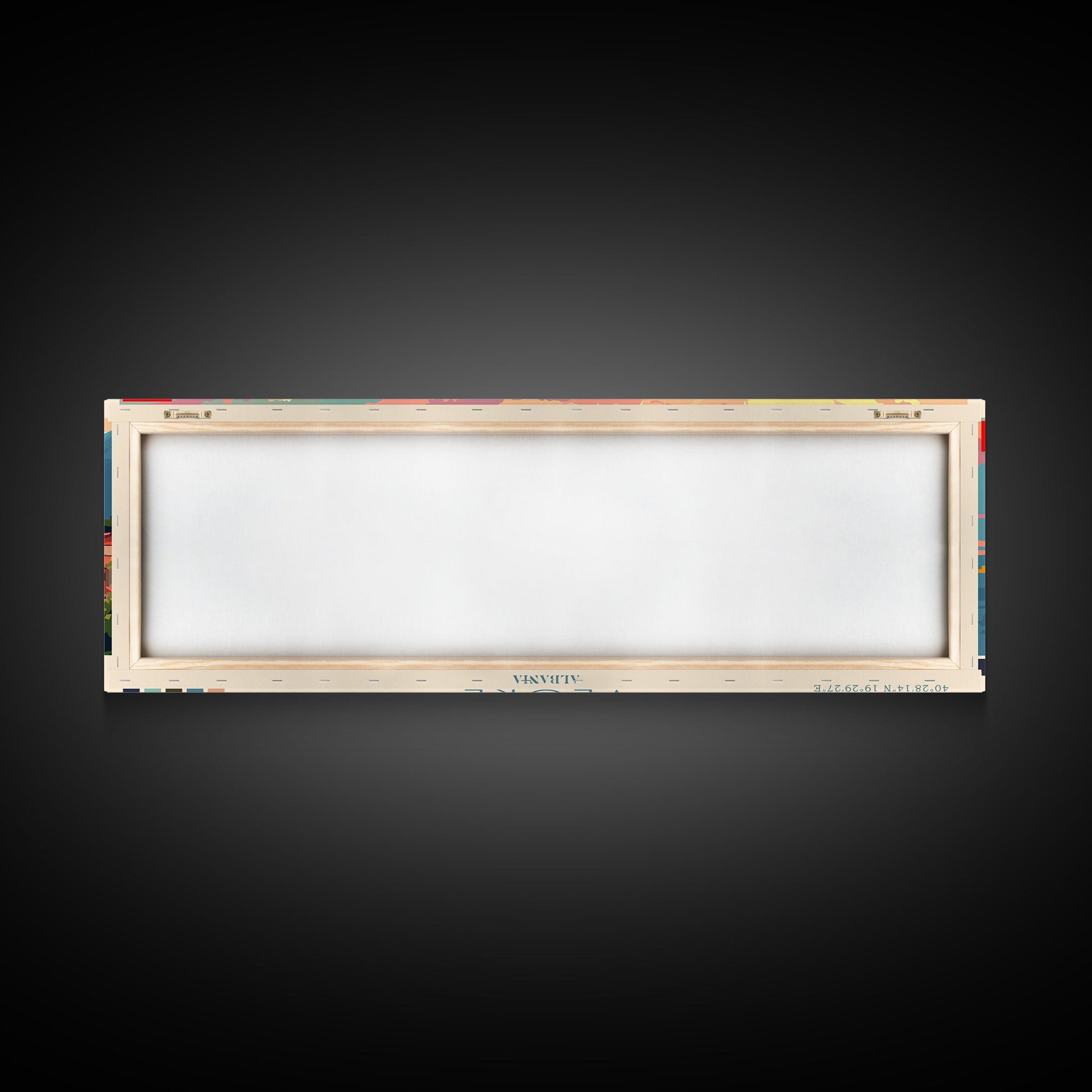 Most of our canvases are made in the USA, with the exception of canvases ordered with the light oak unstained frames, and any large canvases (24x48, 30x60, 16x48 and 20x60) ordered WITH a frame. These are temporarily made in and shipped from Europe, while we try to find a more consistent supplier in the USA.
