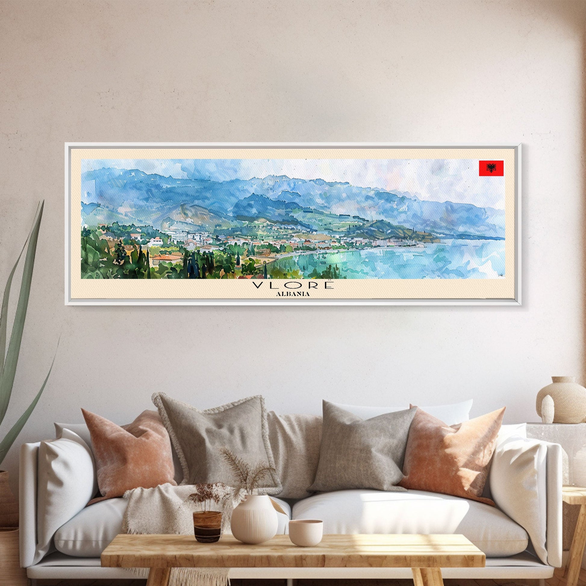 Vlore Albania Travel Art, City Art, Framed Canvas Print or Metal Wall Art, Europe Travel Poster, Panoramic Wall Art, Extra Wide Wall Art