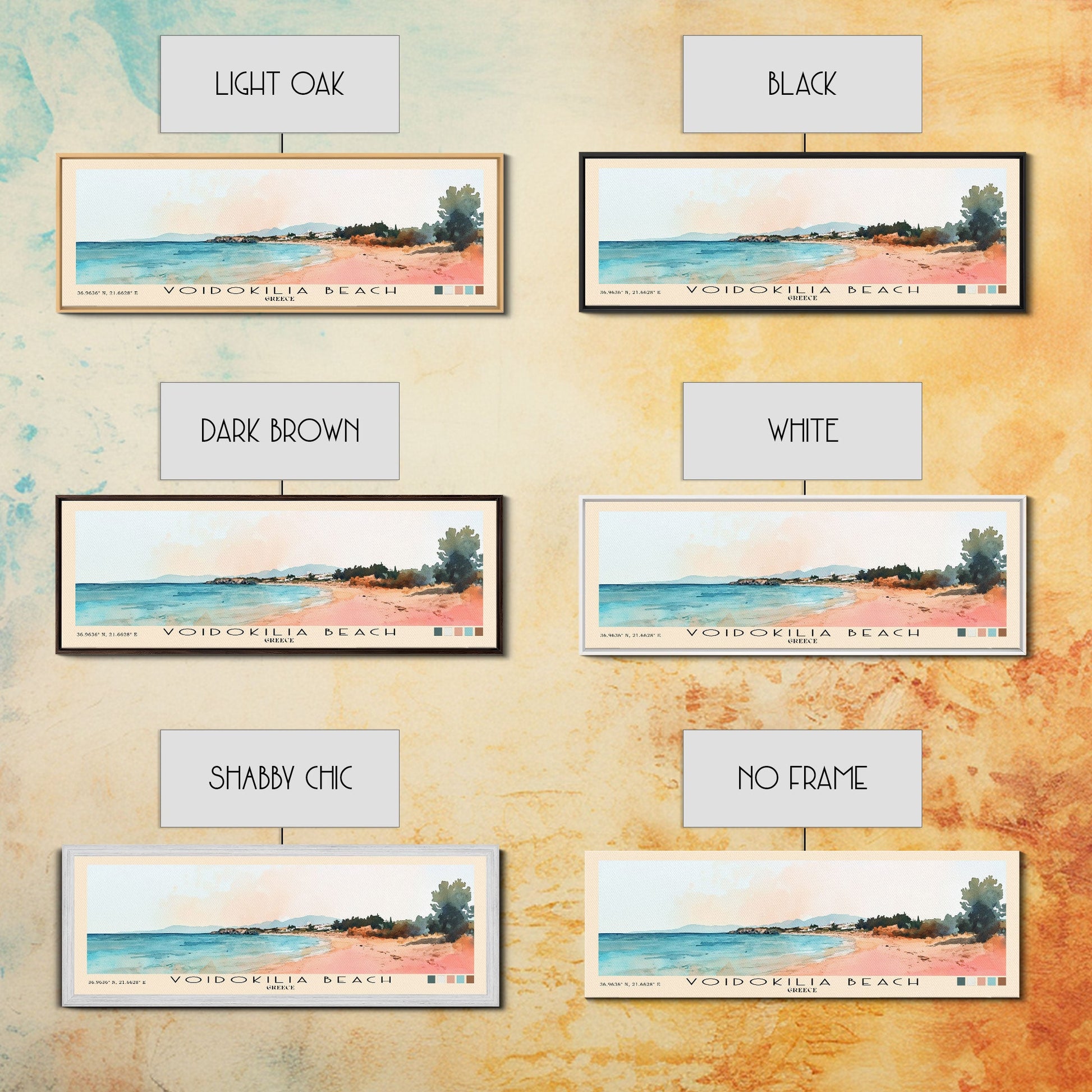Voidokilia Beach, Greece Watercolor Beach Print, Vacation Gift, Greece Wall Art, Framed Canvas Print, Framed Beach Painting