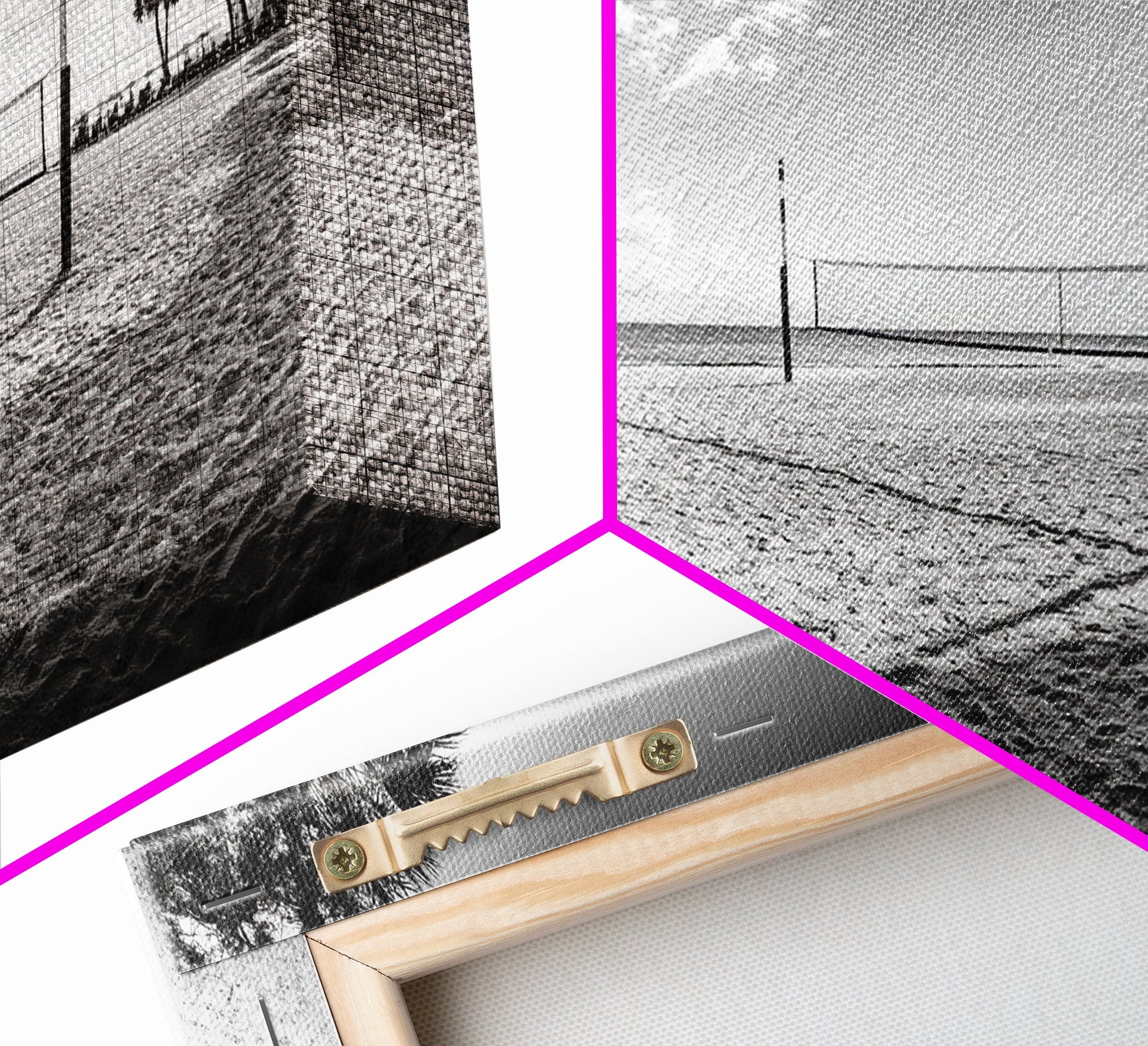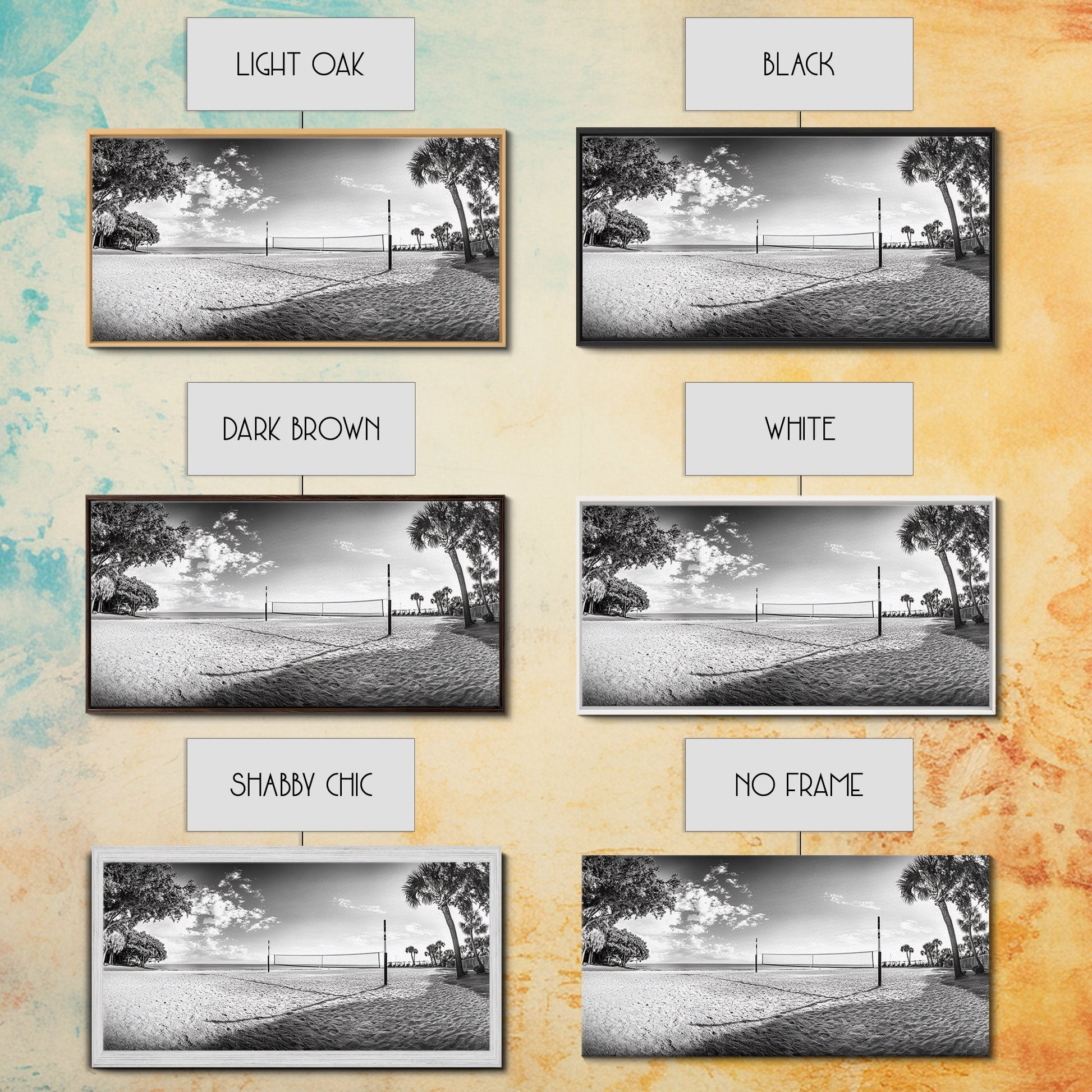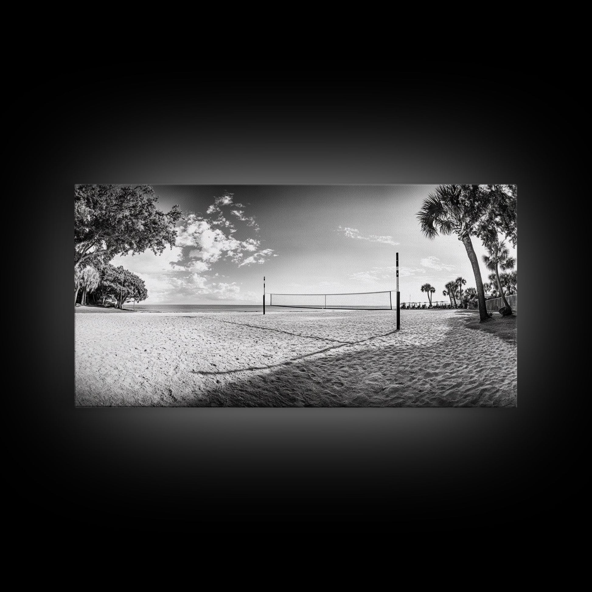 Volleyball Net, Coastal Leisure Scene, Bright Beach Vibe, Framed Canvas Print, Game Room Wall Art, Sporty Summer Beach Style