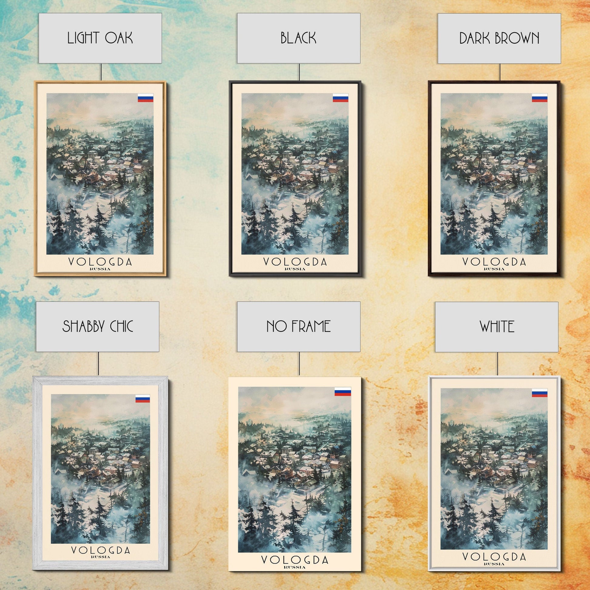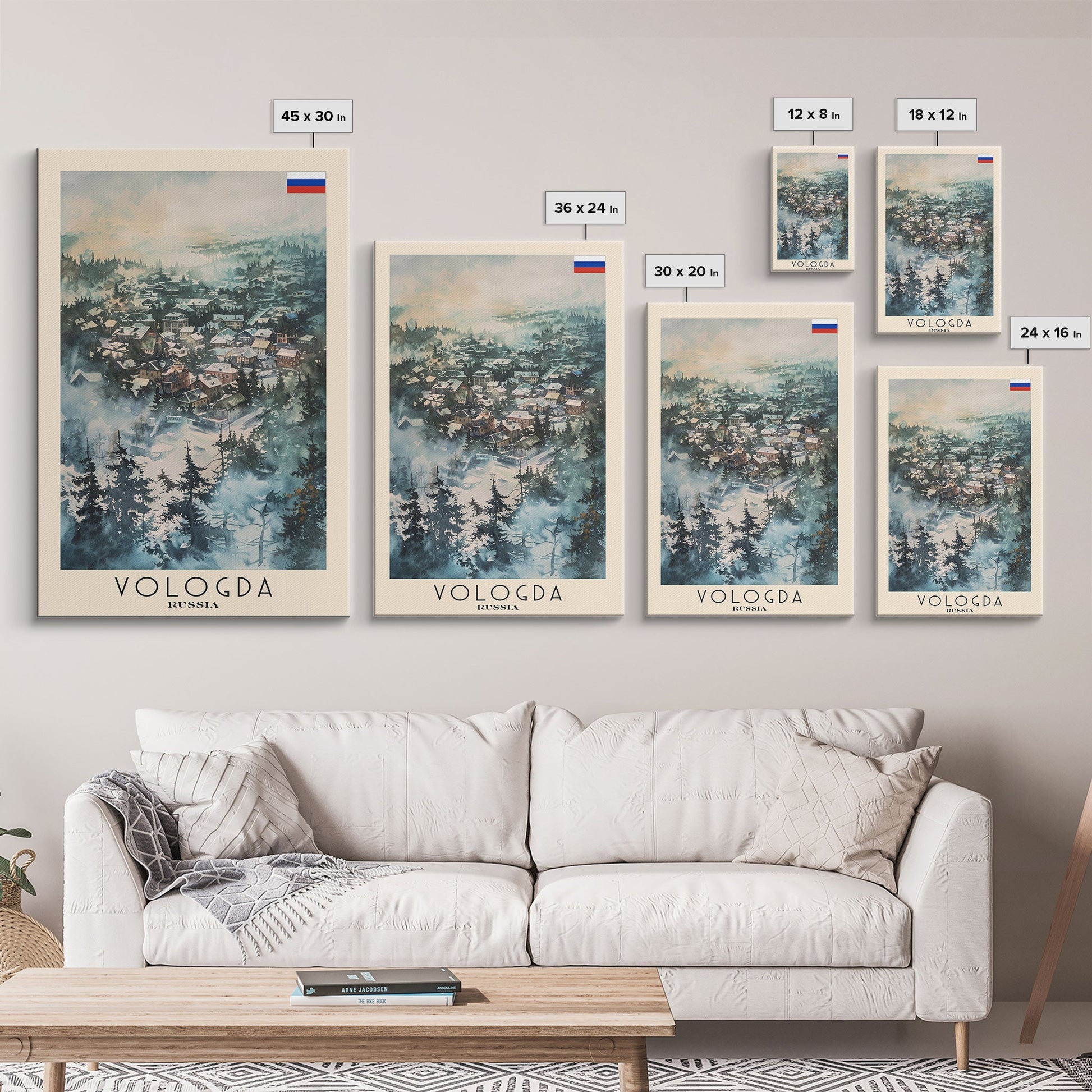 Vologda Russia Travel Poster Framed Canvas Print, Watercolor Painting, Scenic Wall Art, Home Decor, Russian Landscape, Rustic Art