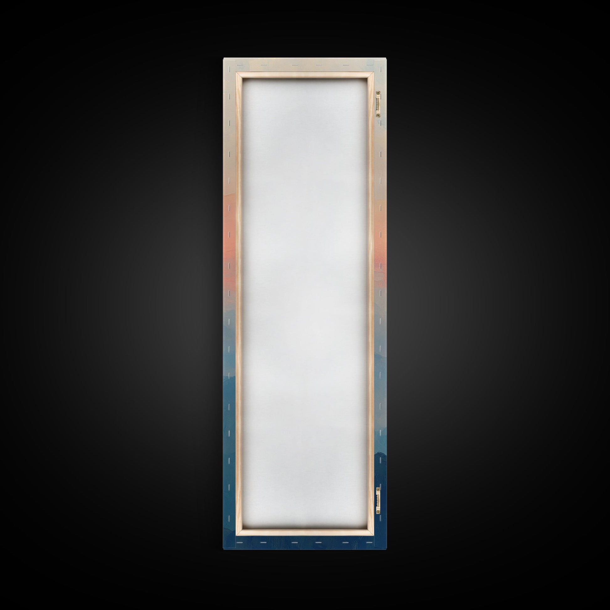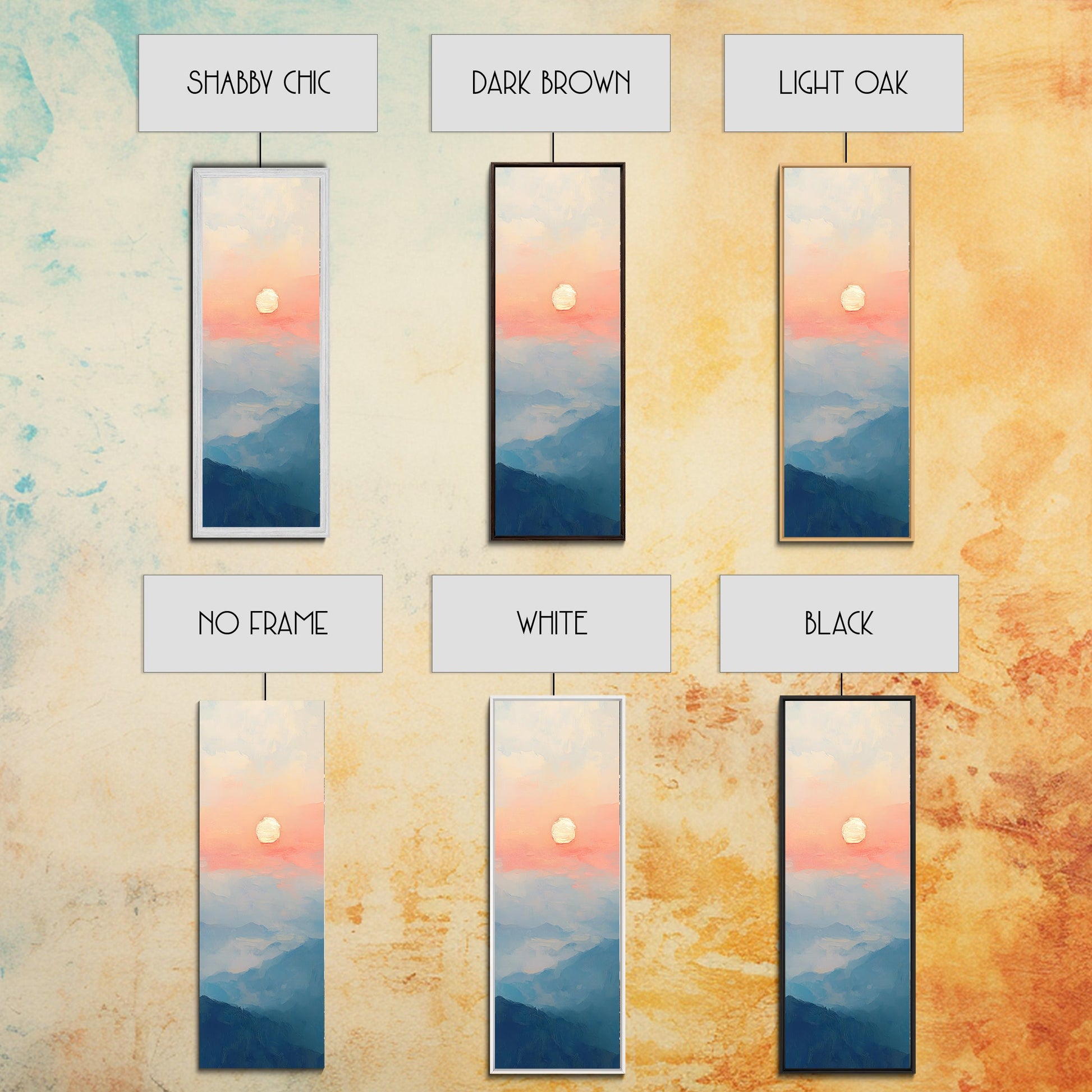 Wabi Sabi Sunset Oil Painting Print, Framed Canvas, Coastal Decor, Sunrise Over The Mountains, Boho Style Wall Art, Tall Narrow Wall Art