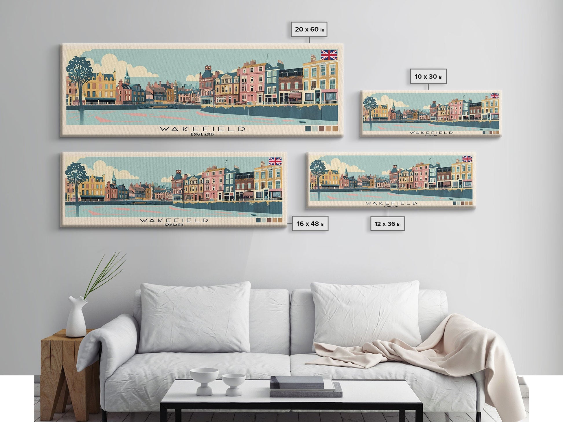 Wakefield, England Panoramic Canvas Print, Wakefield, England Painting, England Art, Wakefield Travel Poster, Travel Art, Vacation Gift