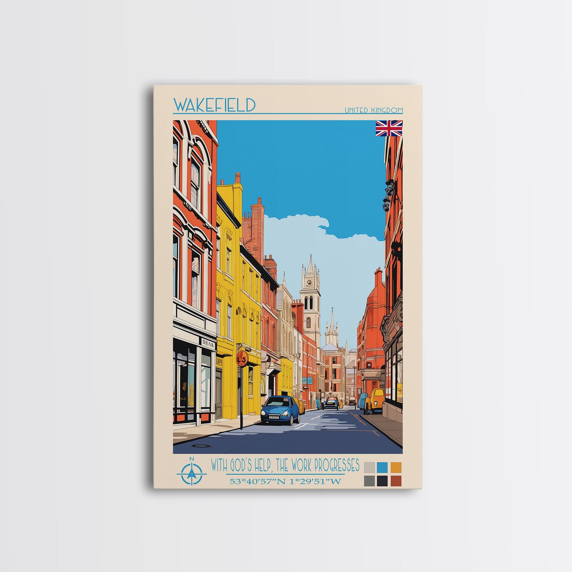 Wakefield United Kingdom Travel Poster Framed Canvas Print, Midcentury Modern Art, Pop Art Wall Decor, Living Room Art, Home Decoration