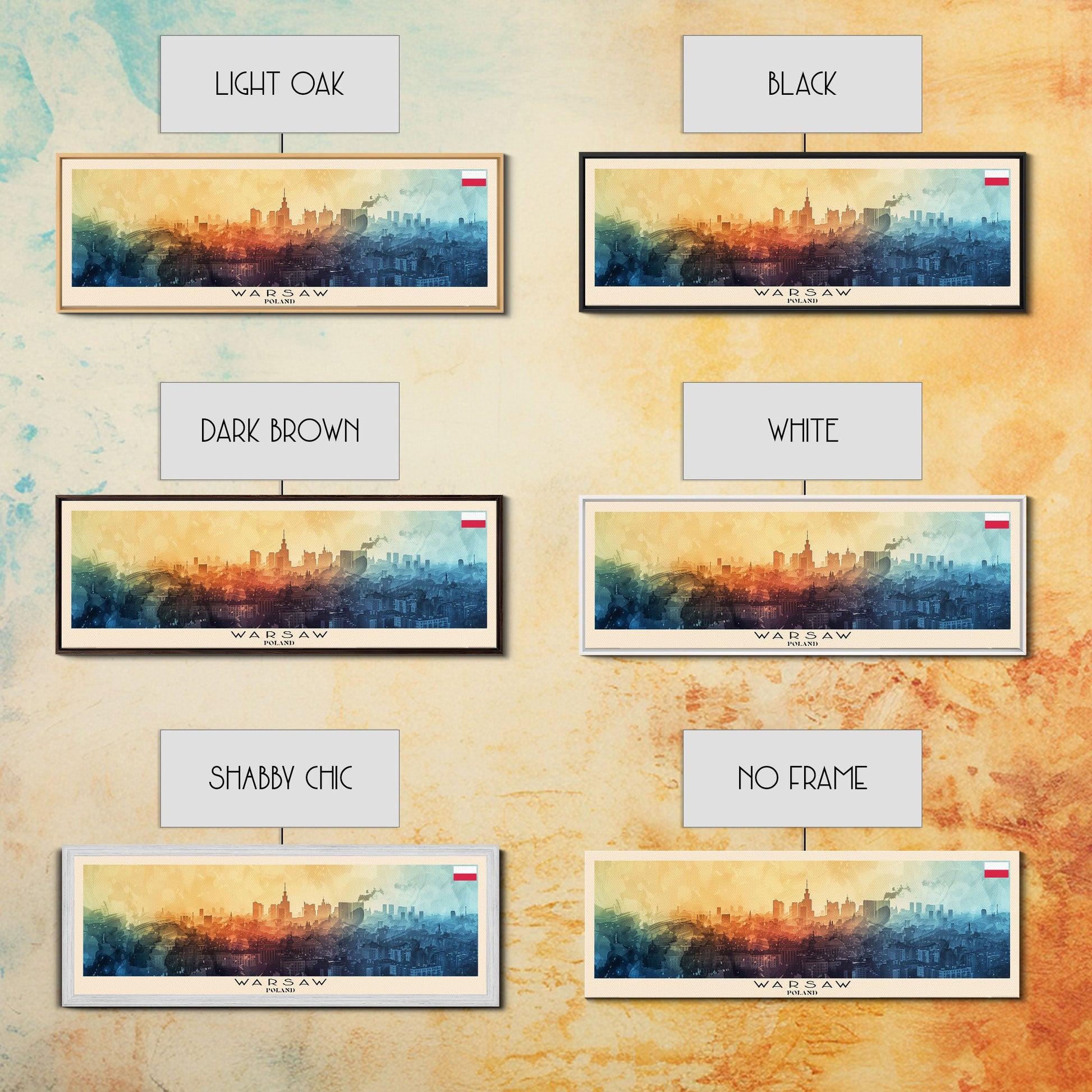 Warsaw Poland Travel Art, City Art, Framed Canvas Print or Metal Wall Art, Europe Travel Poster, Panoramic Wall Art, Extra Wide Wall Art