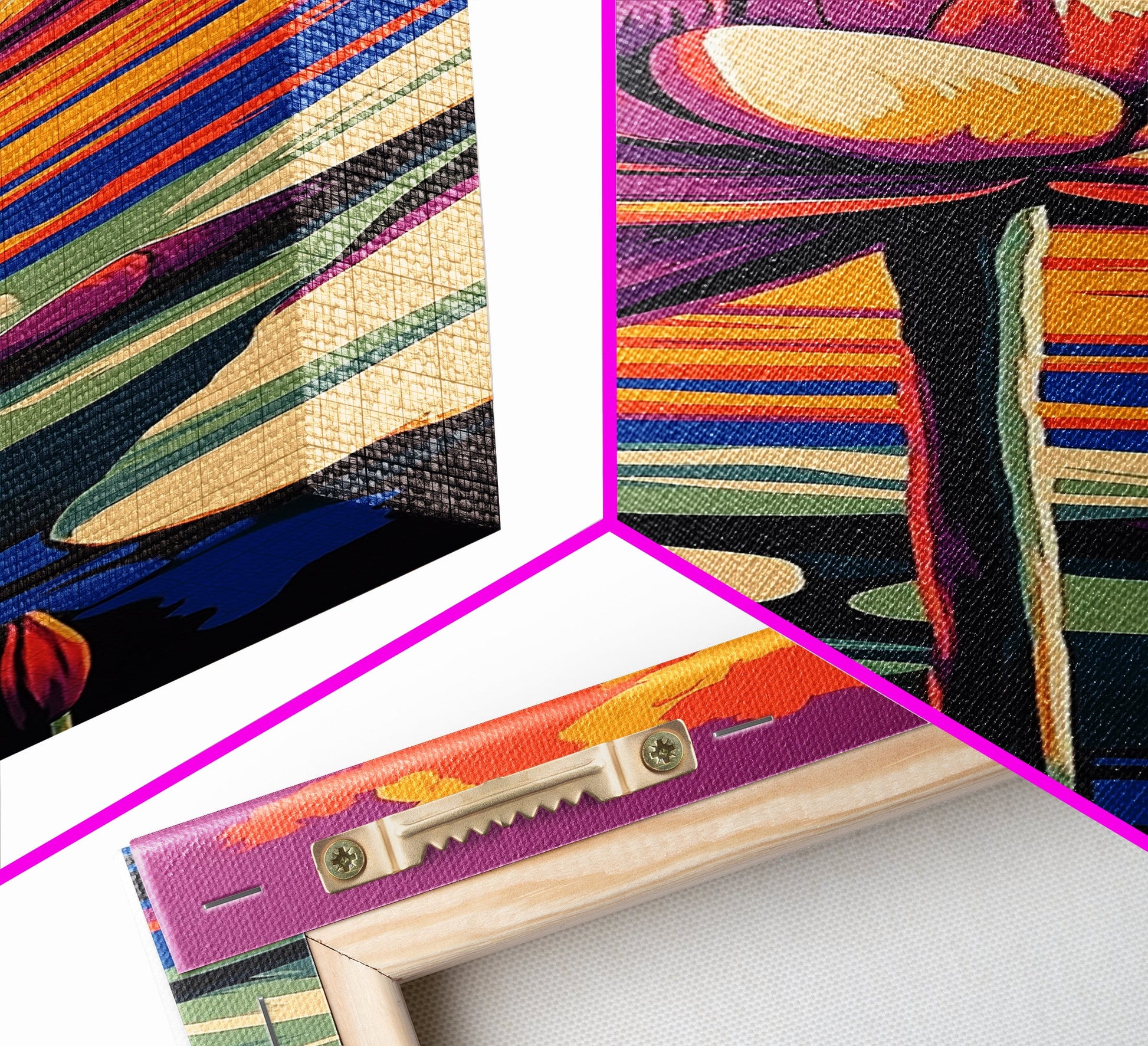 Hello and thank you for taking the time to view our modern high quality giclée artwork! We offer both posters and stretched canvas prints. Our posters are printed on Ultra Matte 60 lb / 230 GSM high quality photo paper, with a thickness of 10 mil. Our canvases are printed on museum grade 350 GSM canvas material with ECO friendly archival grade ink, then hand stretched and stapled over premium, FSC certified and shrink resistant frames. Designed and built to last a lifetime.