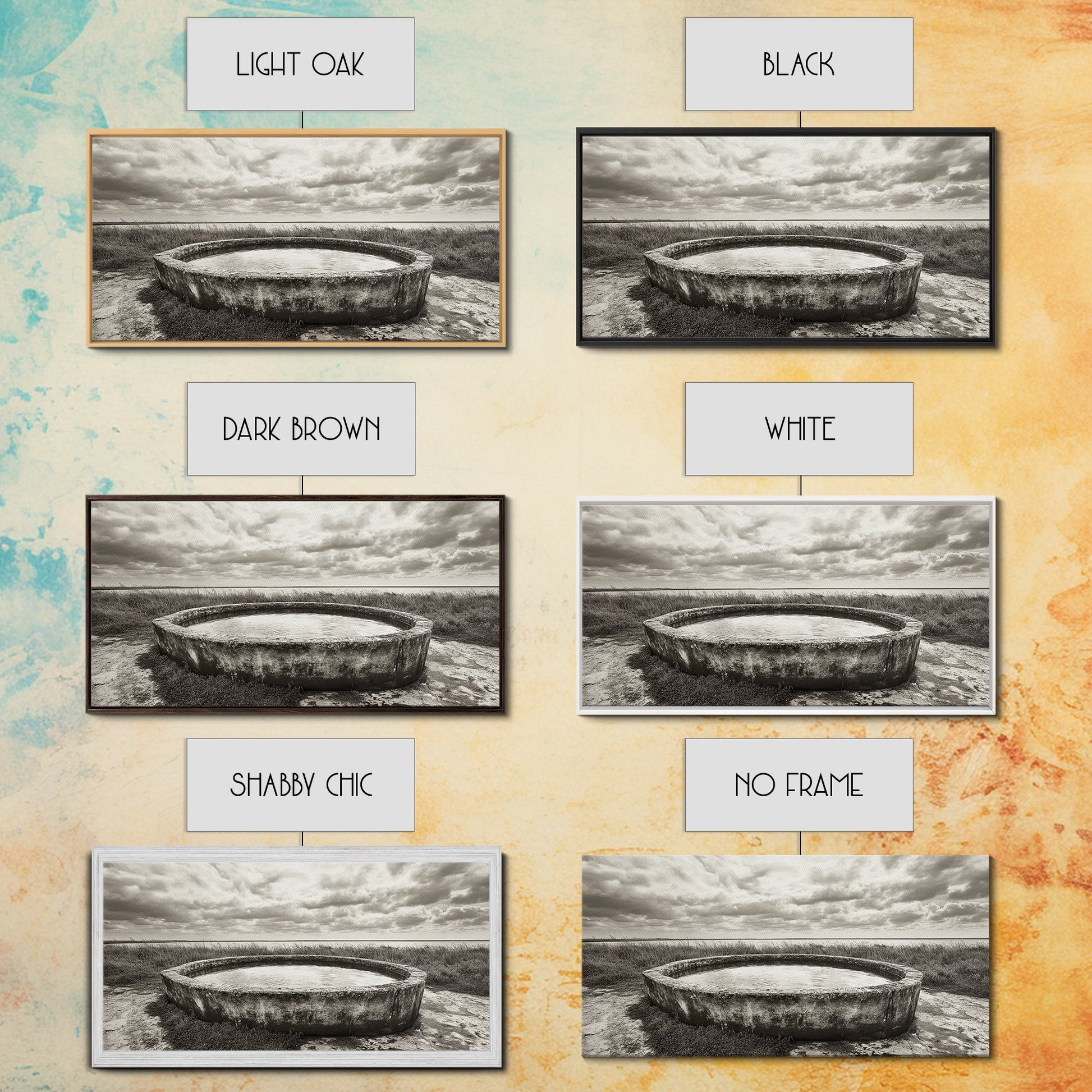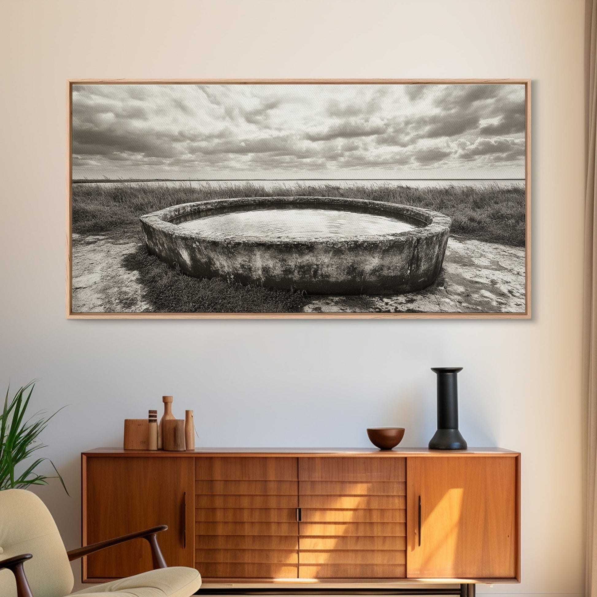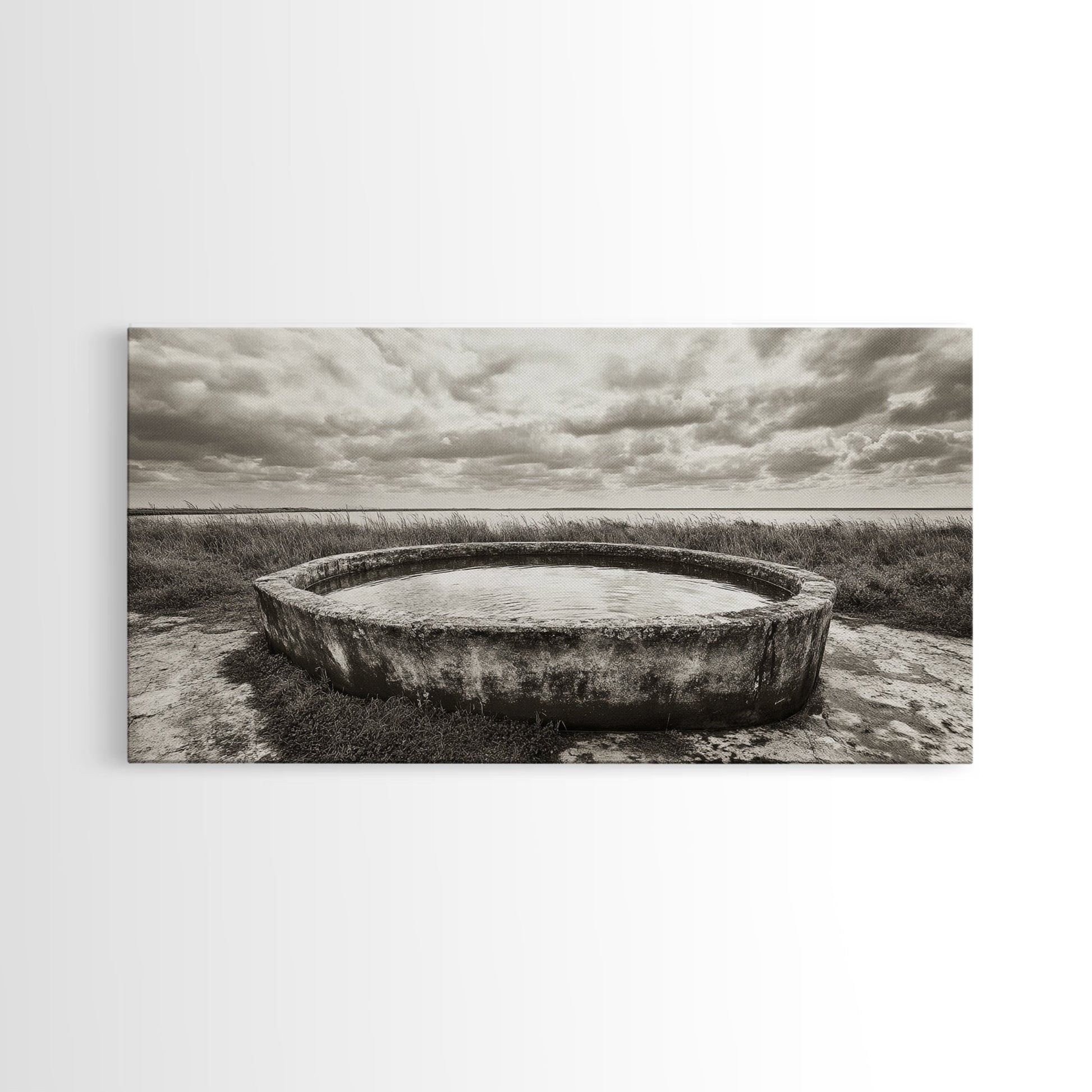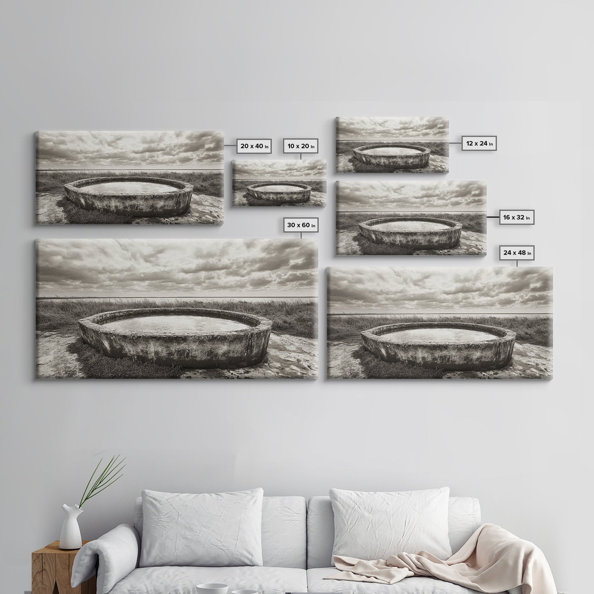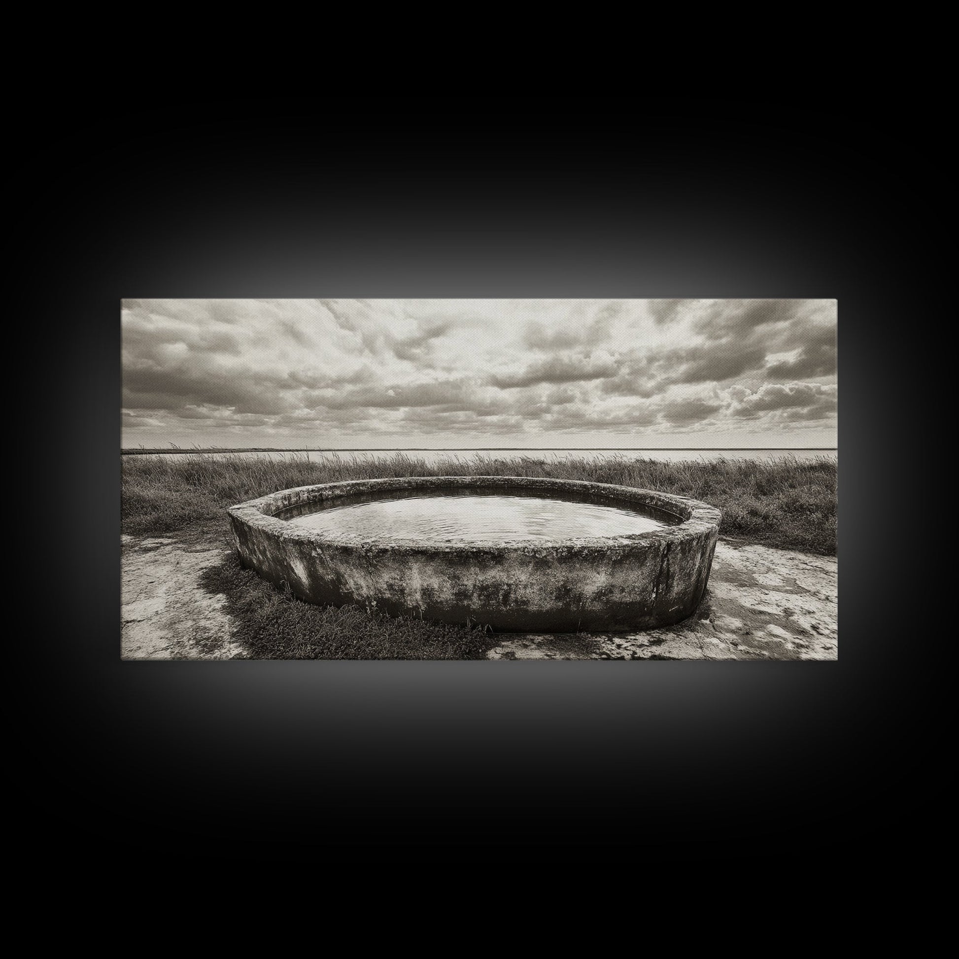 Water Trough, Overcast Skies, Ocean Breeze, Framed Canvas Print, Country Rustic Wall Art, Sepia Toned Fall Decor, Entryway Or Den Art