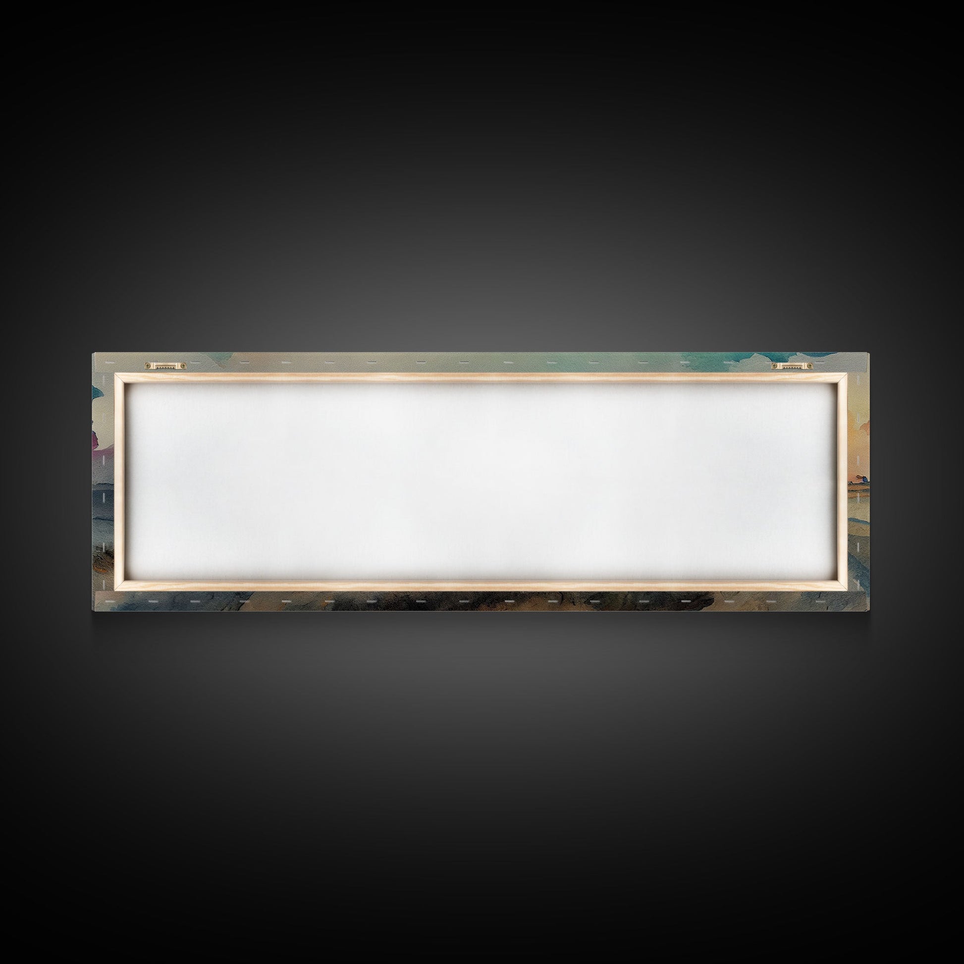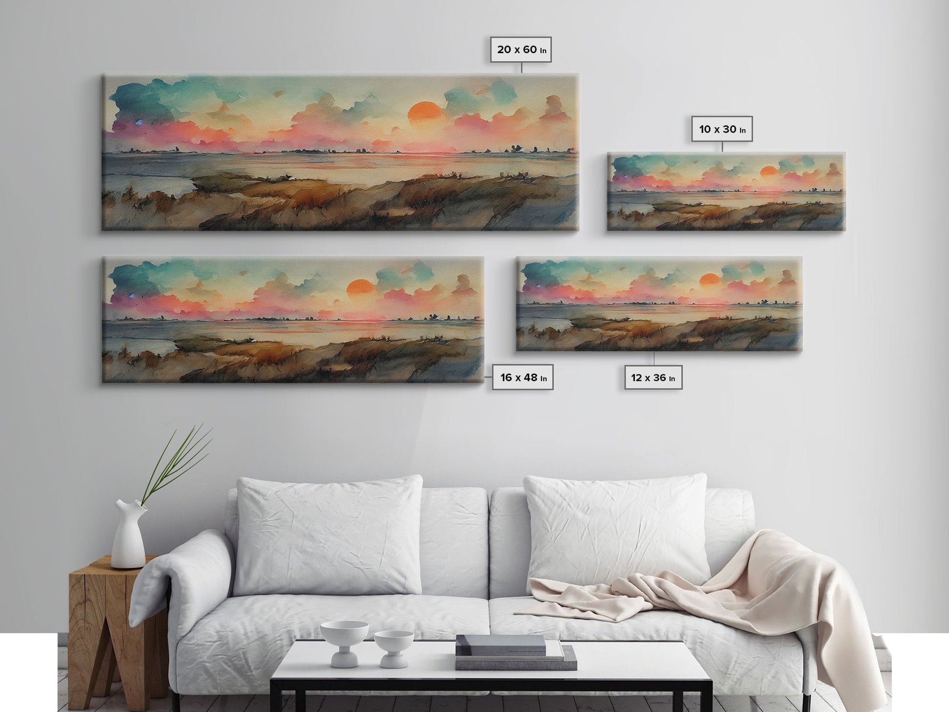 Watercolor Landscape Painting Print, Ready To Hang Panoramic Canvas Print, Whimsical Water Color Sunset, Hazy Smoky Sky