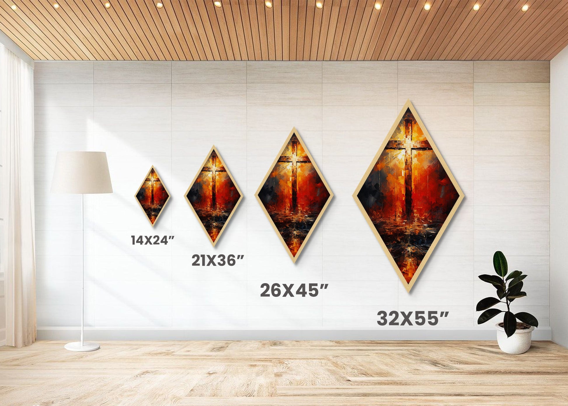 Watercolor Painting Print Of a Cross, Funky Christian Decor, Canvas Art, Canvas Textured Print Wall Art, Diamond Shaped Wall Art