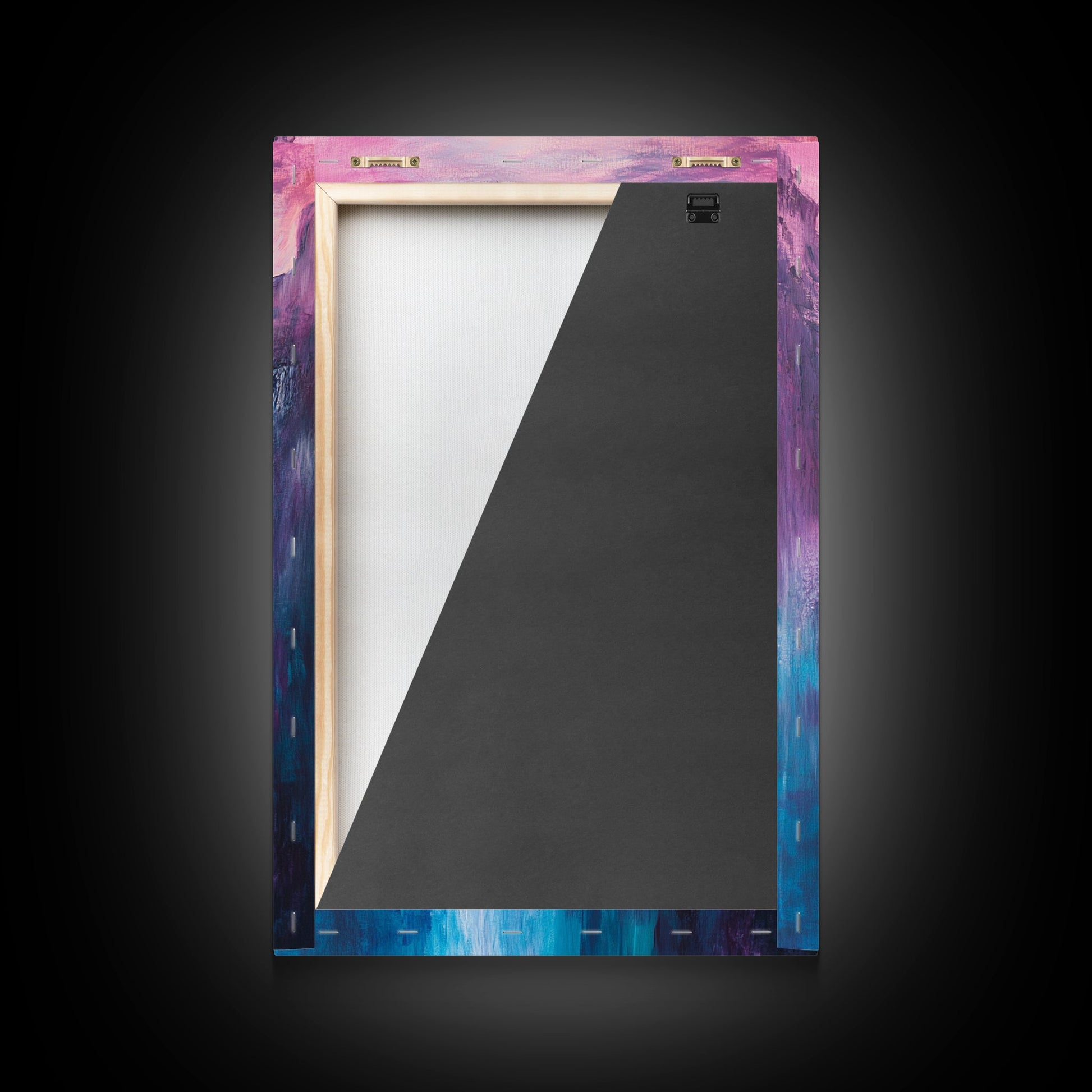Waterfall Sunset, Moody Art, Mountain Painting, Landscape Painting, Pink Orange Wall Art, Above Couch Art, Canvas Print