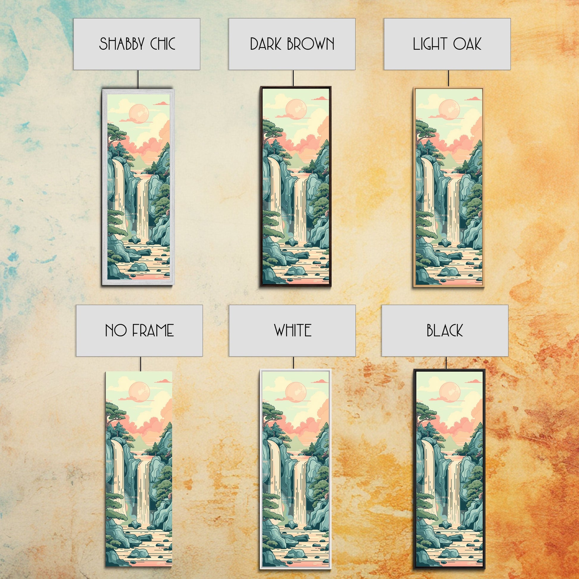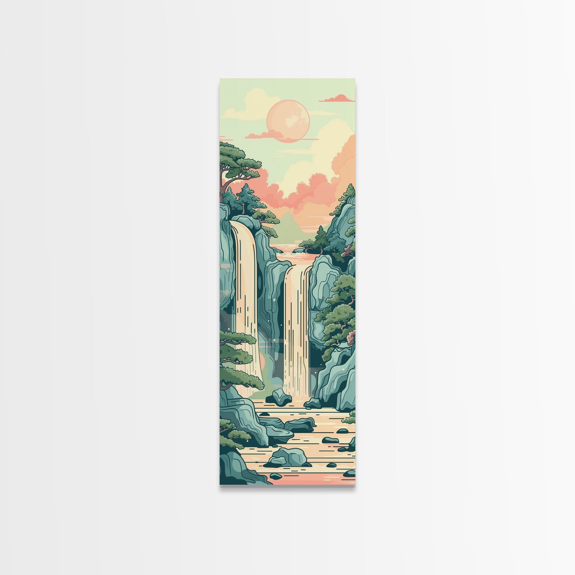 Waterfall With Scenic Landscape - Skinny Art Tall Art Framed Canvas Print Japanese Style Art Ukiyo-e Art