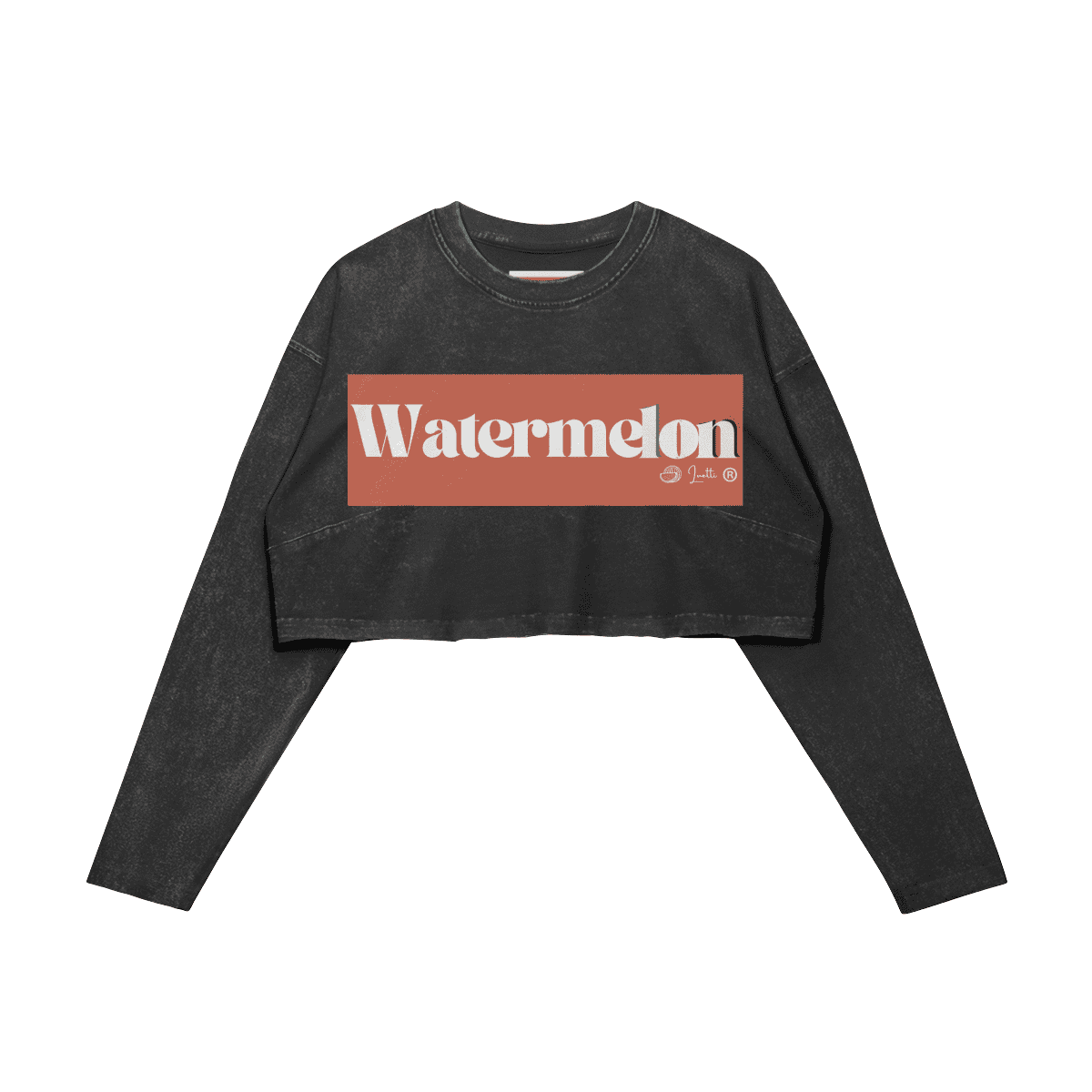 Introducing our Watermelon Women Cropped Faded Raw Hem Long Sleeve crew, a symbol of solidarity with Palestine. This unique design features drop shoulders and a raw hem for a relaxed, casual look. With its midriff-baring and boxy fit, this shirt offers both comfort and style. The washed effect adds a vintage touch, while the 100% combed cotton fabric ensures softness and durability. Constructed with 32 count plain weave and pre-shrunk for a perfect fit wash after wash, this shirt is designed to last. Side-seamed construction and binding taped neck and shoulders provide added strength and structure. The double-stitched ribbed collar and coverstitch cuffs add a touch of sophistication, while the raw edge hem completes the edgy aesthetic. For care instructions, wash on the reverse side with neutral detergents, avoiding soaking, sun exposure, and bleaching. Iron, steam, or tumble dry at low temperature (max 30℃ or 90℉) to maintain the integrity of the design