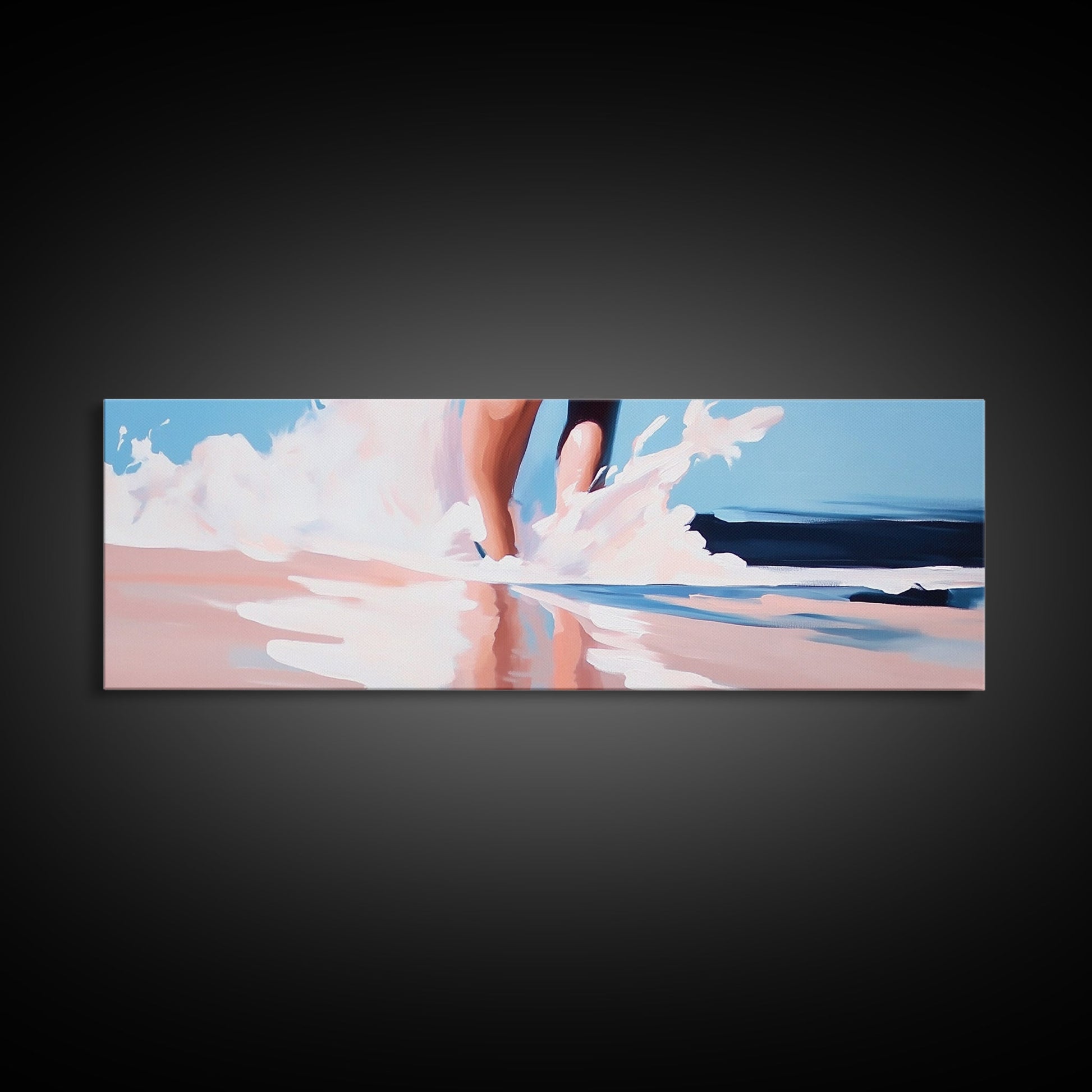 Waves and Feet, Coastal Wall Art, Ocean Art, Beach Lover Gift, Seascape Painting, Framed Canvas Print, Modern Living Room Decor