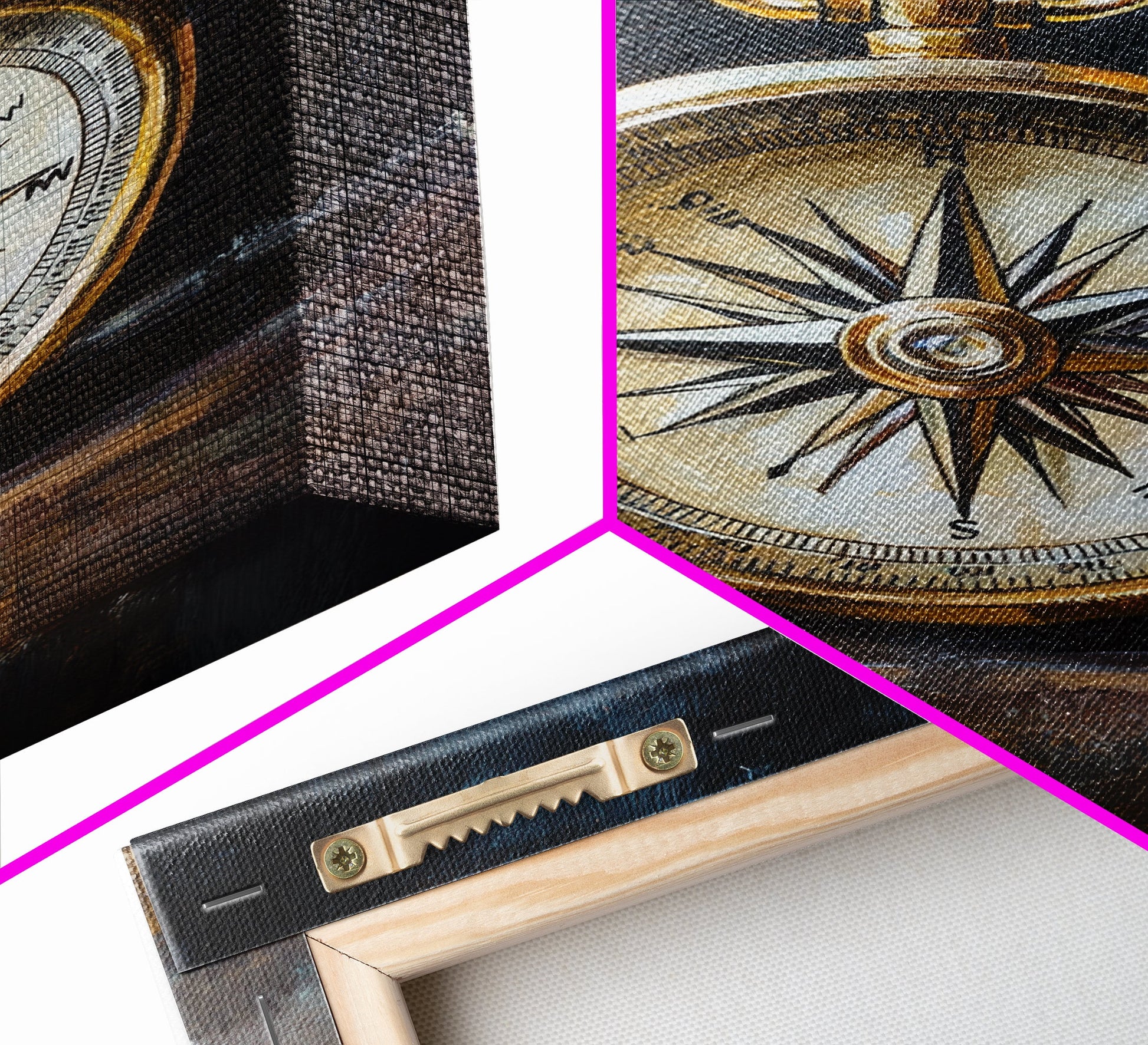 Weathered Compass Wall Art, Nautical Coastal Home Decor Wall Art Framed Canvas Print, Rustic Seaside Accent Piece, Statement Piece, Rustic Decor