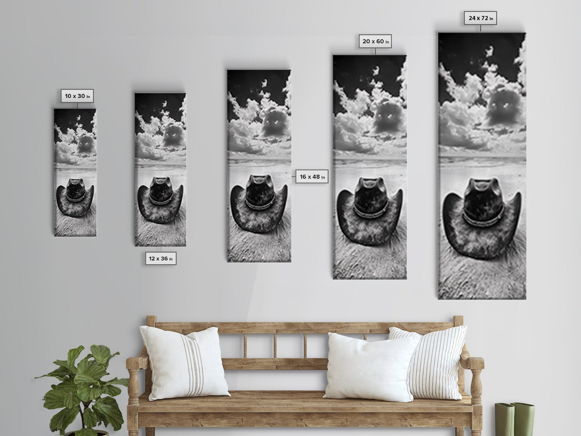 Weathered Cowboy Hat, Coastal Cowgirl Wall Art, Framed Canvas Print, Rustic Décor, Boho Art, Minimalist Art, Nautical Wall Art