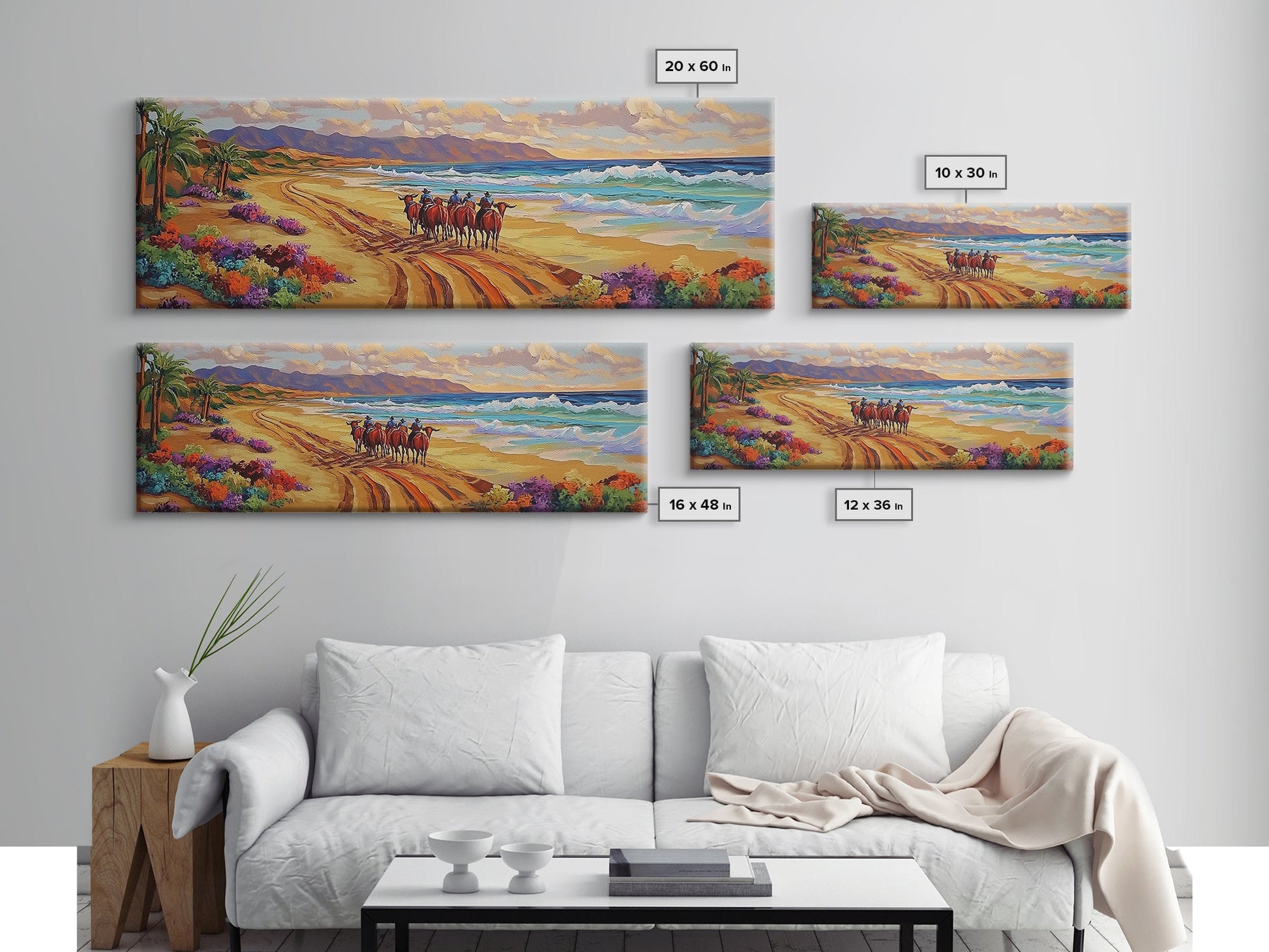 Western Beach Trail, Cowboy Horses Art, Desert Shoreline, Canvas Print, Fall Wall Decor, Rustic Western Style, Living Room Wall Art