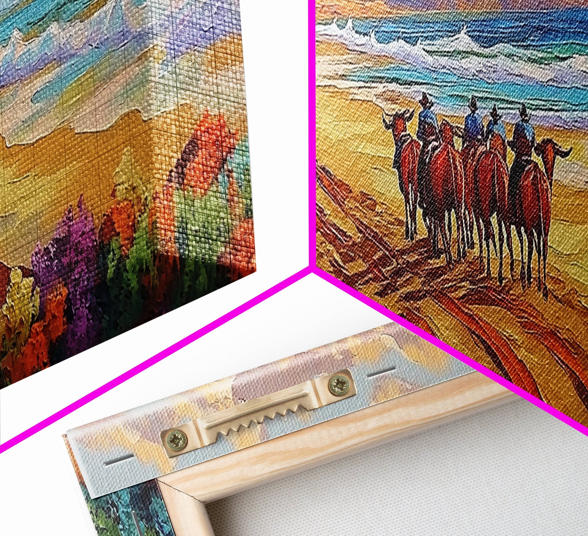 *SHIPPING: Every canvas is carefully wrapped in bubble wrap and foam corner protectors, and shipped fully assembled and ready to hang with sawtooth hangers in a flat box. All you need is a hammer!