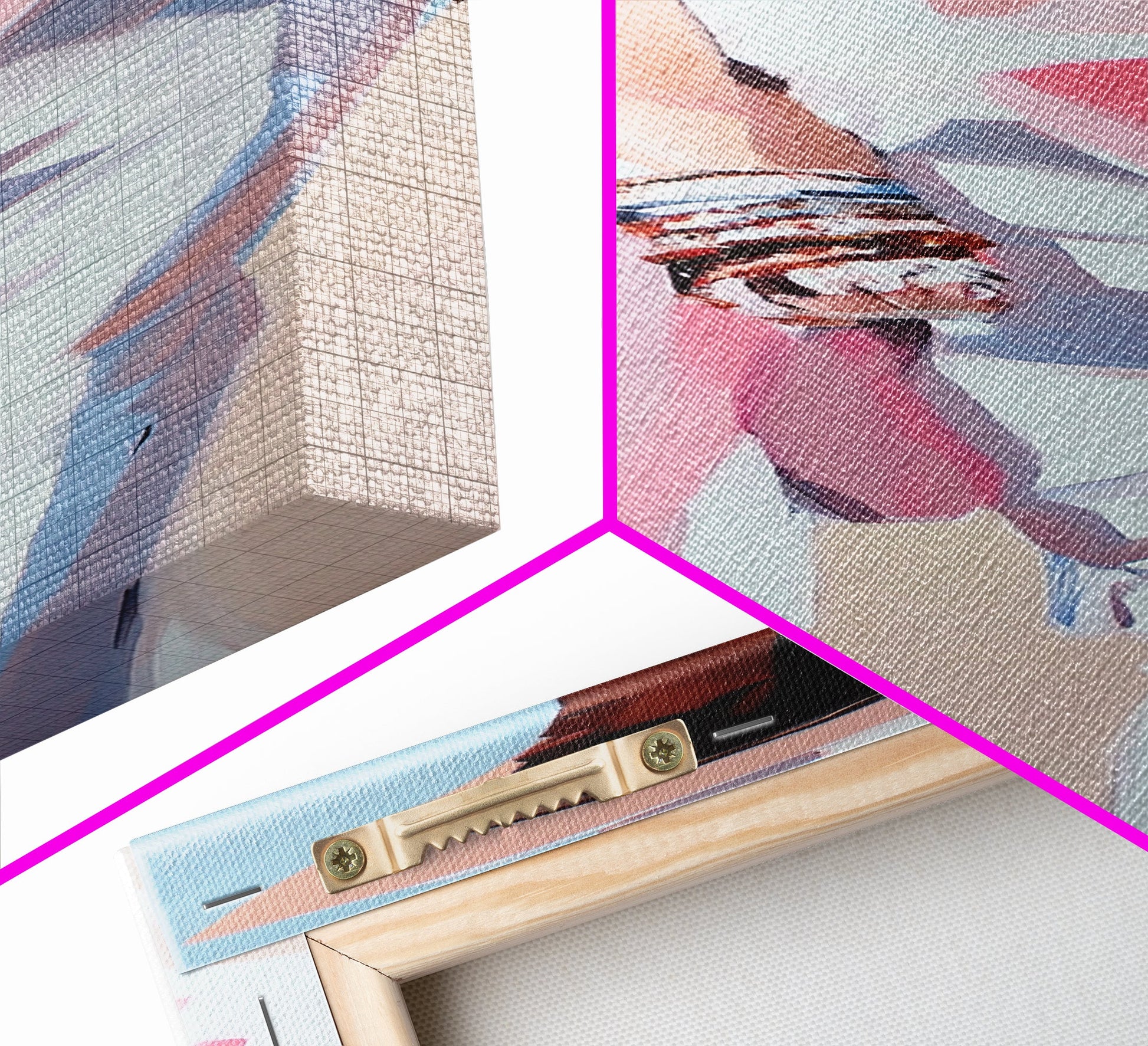 Hello and thank you for taking the time to view our modern high quality giclée artwork! We offer both posters and stretched canvas prints. Our posters are printed on Ultra Matte 60 lb / 230 GSM high quality photo paper, with a thickness of 10 mil. Our canvases are printed on museum grade 350 GSM canvas material with ECO friendly archival grade ink, then hand stretched and stapled over premium, FSC certified and shrink resistant frames. Designed and built to last a lifetime.