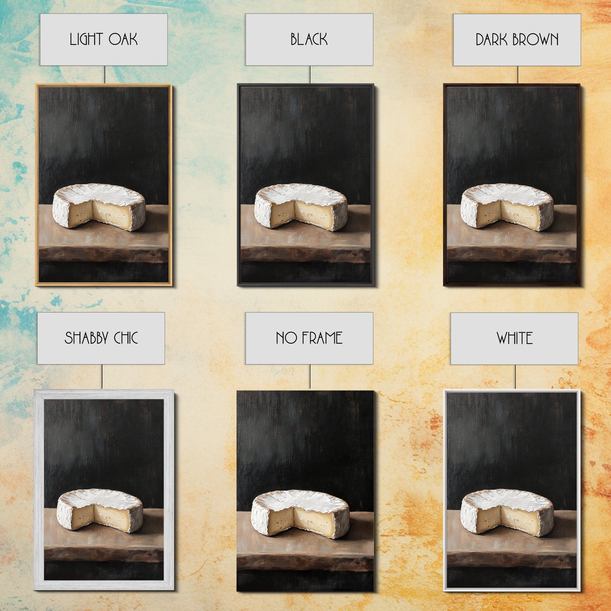 Wheel Of Cheese Painting Print, Brie Cheese Art, Cheese Painting, Cheese Still Life Oil Painting, Cheese Painting, Rustic Kitchen Decor