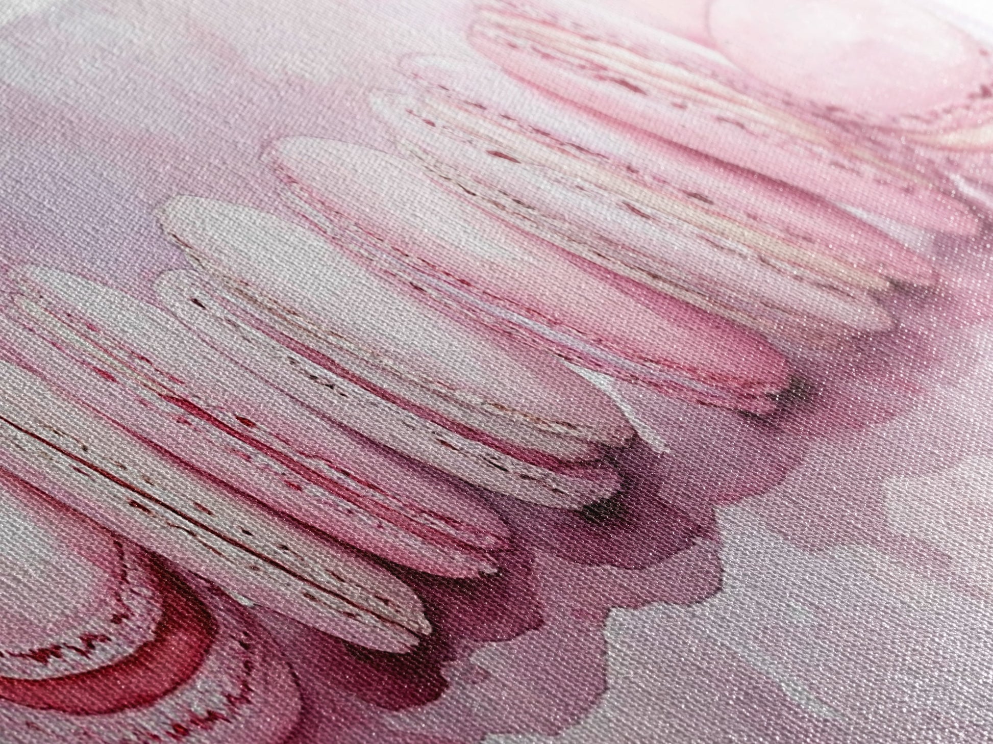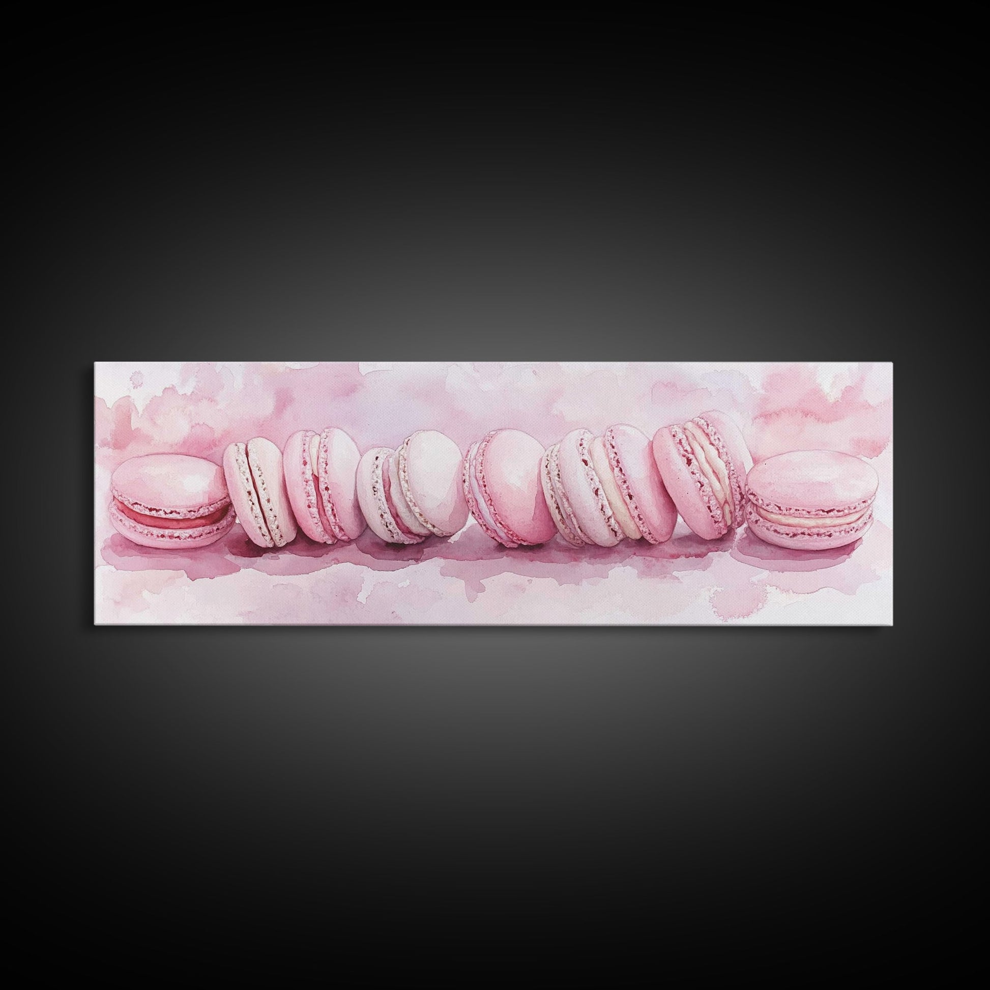 Whimsical Macarons Pink Wall Art Framed Canvas Print Extra Wide Horizontal Dessert Painting Food Review Kitchen Art