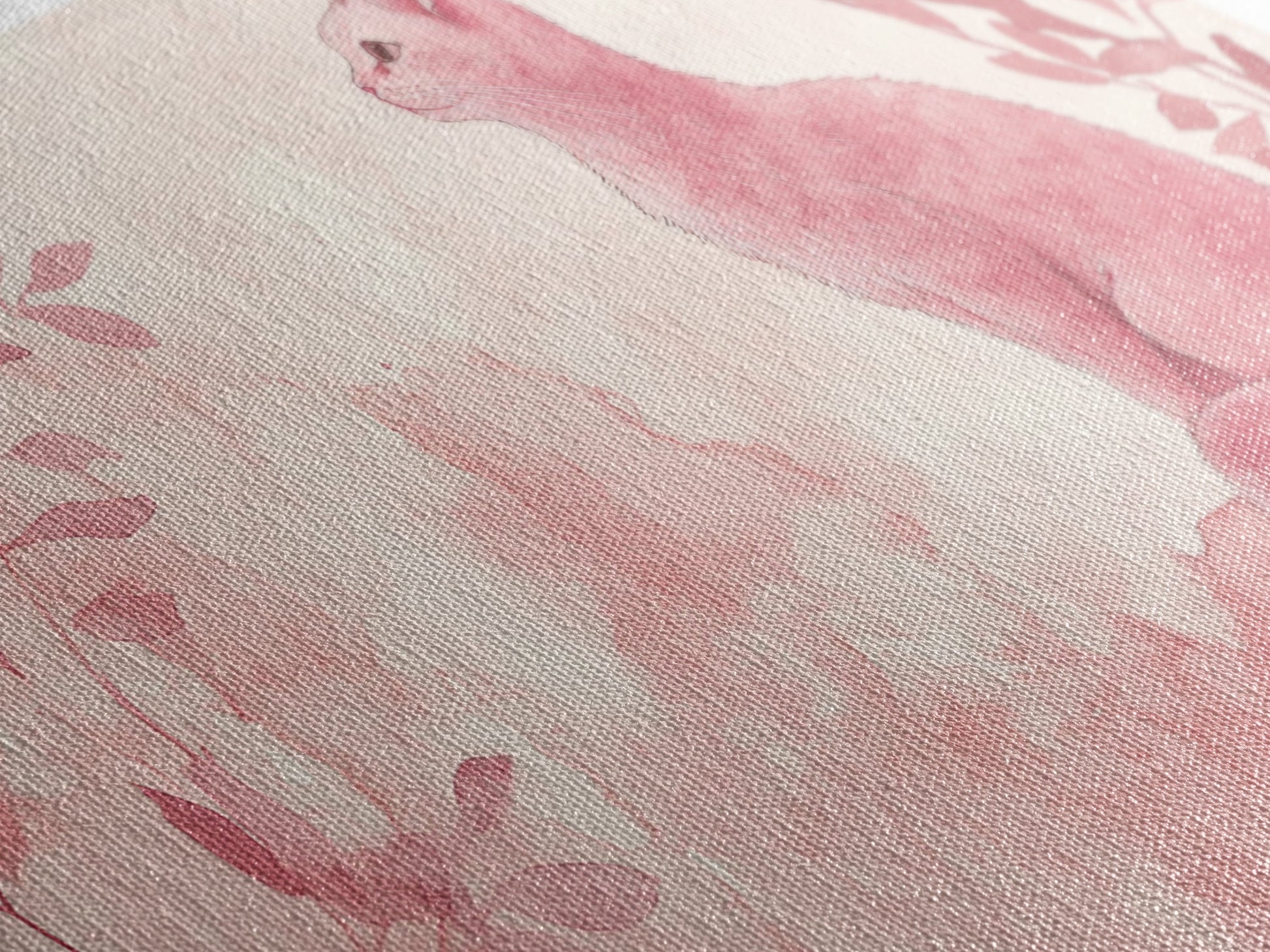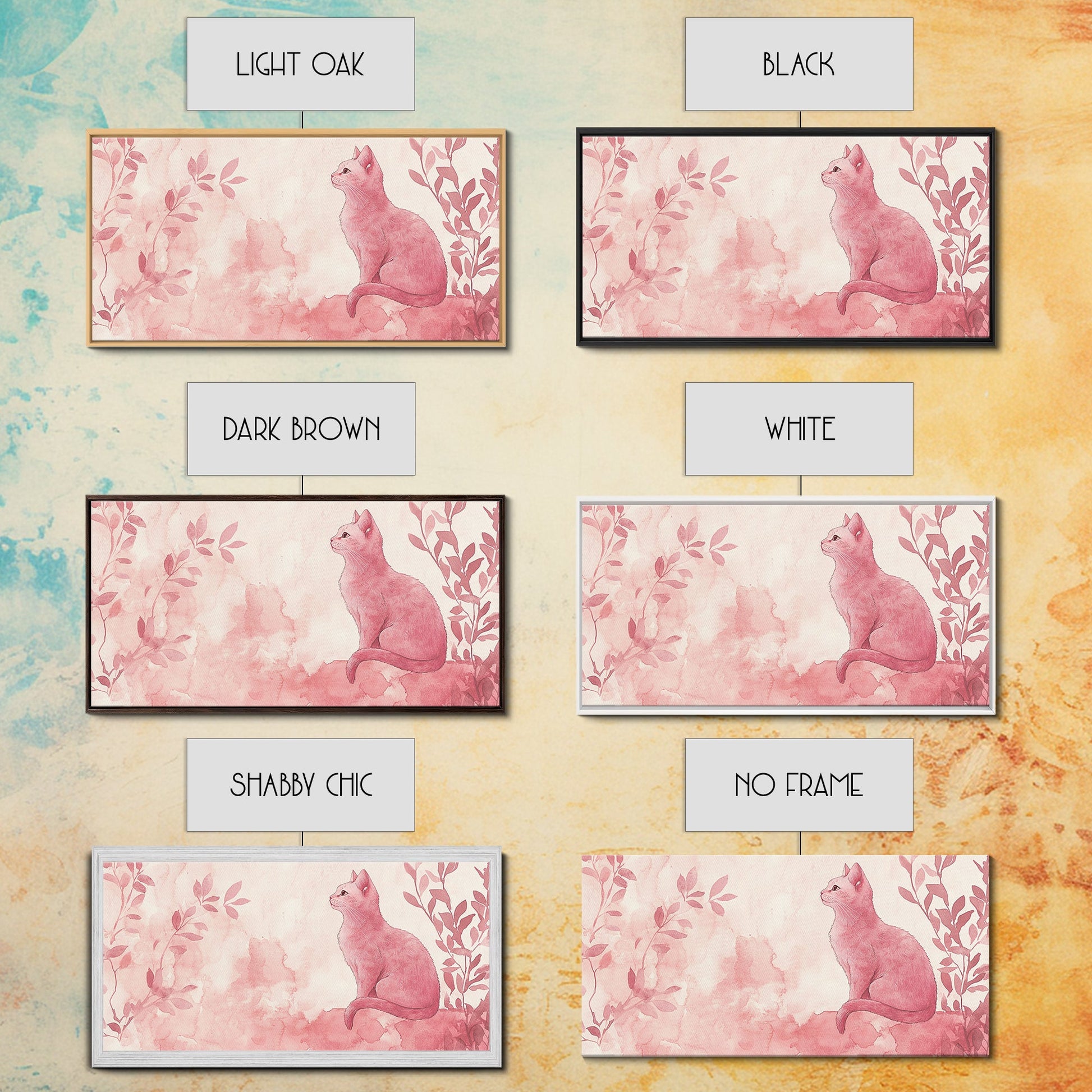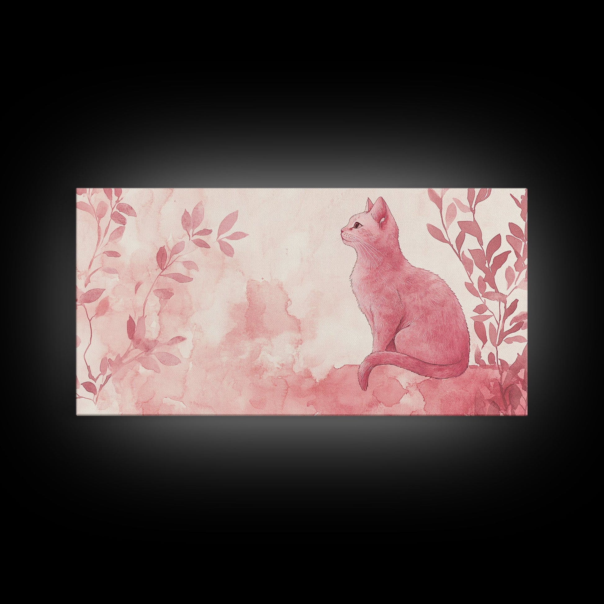 Whimsical Pink Cat Canvas Print Featuring Pink Wall Art Minimalist Art Botanical Prints Light Pink Wall Art Farmhouse Rustic Decor