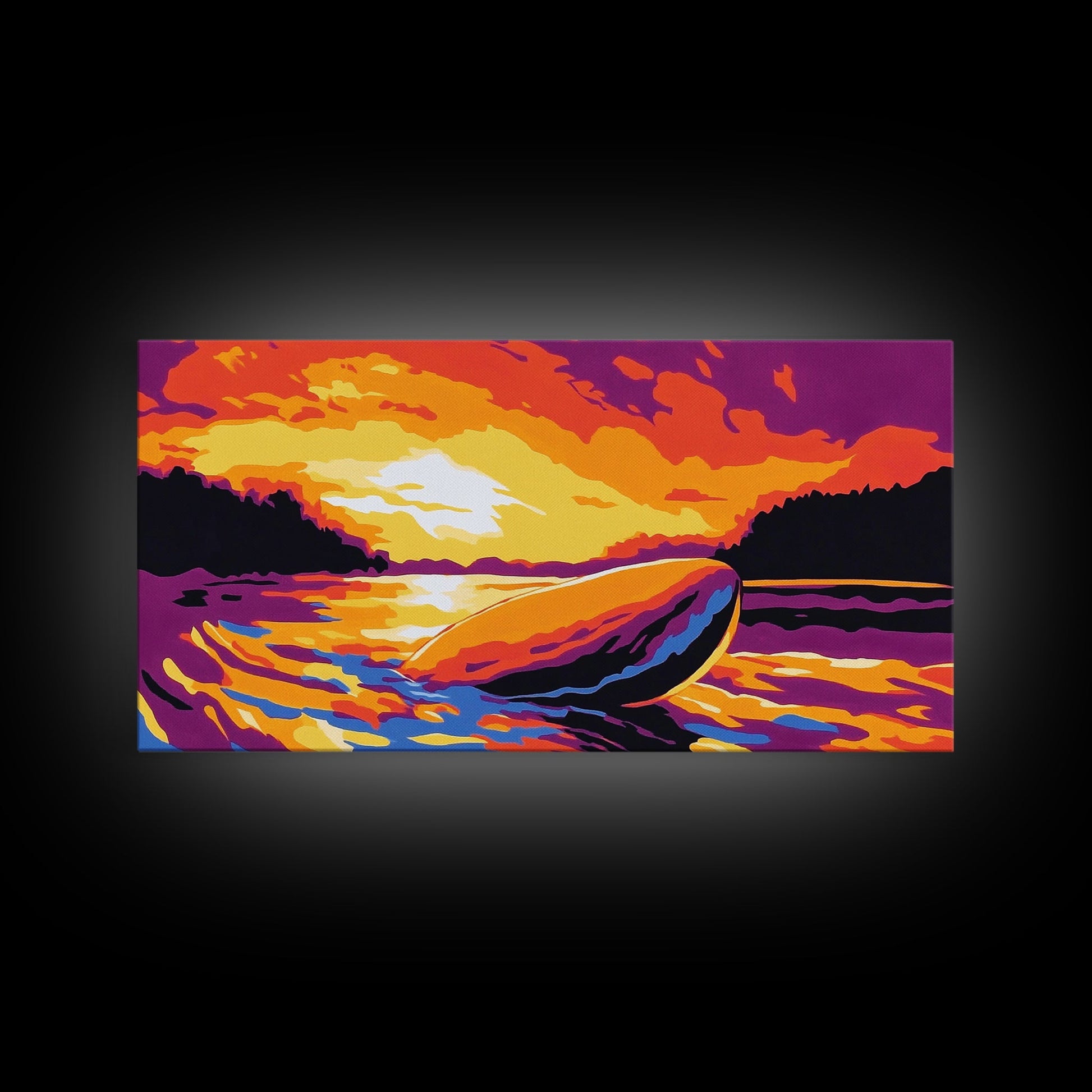 Whiskey Bottle, Sunset Reflection, Framed Canvas Print, Rustic Bar Art, Dramatic Home Art, Vibrant Wall Decor, Dining Room Wall Art
