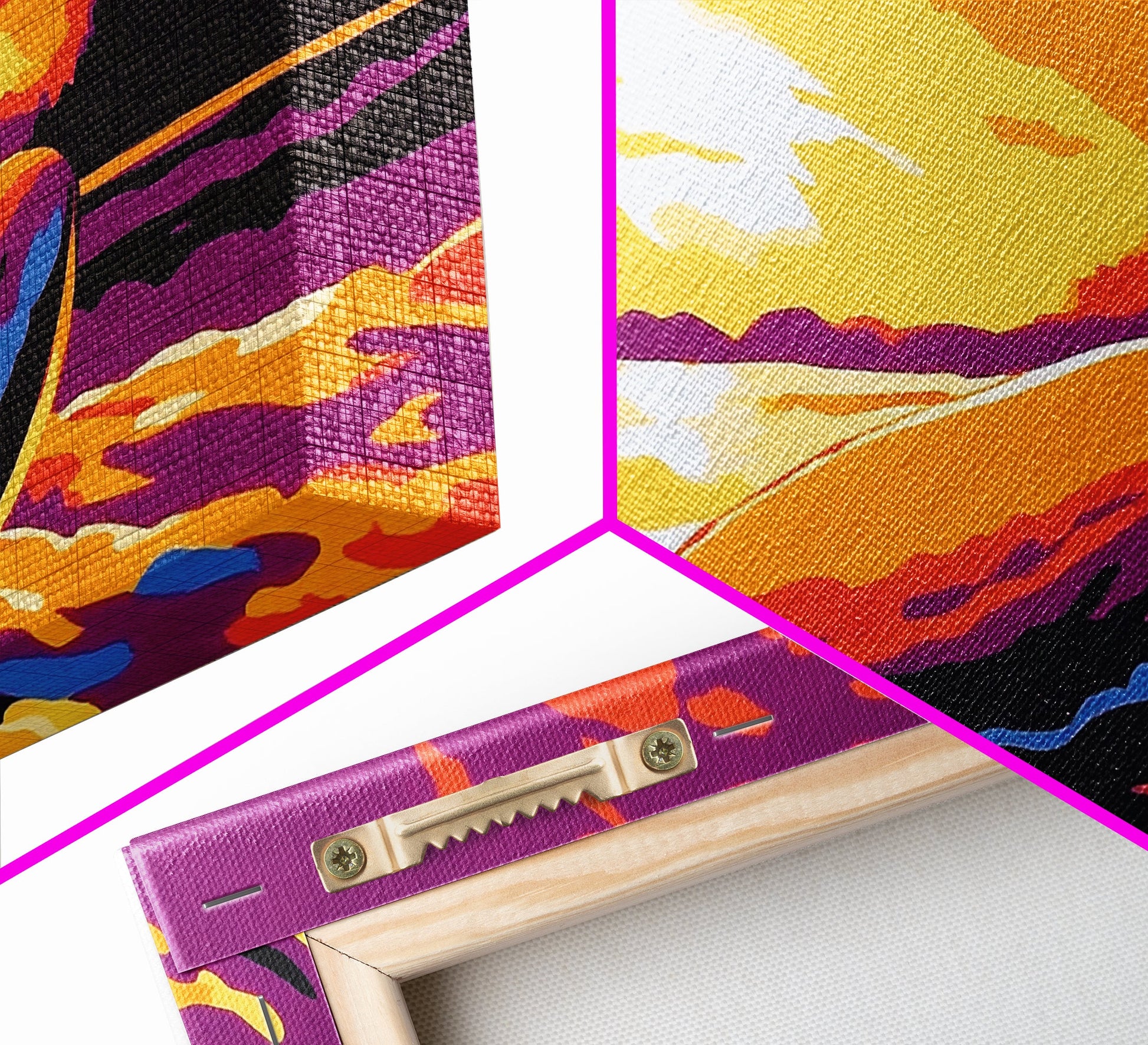 Hello and thank you for taking the time to view our modern high quality giclée artwork! We offer both posters and stretched canvas prints. Our posters are printed on Ultra Matte 60 lb / 230 GSM high quality photo paper, with a thickness of 10 mil. Our canvases are printed on museum grade 350 GSM canvas material with ECO friendly archival grade ink, then hand stretched and stapled over premium, FSC certified and shrink resistant frames. Designed and built to last a lifetime.