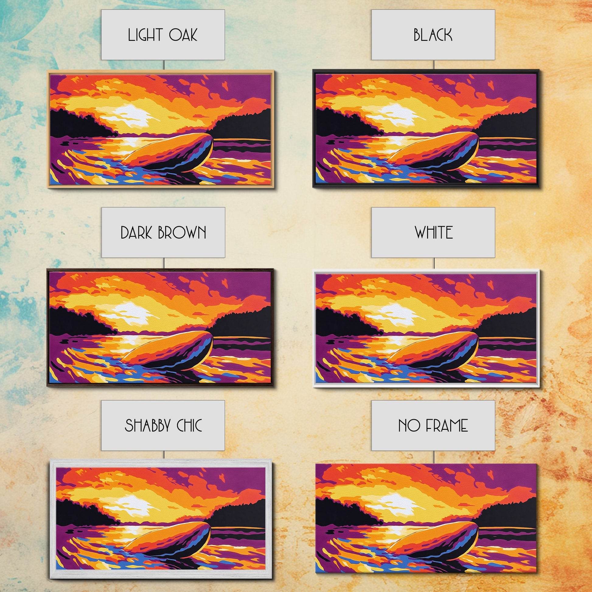 *Optional frames add a total of 1.5 inches to each dimension, for example a 10x20 canvas with a frame will be 11.5 by 21.5 inches total. All framed canvas are 1.5" total depth.