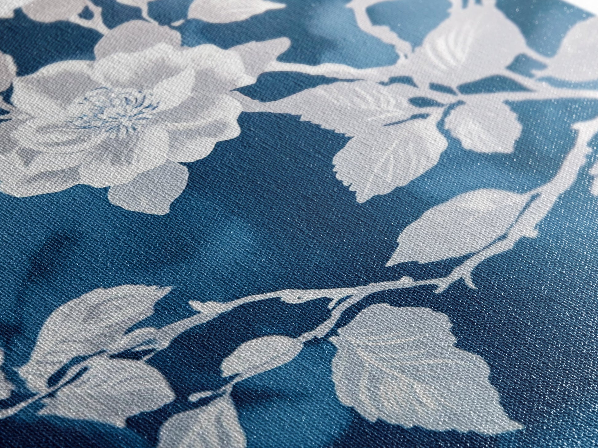 White Flowers on Blue Background Framed Canvas Print, Chinoiserie Wall Art, Boho Decor, Minimalist Wall Art, Boho Home Decor