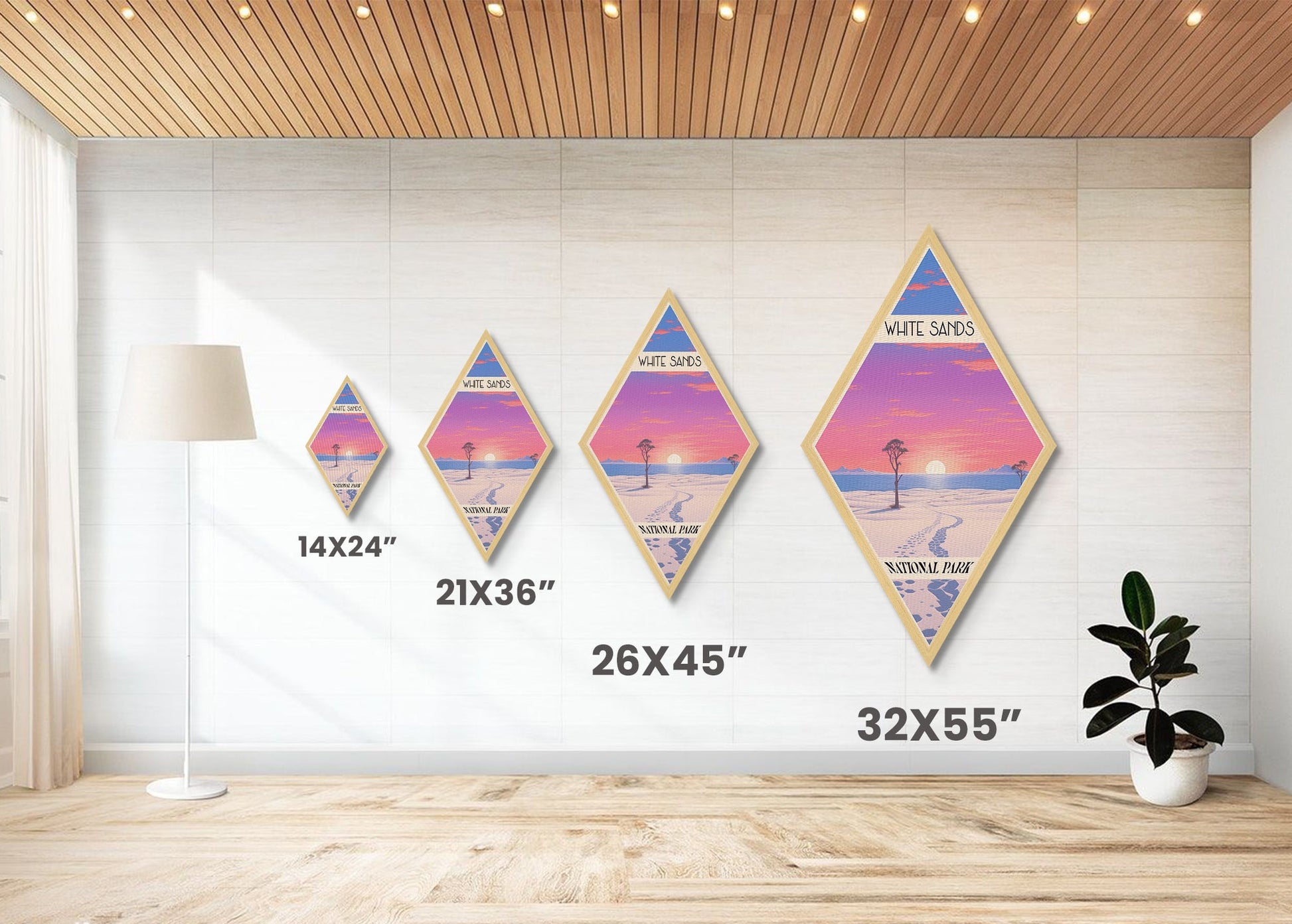 White Sands National Park Diamond Formed Travel Poster Wall Art Art Print, Canvas Wall Art, Travel Present, New Mexico Travel Art