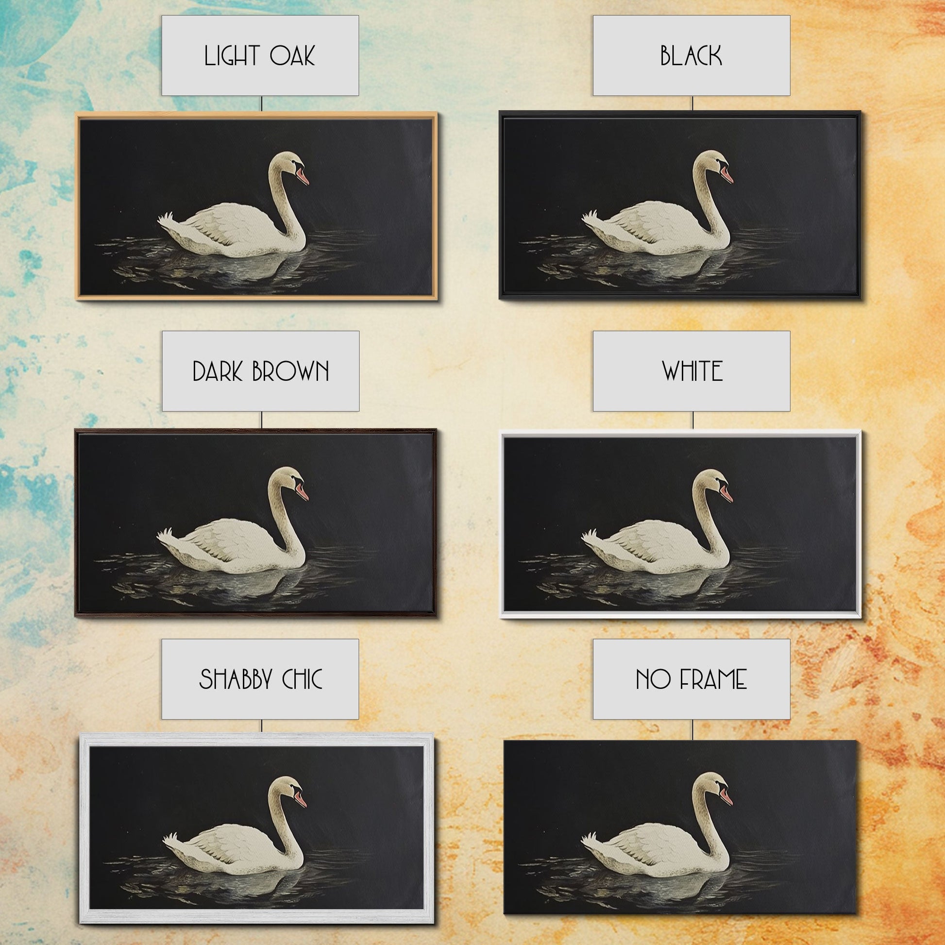 White Swan On A Black Lake, Victorian Style Vintage Art, Framed Canvas Print, Antique Art Reproduction, Traditional Wall Art