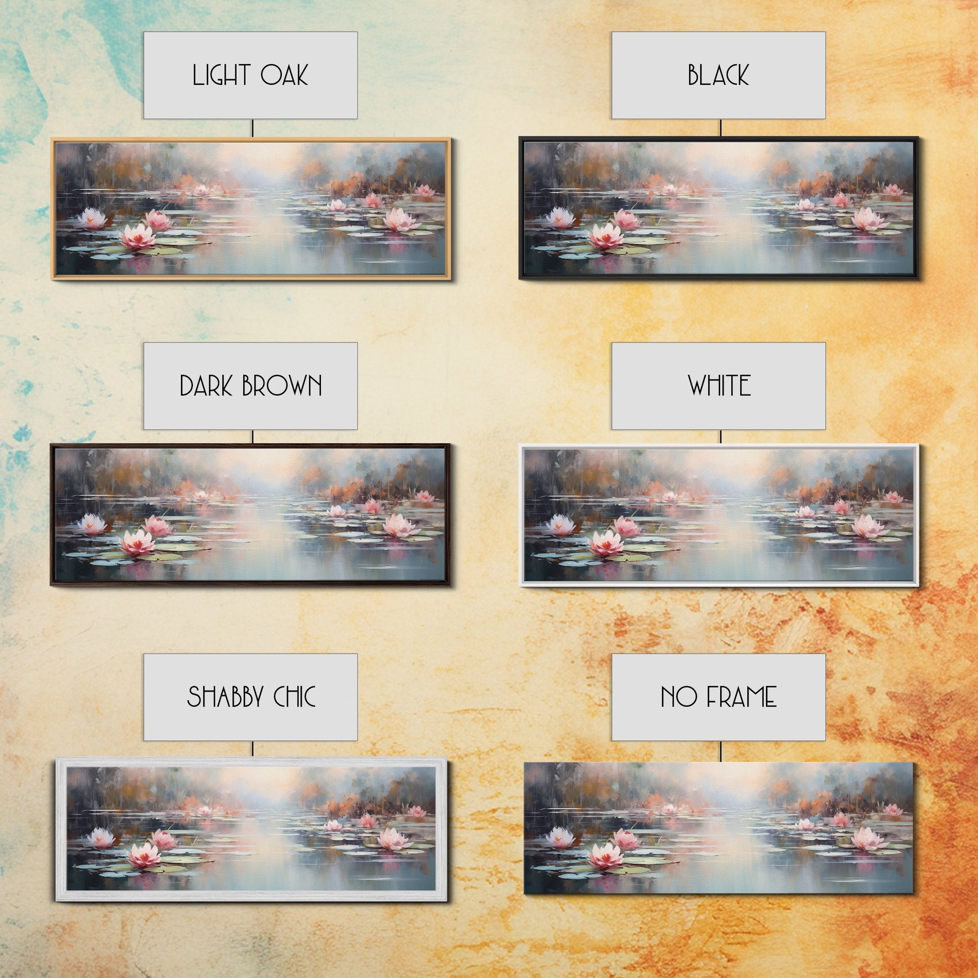 *Optional frames add a total of 1.5 inches to each dimension, for example a 10x20 canvas with a frame will be 11.5 by 21.5 inches total. All framed canvas are 1.5" total depth.