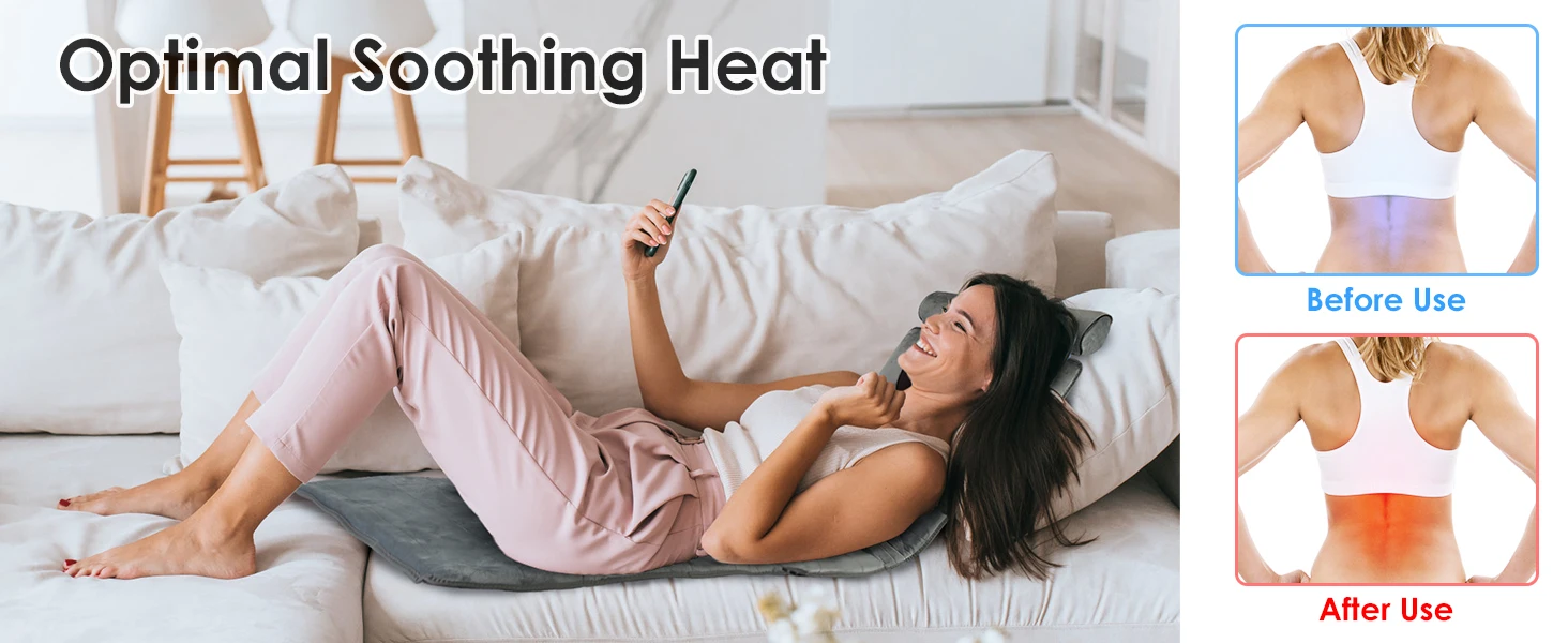 Red LED light therapy on neck and soothing heat therapy on waist give you a toasty coziness and help improve body circulation and comfort tired muscles.