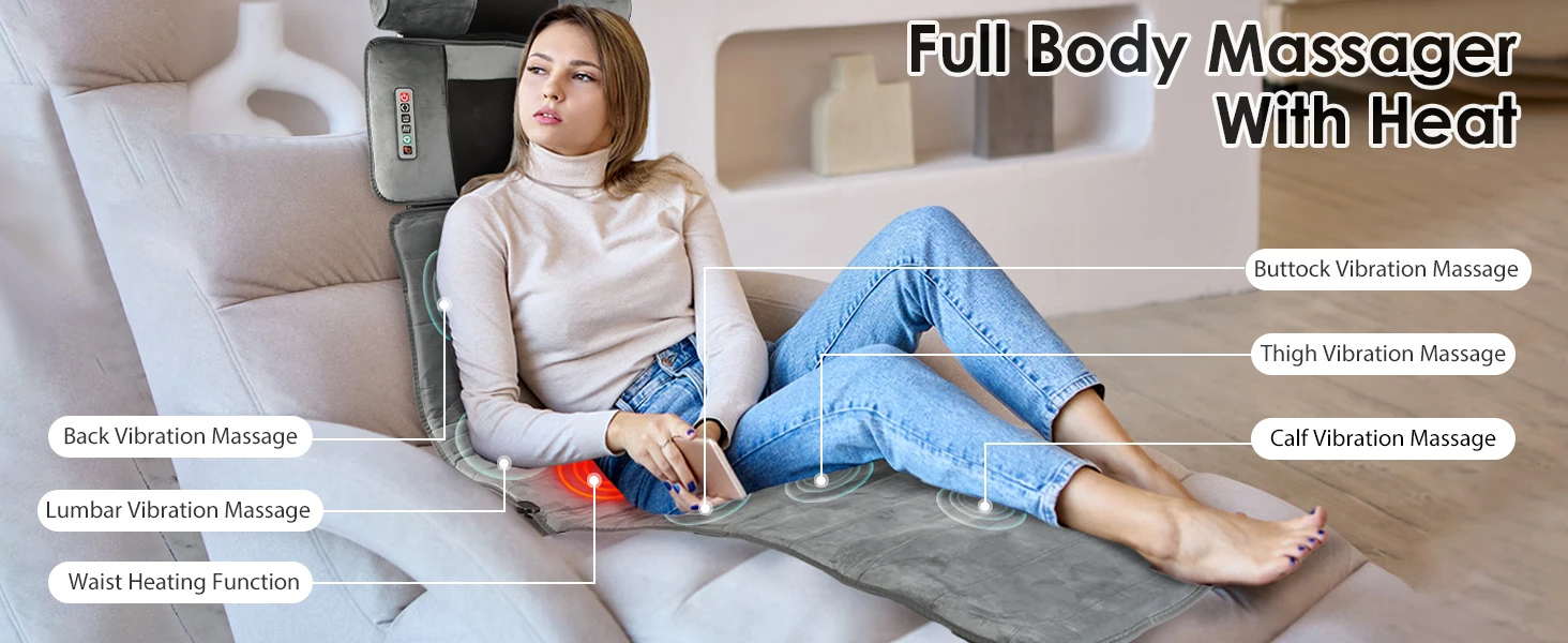 Four vibration massage zones can be activated together or individually; you can customize massage on shoulder, back, lumbar, and legs one by one or simultaneously.