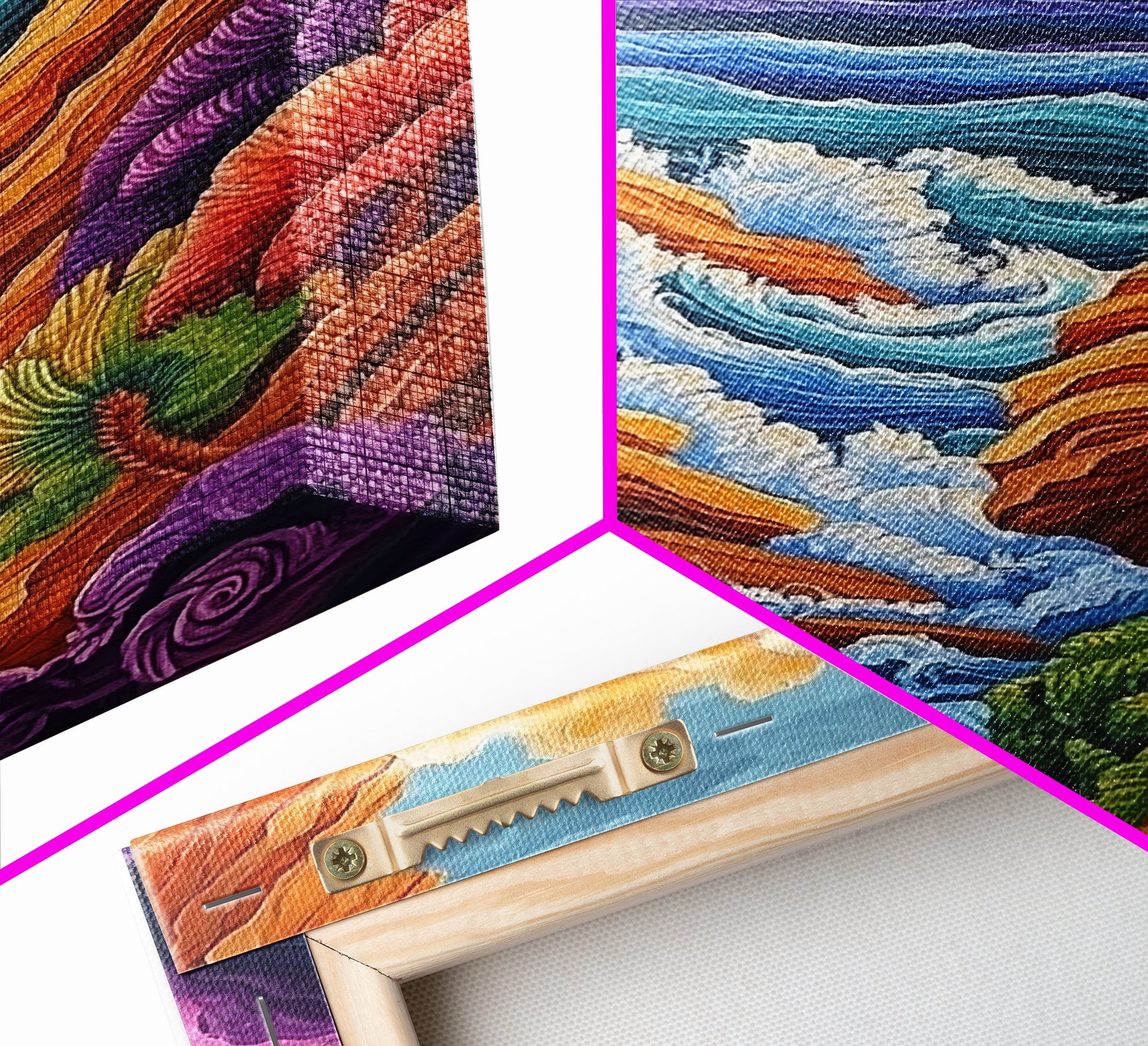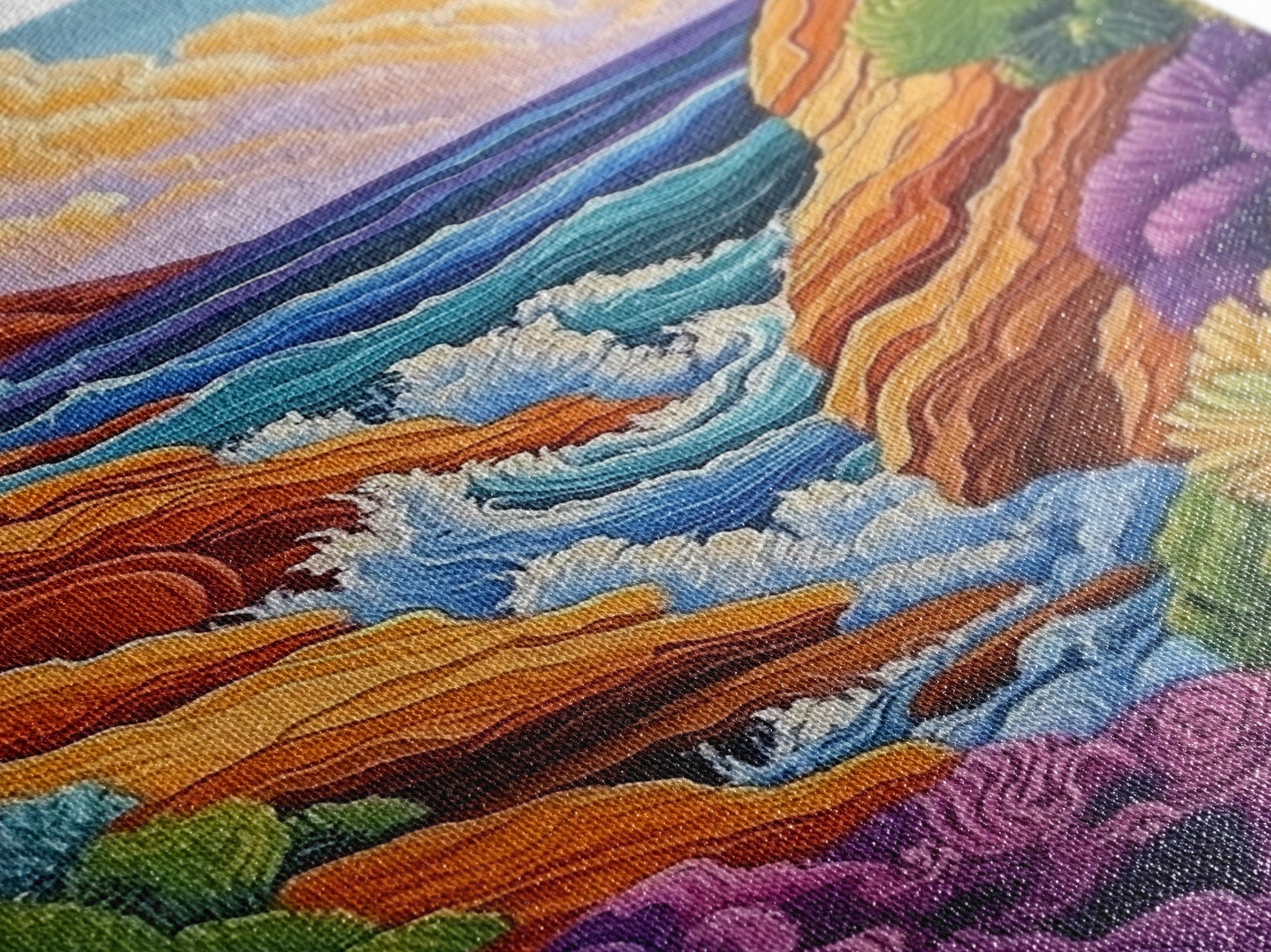 Wild Coast, Ocean Energy, Bold Waves, Colorful Rocks, Canvas Print, Eclectic Wall Art, Coastal Retreat Decor, Psychedelic Ocean Art