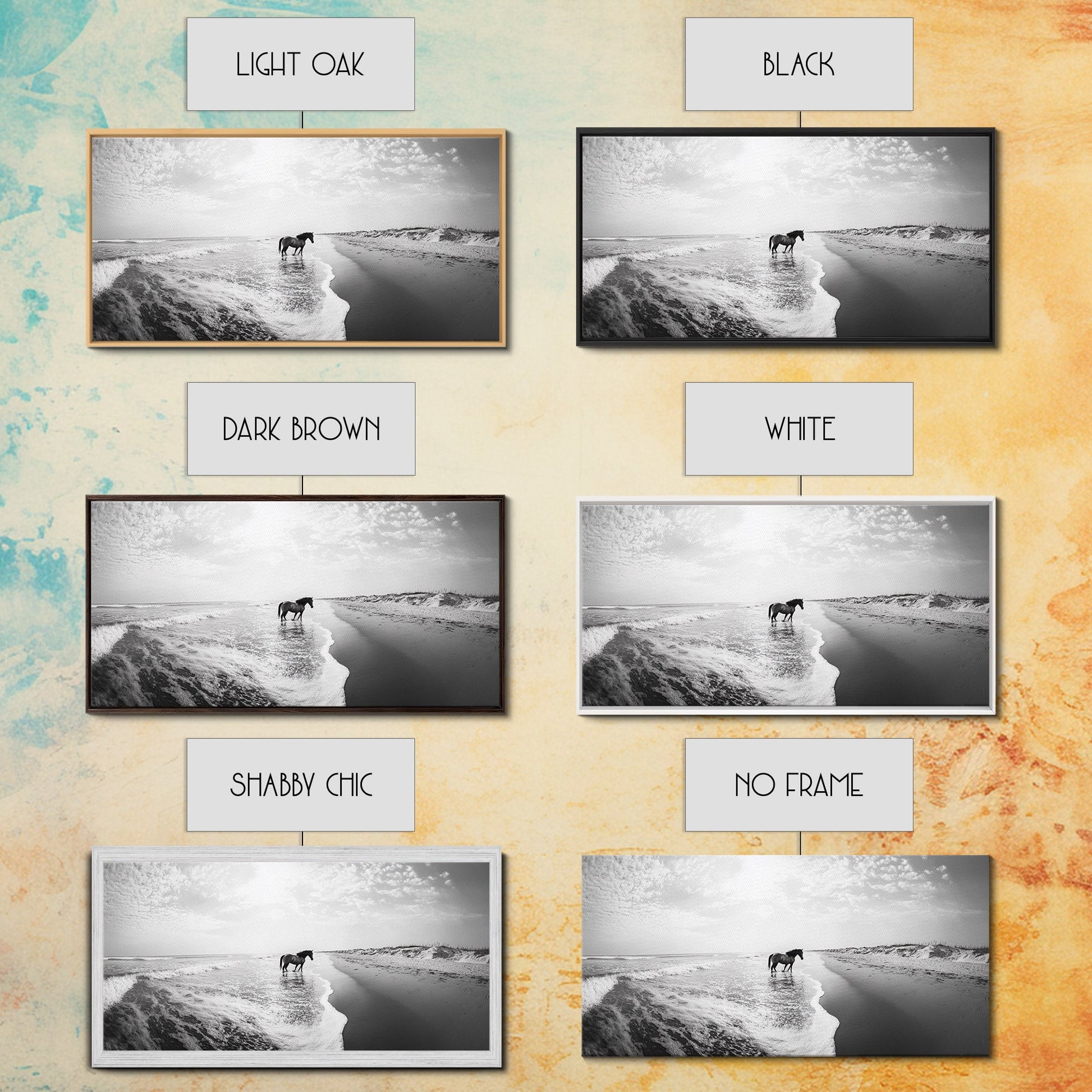 Wild Horse Beach, Coastal Nature Art, Minimalist Animal Photography, Serene Landscape, Neutral Bedroom Decor, Framed Canvas Print