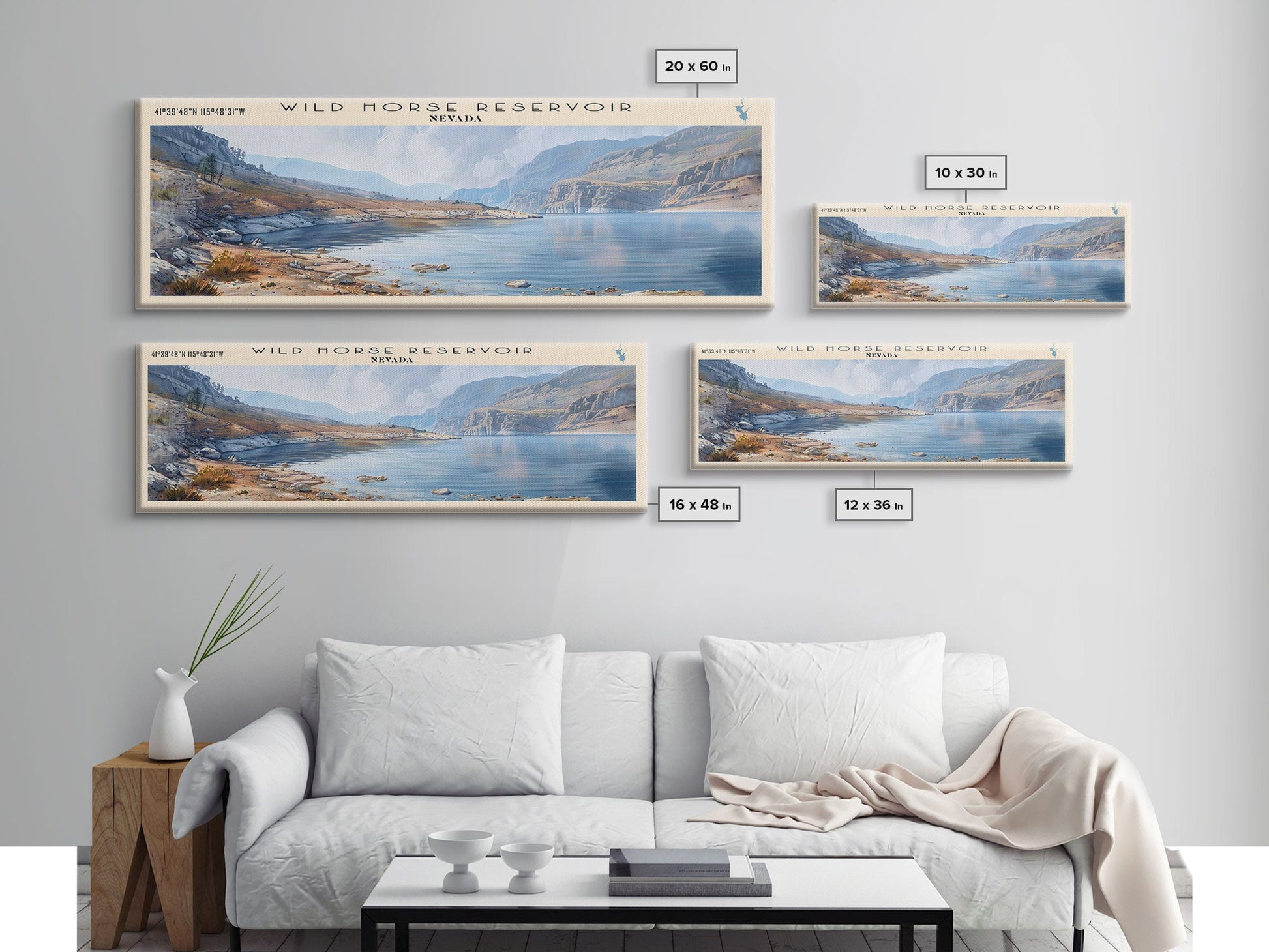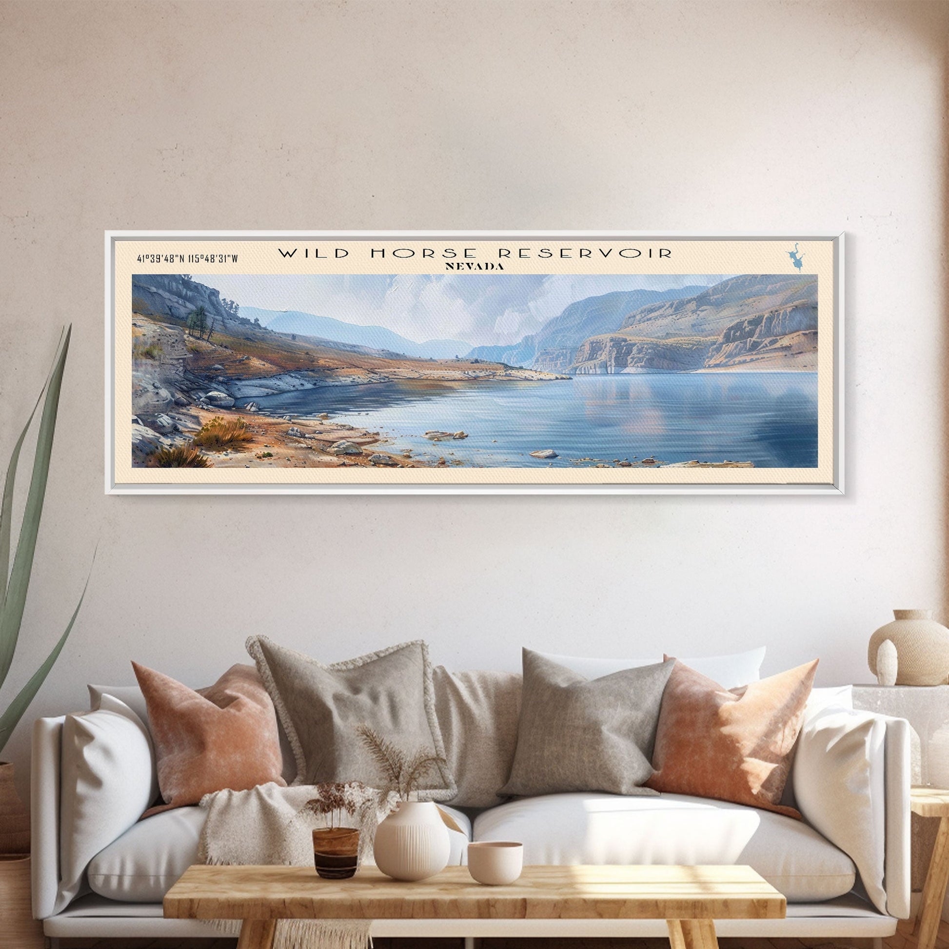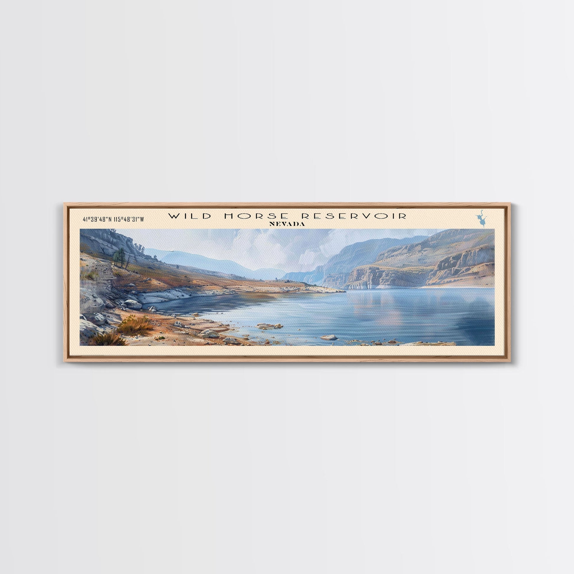 Wild Horse Reservoir Nevada Panoramic Wall Art, Framed Canvas Print, Lake House Decor, Travel Poster, Scenic Lake Scene, Living Room Art