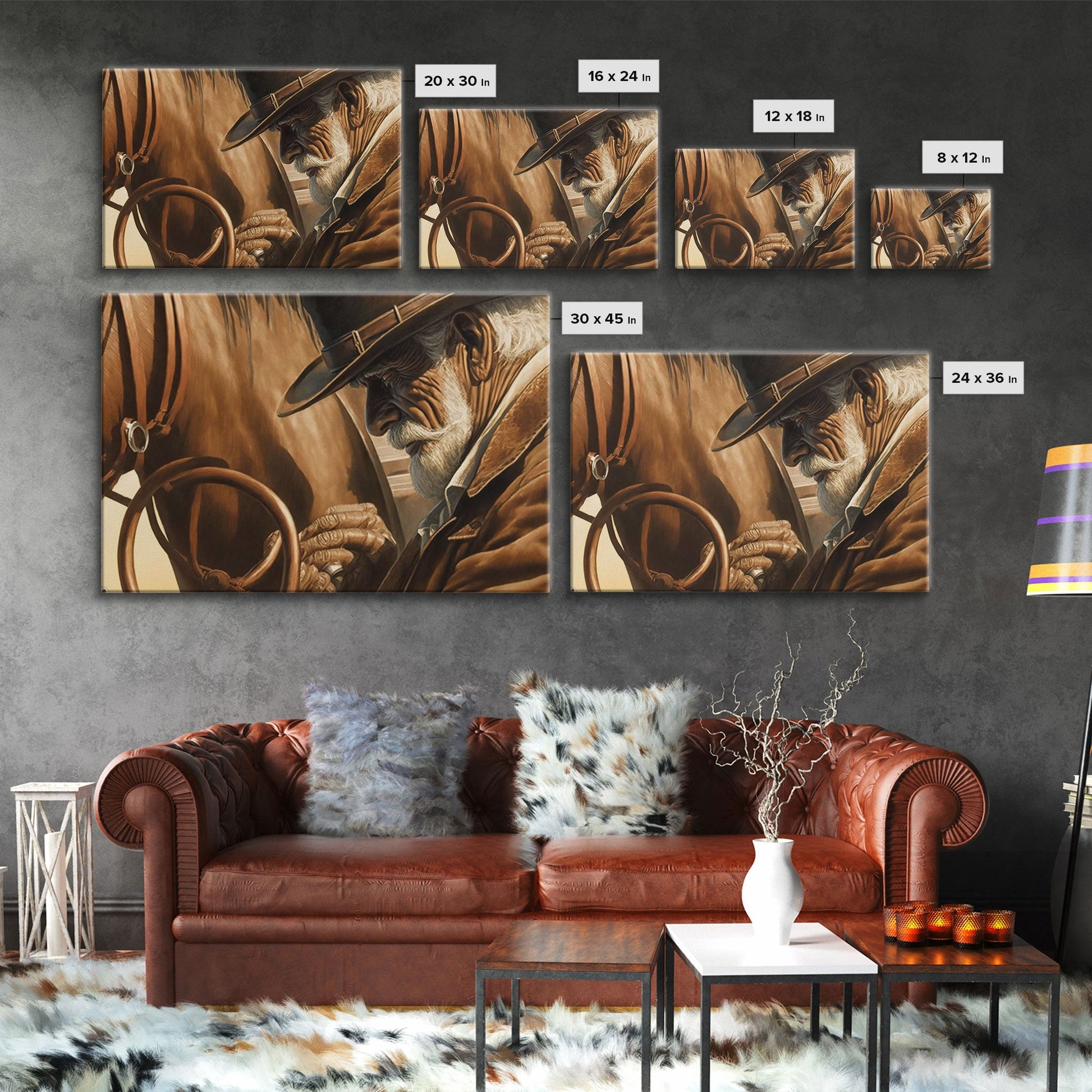 Wild West Cowboy Art, Framed Canvas Print, Cowboy Art Print, Western Art Print, Western Cowboy Gift, Retro Cowboy Decor, Western Cowboy