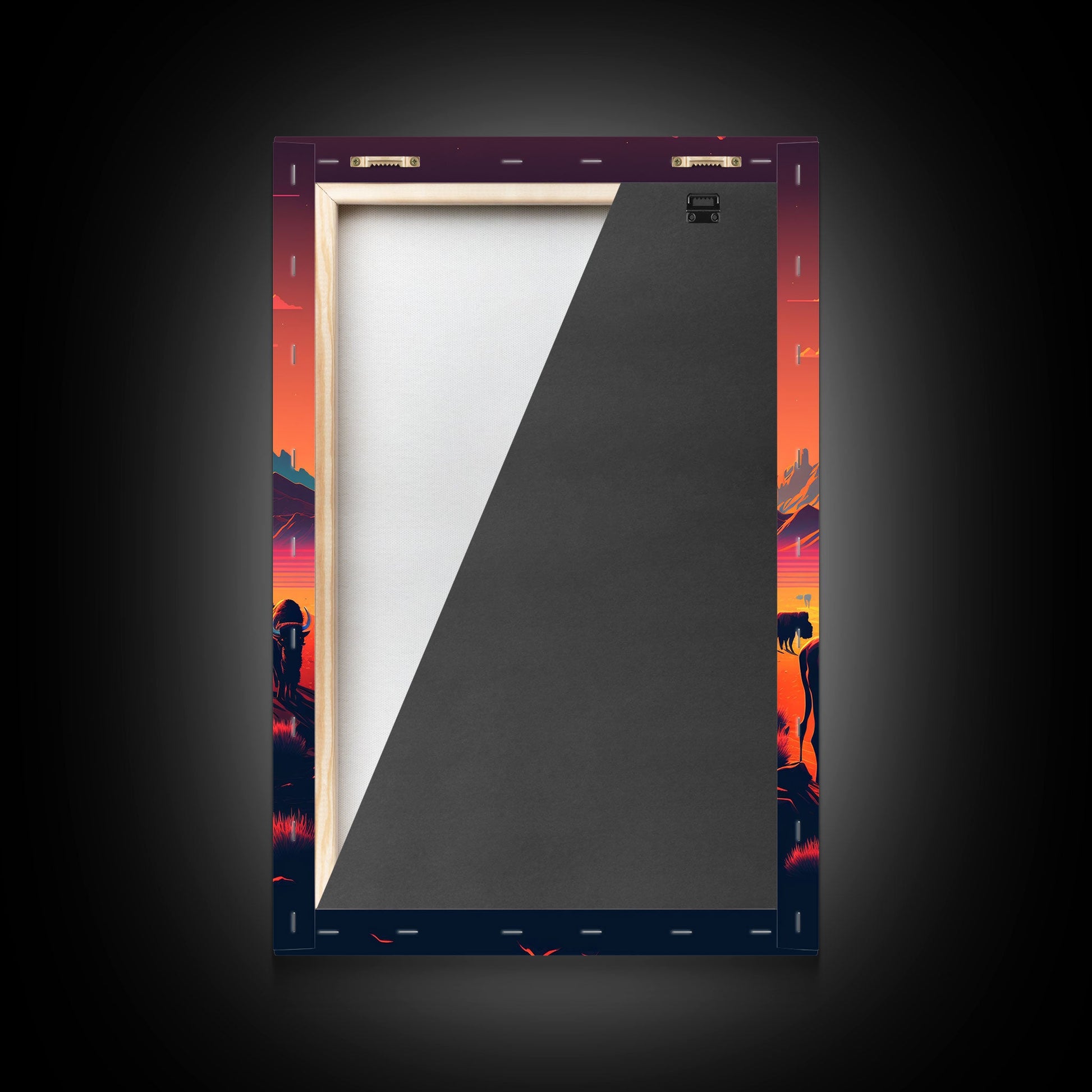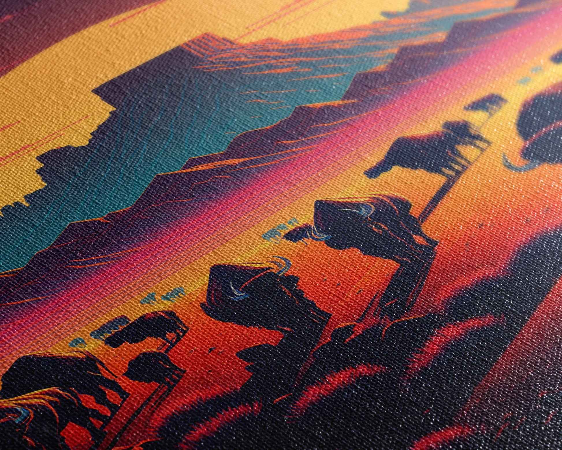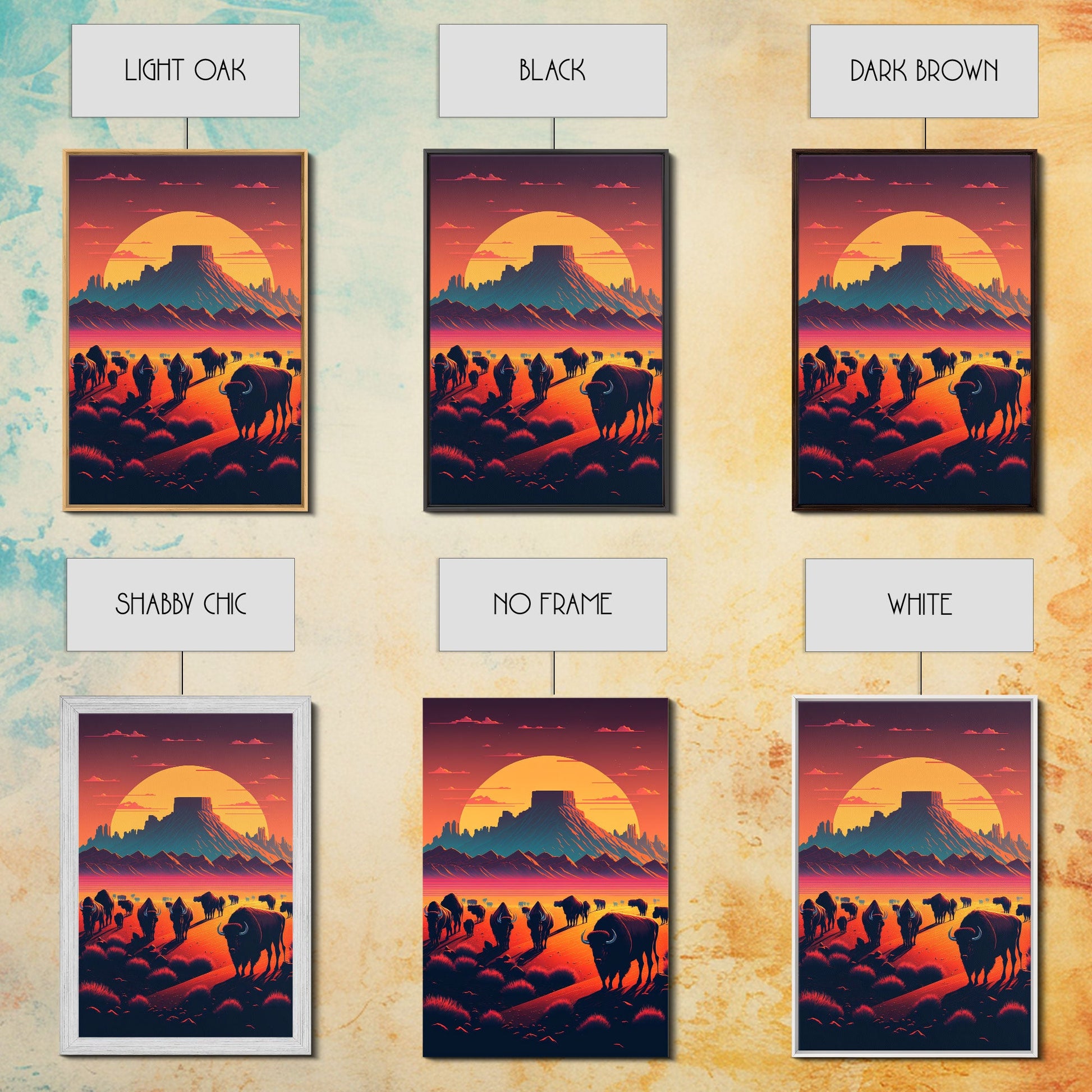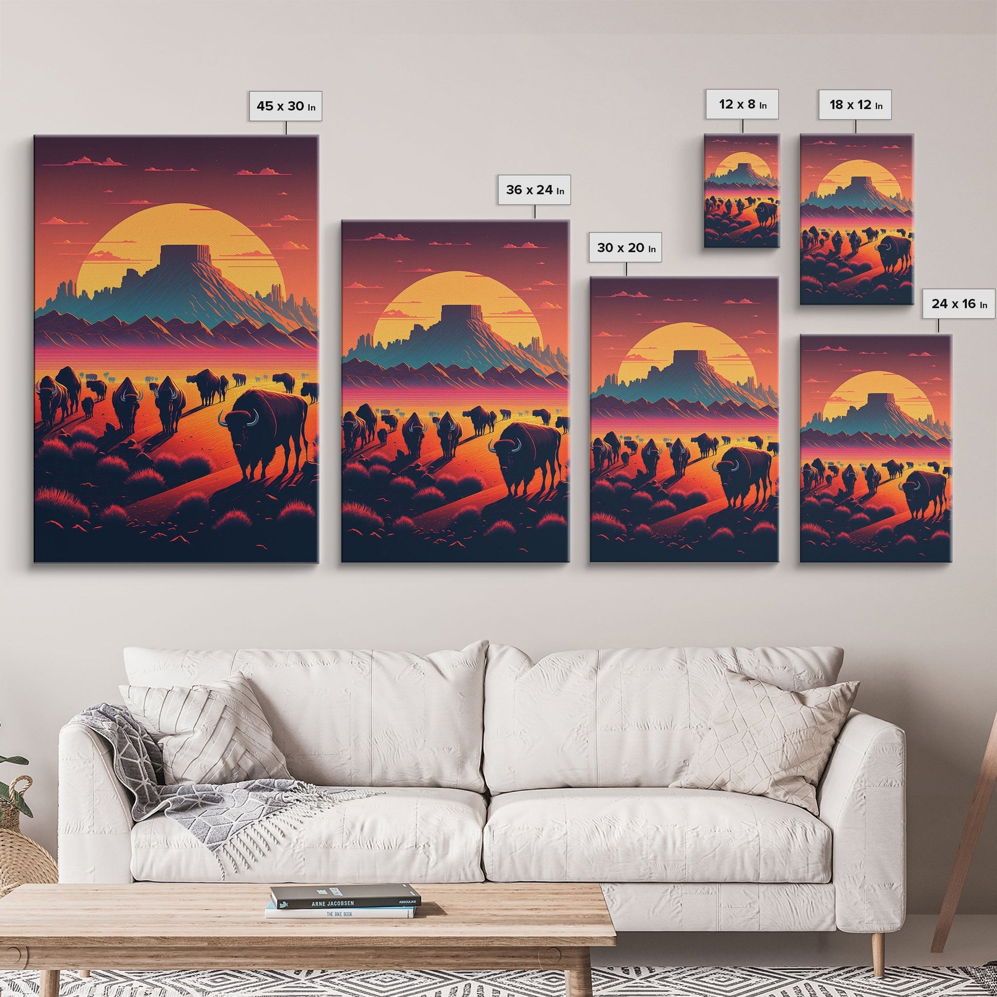 Wild West Decor, American Bison in an Arizona desert landscape, framed canvas print, primitive retro style western decor