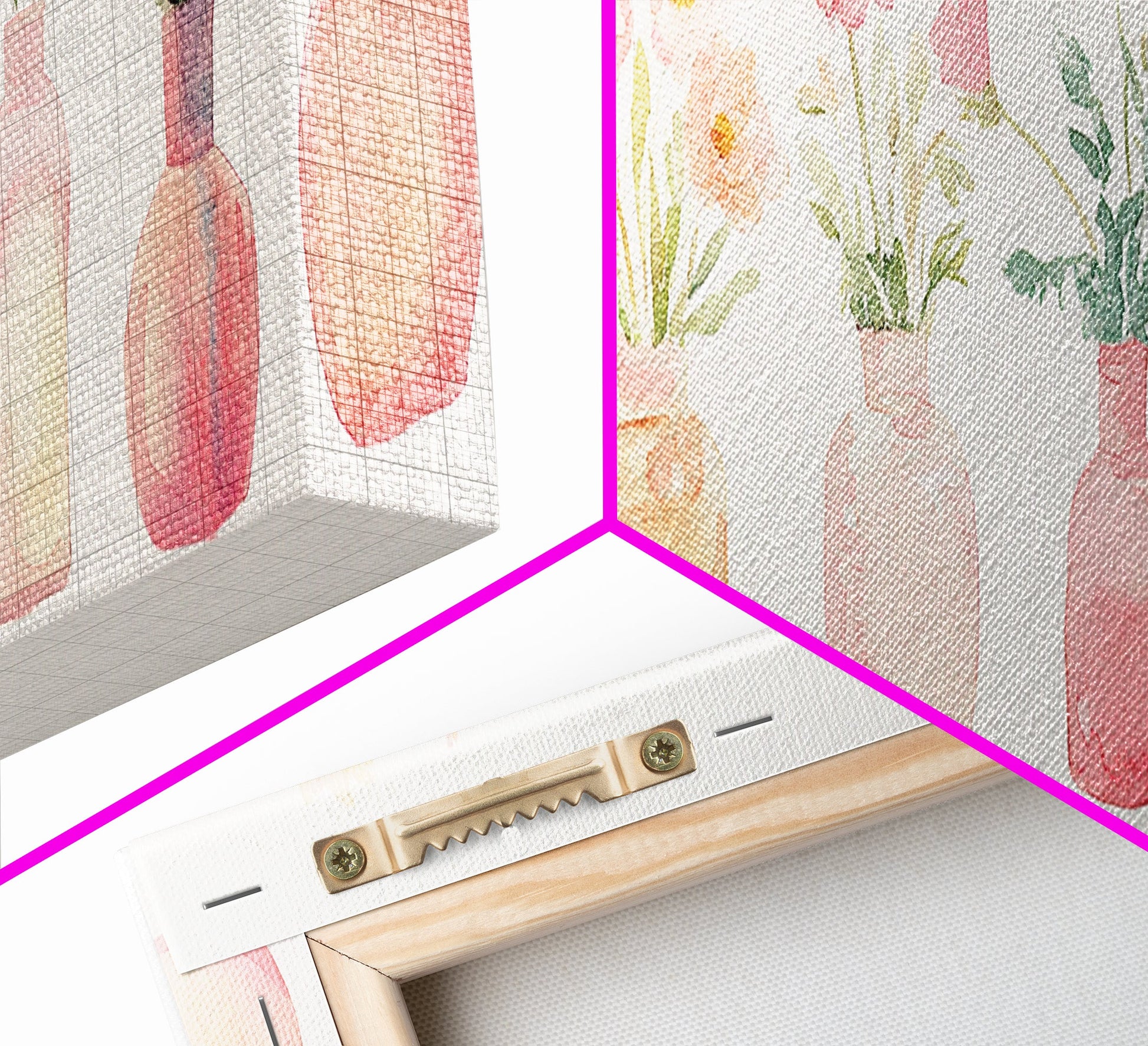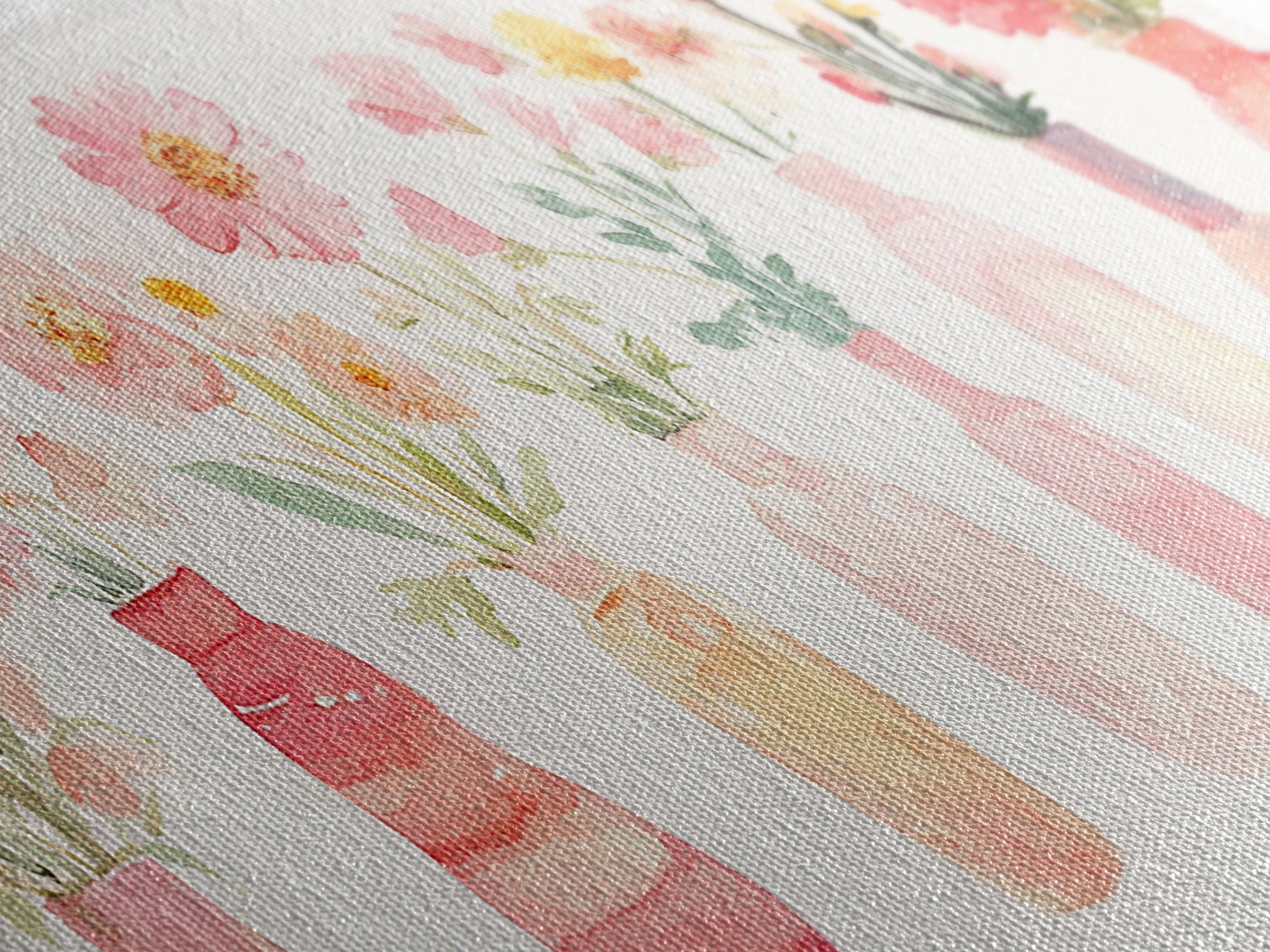 Wildflower Botanical Prints Framed Canvas Print Light Pink Wall Art Living Room Decor Horizontal Rustic Floral Painting