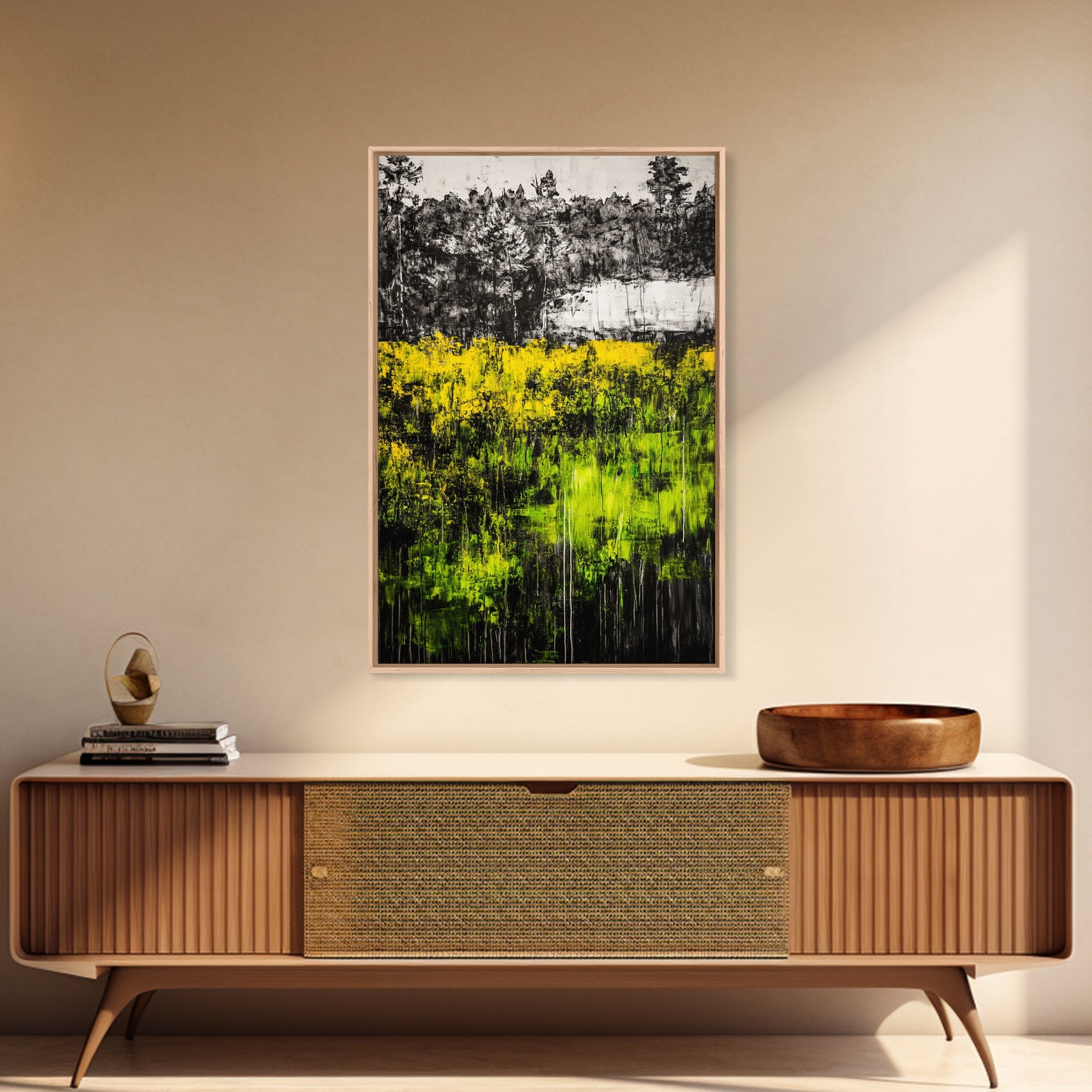 Wildflowers, Abstract Meadow, Colorful Landscape, Modern Wall Art, Framed Canvas Print, Boho Decor, Vibrant Nature, Yellow Green Art