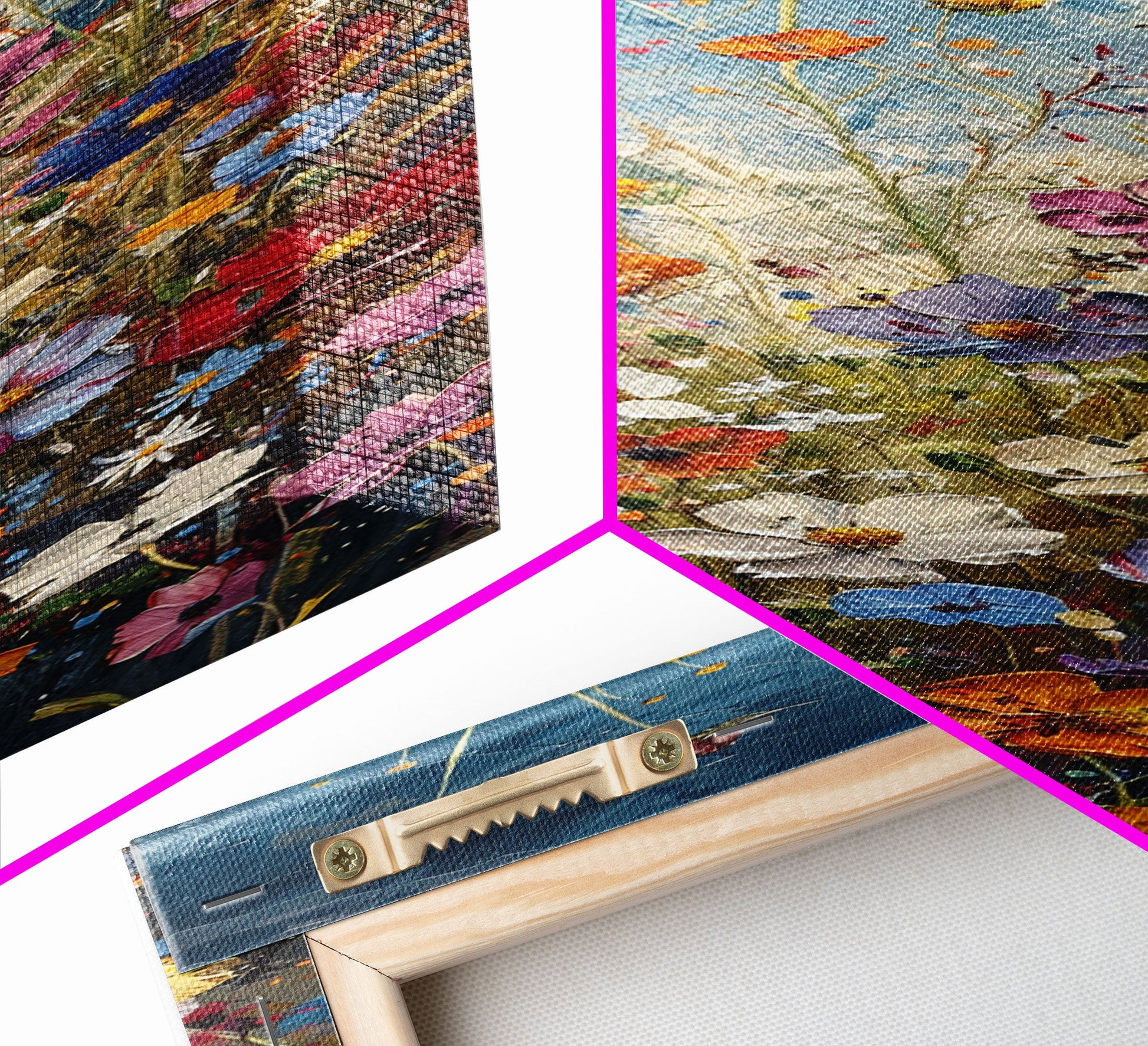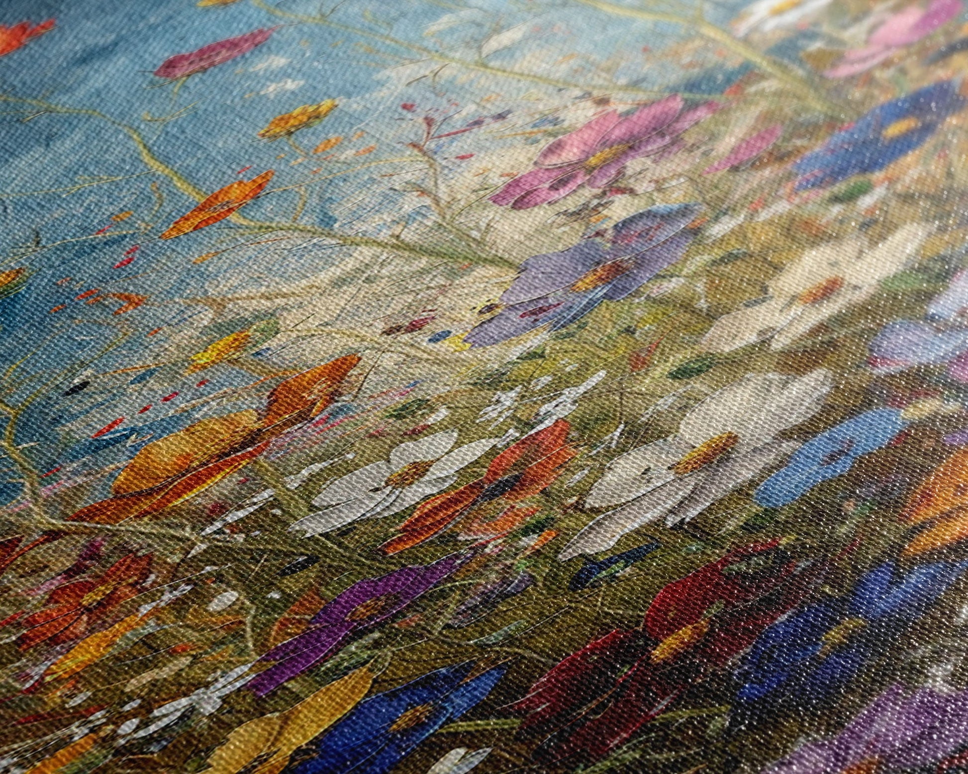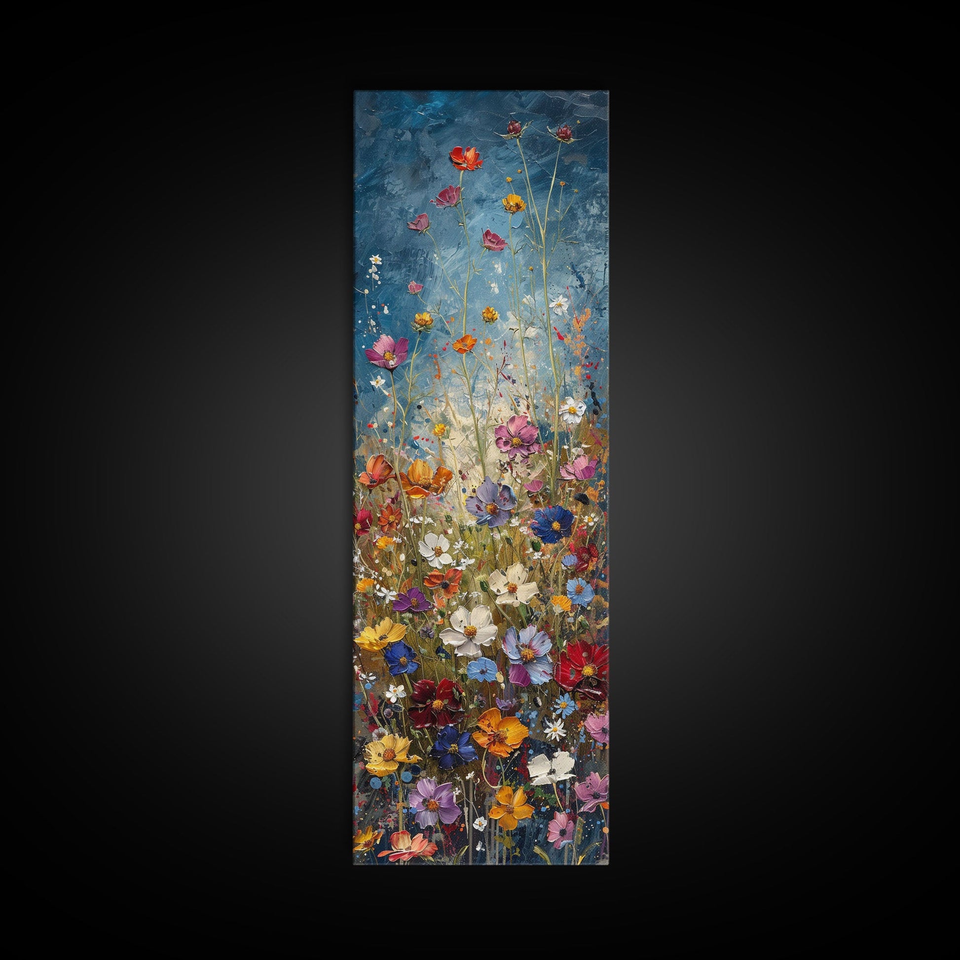 Wildflowers Blooming Against a Dramatic Sky in a Lush Meadow on a Framed Canvas Print Tall Art Piece