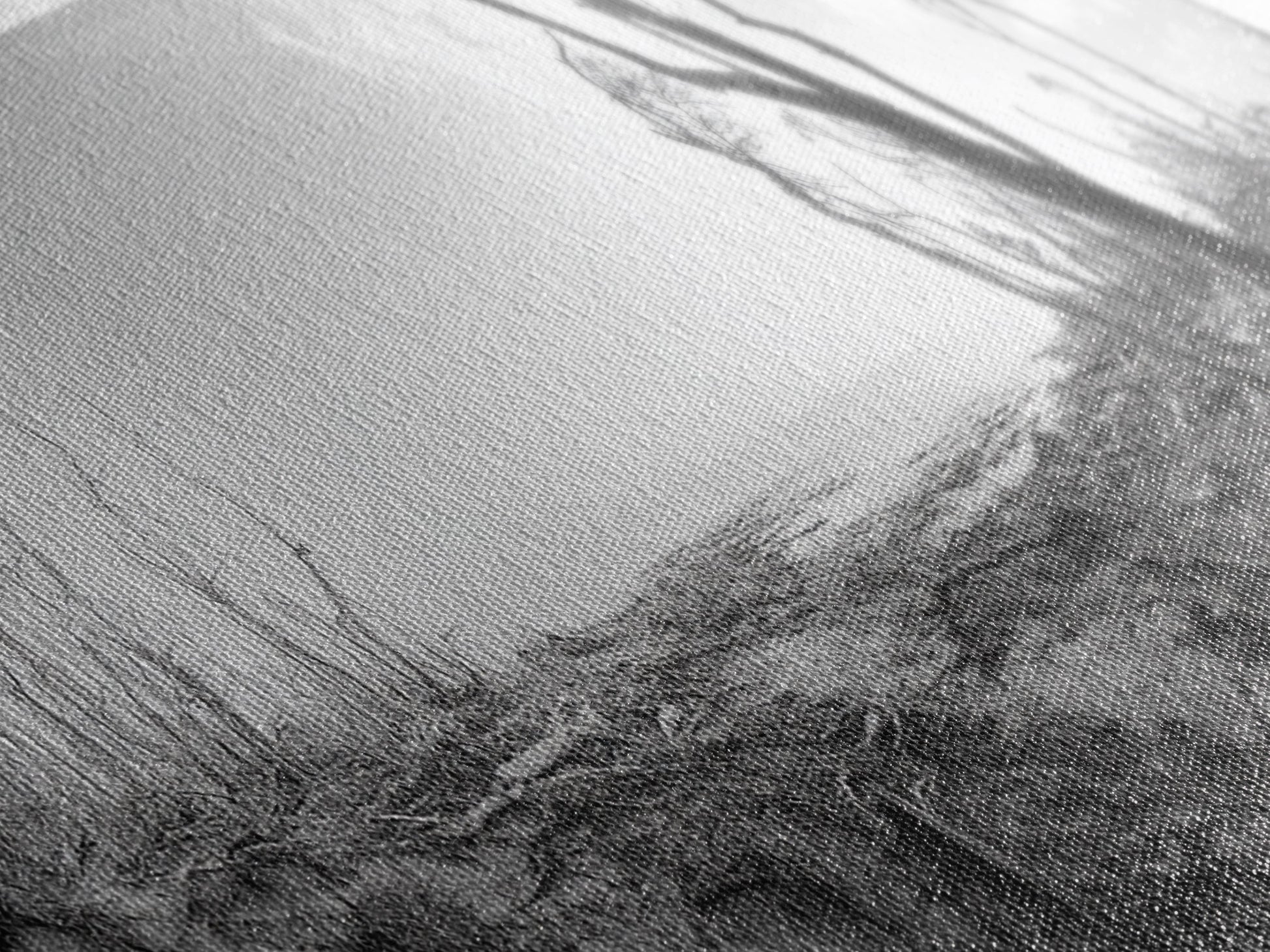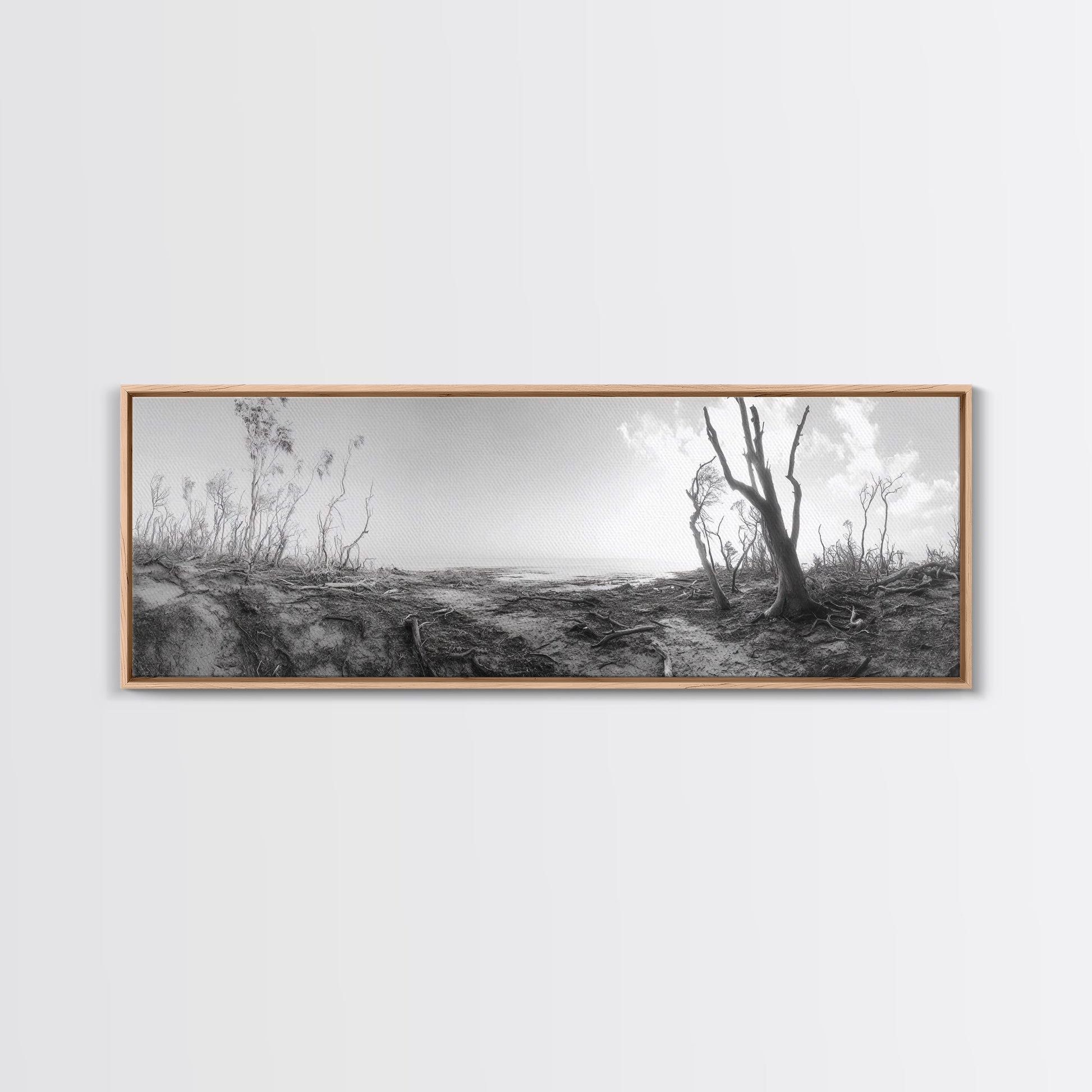 Windswept Coastal Trees, Driftwood Beach Landscape, Black White Canvas Print, Autumn Wall Art, Nature-Inspired Living Room Decor