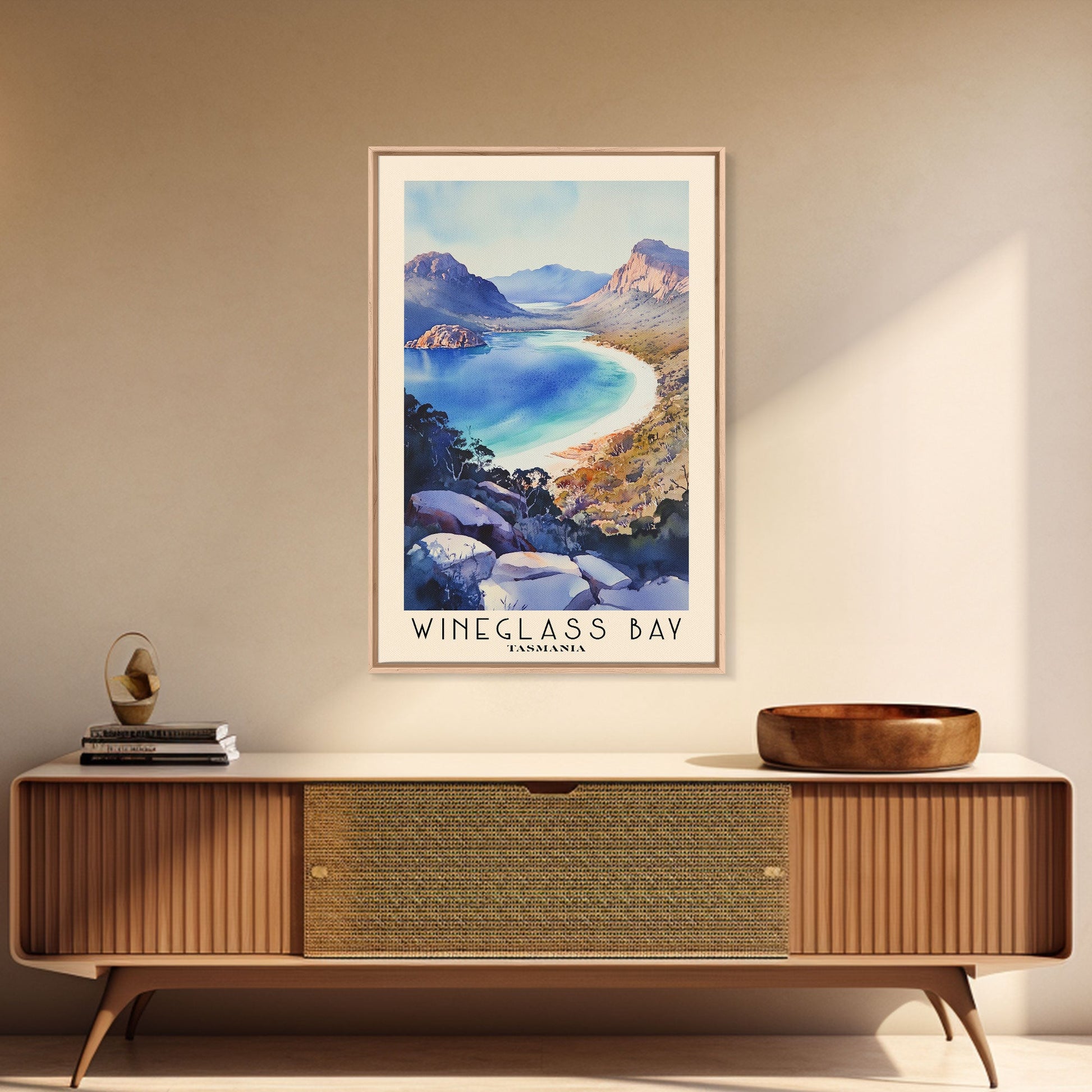 Wineglass Bay, Tasmania Watercolor Beach Print, Vacation Gift, Tasmania Wall Art, Framed Canvas Print, Framed Beach Painting