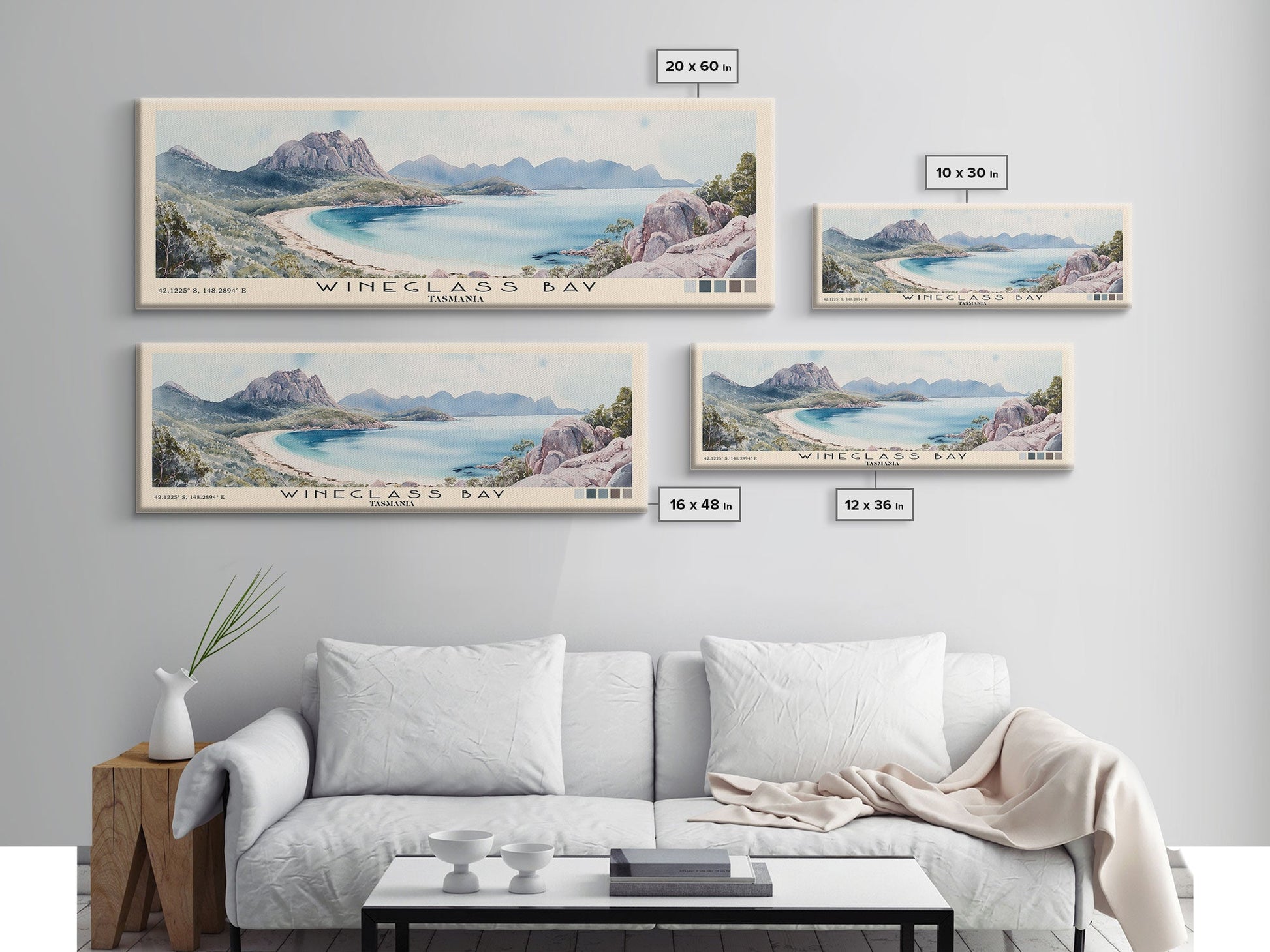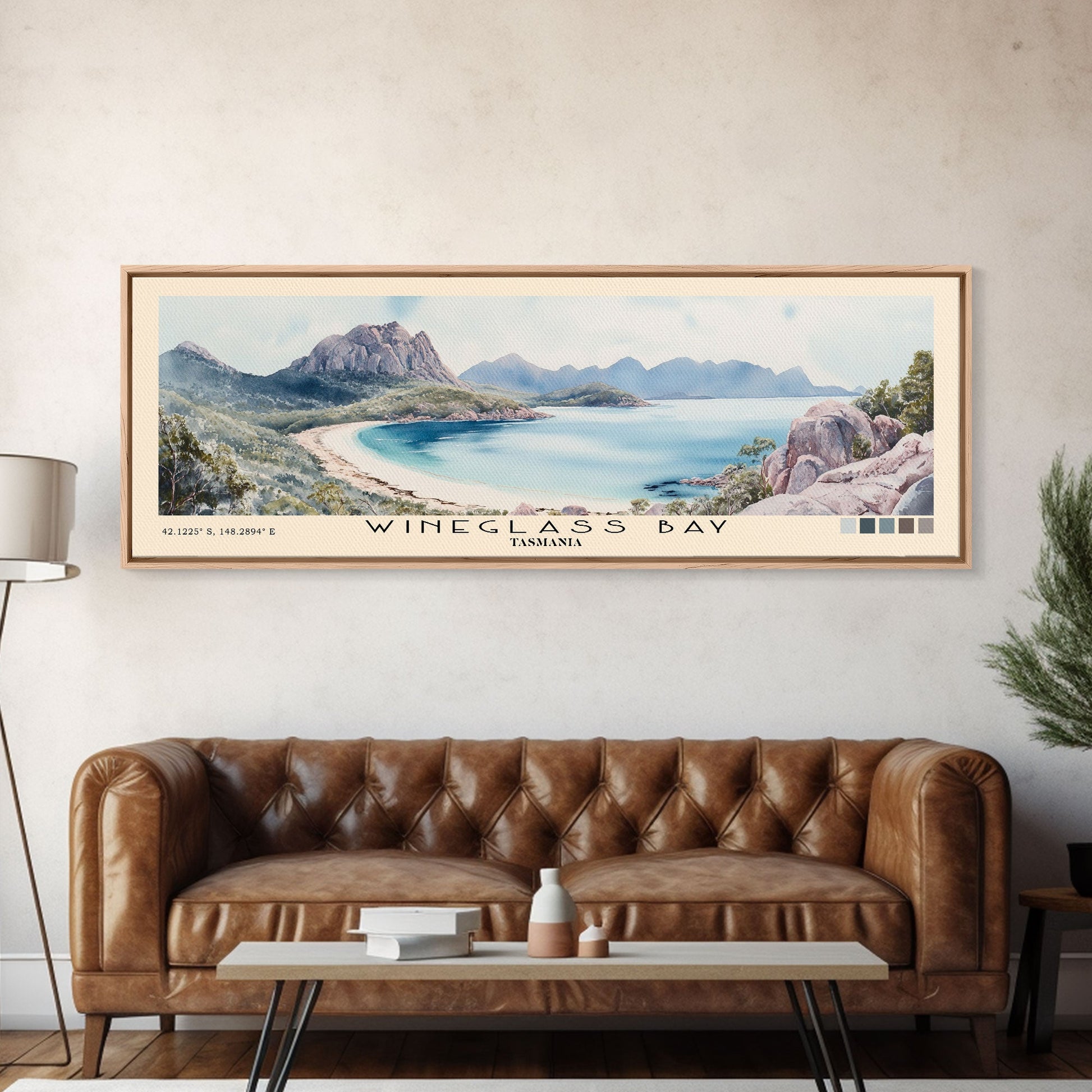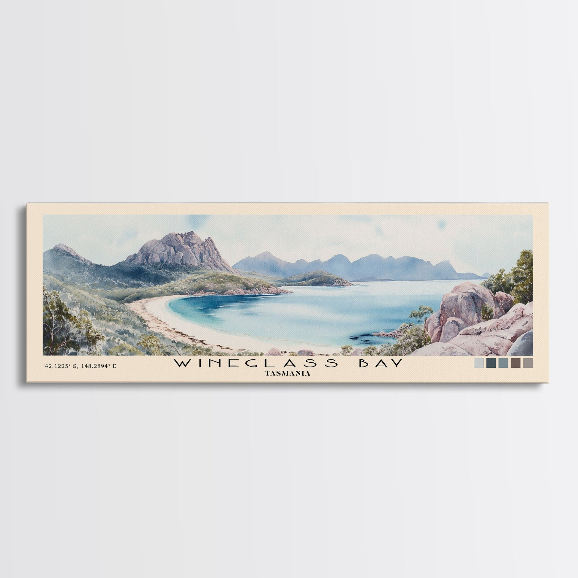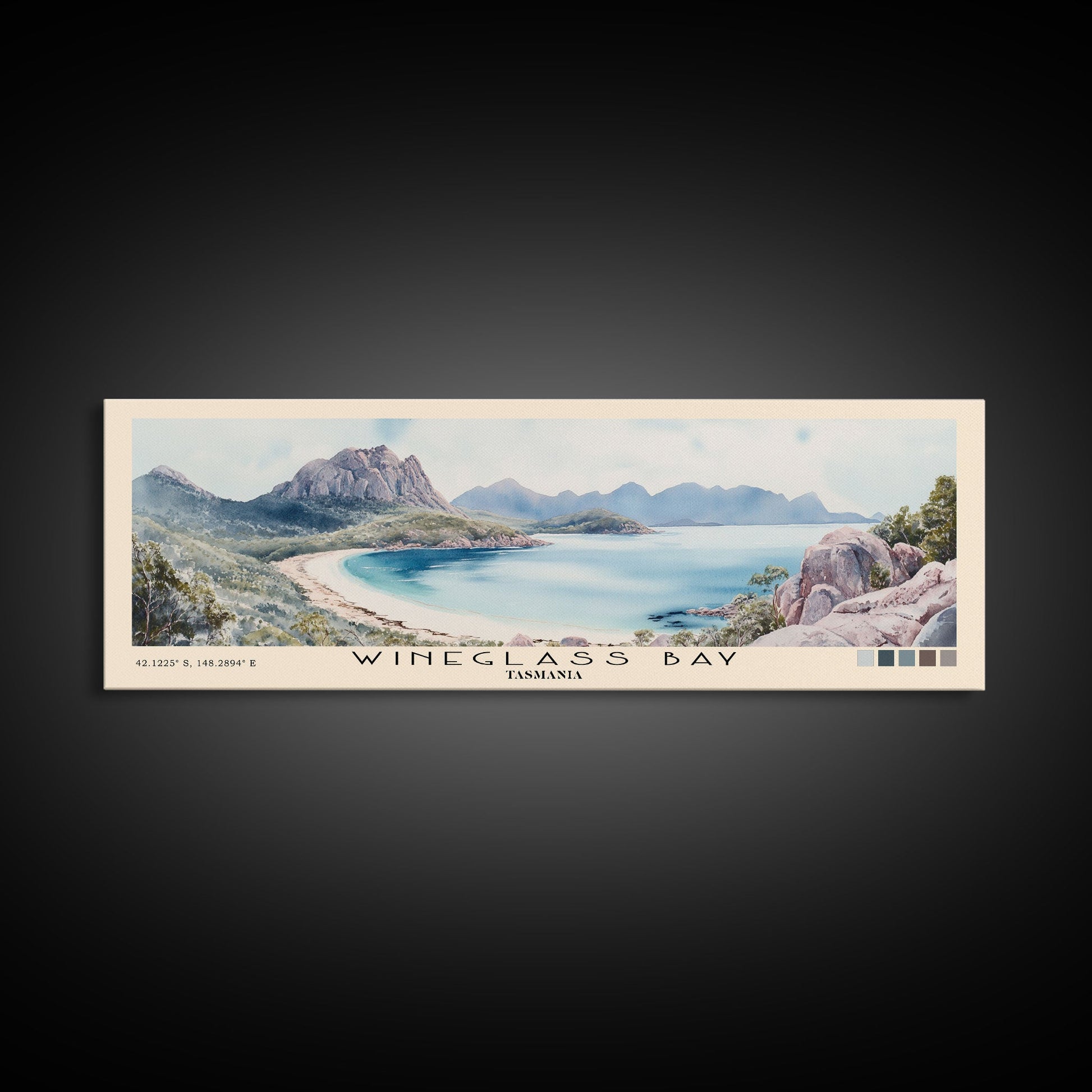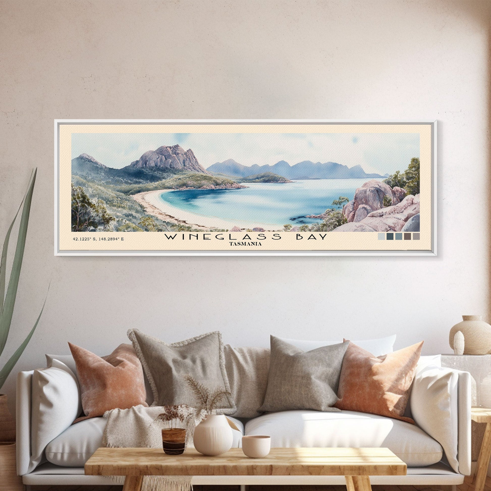 Wineglass Bay, Tasmania Watercolor Beach Print, Vacation Gift, Tasmania Wall Art, Framed Canvas Print, Framed Beach Painting