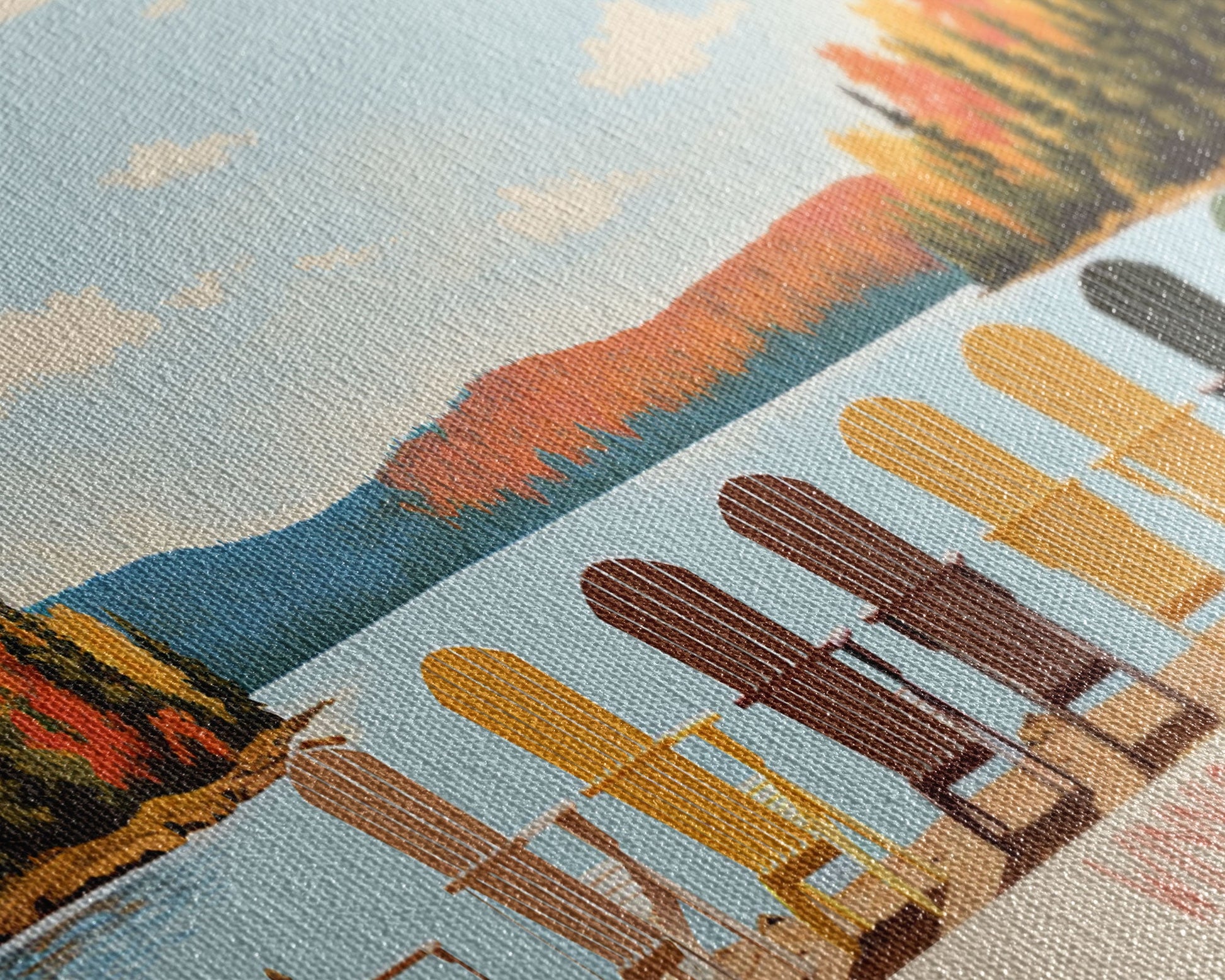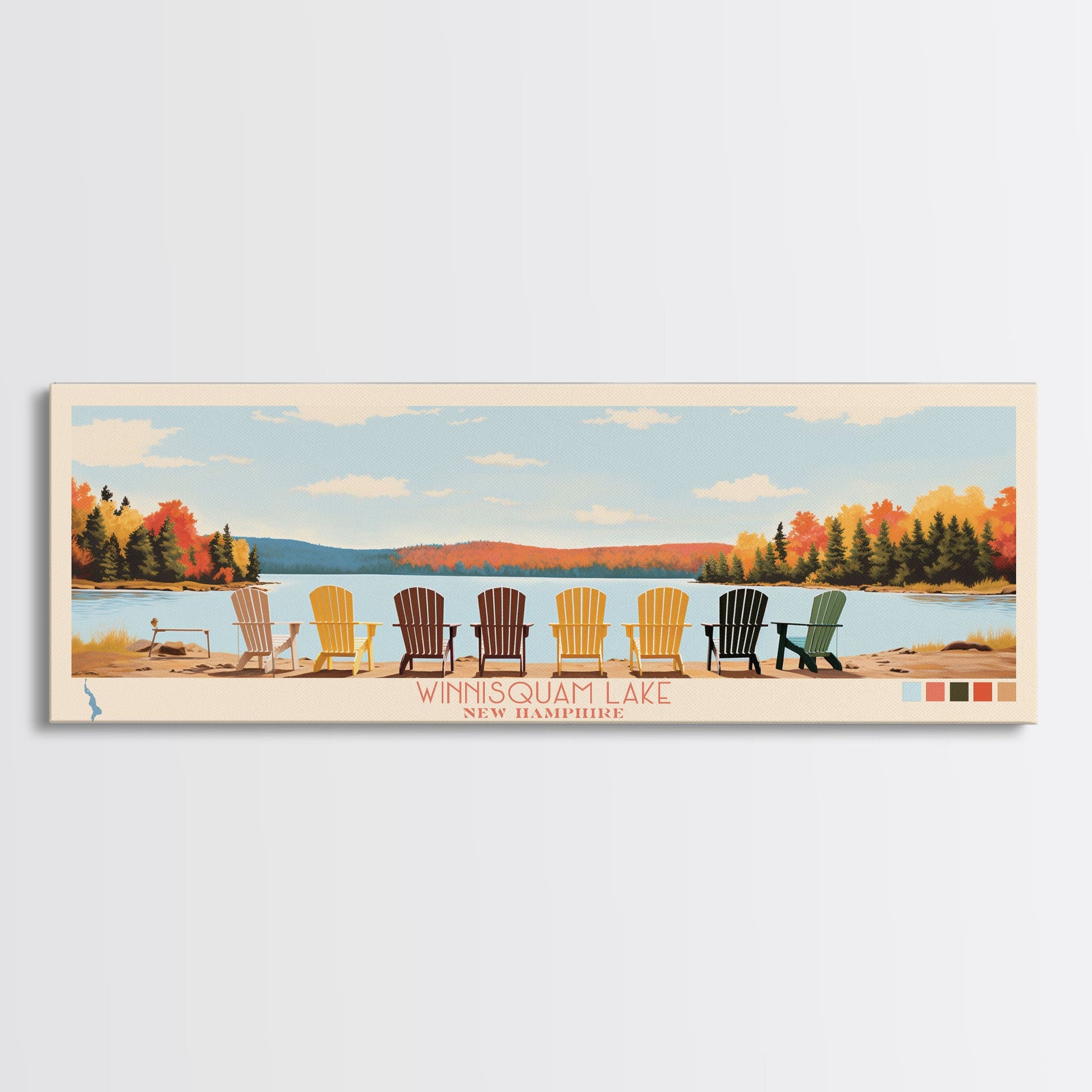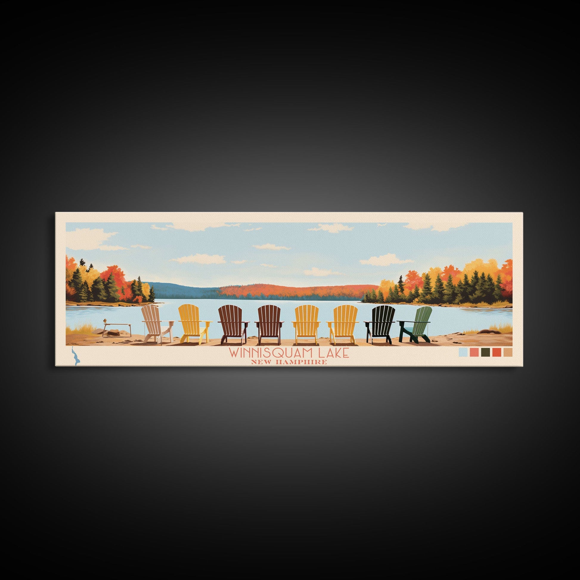 Winnisquam Lake, New Hampshire Panoramic Framed Canvas Print, Lake House Decor, Midcentury Modern Art, Pop Art, Travel Poster