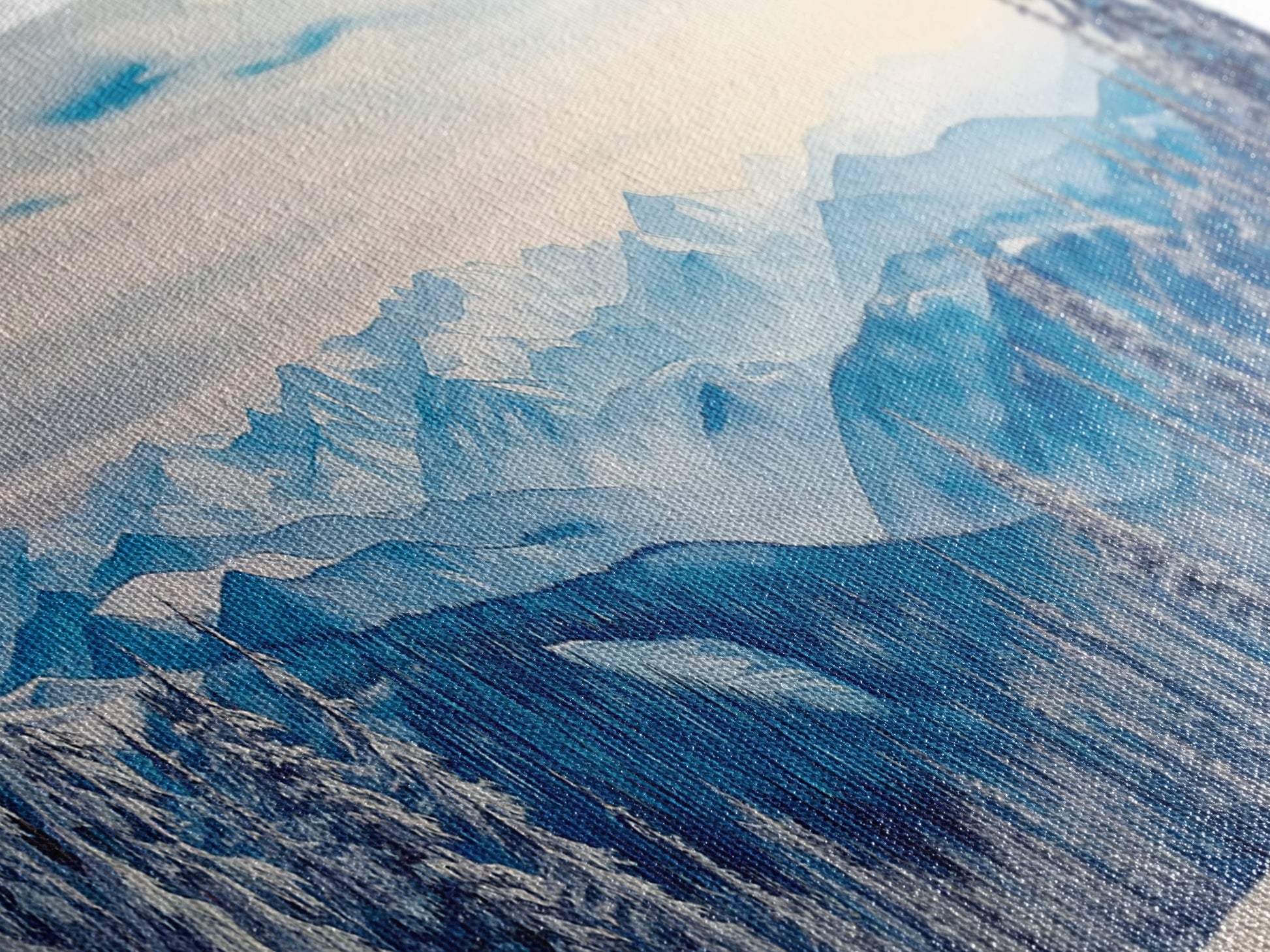 Winter Forest Landscape Painting Print, Horizontal Wall Art, Pine Tree Forest Covered in Snow, Mountain Painting, Mountain Landscape Art