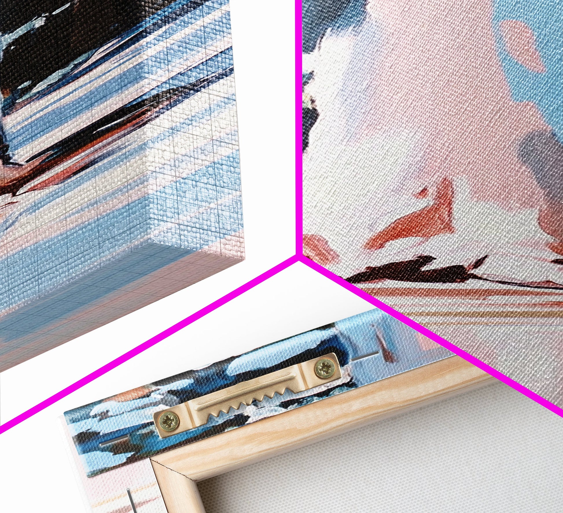 Hello and thank you for taking the time to view our modern high quality giclée artwork! We offer both posters and stretched canvas prints. Our posters are printed on Ultra Matte 60 lb / 230 GSM high quality photo paper, with a thickness of 10 mil. Our canvases are printed on museum grade 350 GSM canvas material with ECO friendly archival grade ink, then hand stretched and stapled over premium, FSC certified and shrink resistant frames. Designed and built to last a lifetime.
